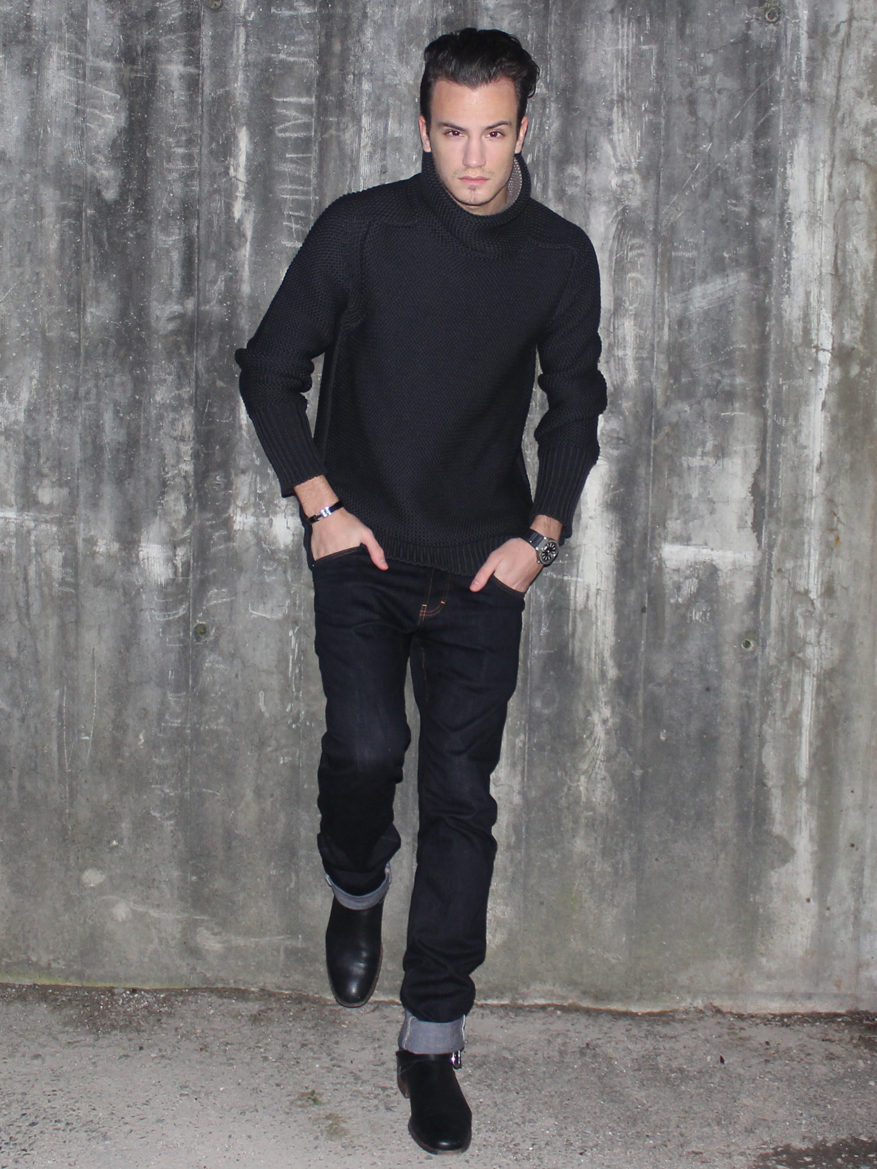 When the cold season really started it inspired me to create this look around a very warm piece by Sartoria Vico: a high quality merino wool oversized turtleneck. Nothing better thant this fine piece of knitwear. It is extremely confortable and definitely my best weapon to fight the cold .