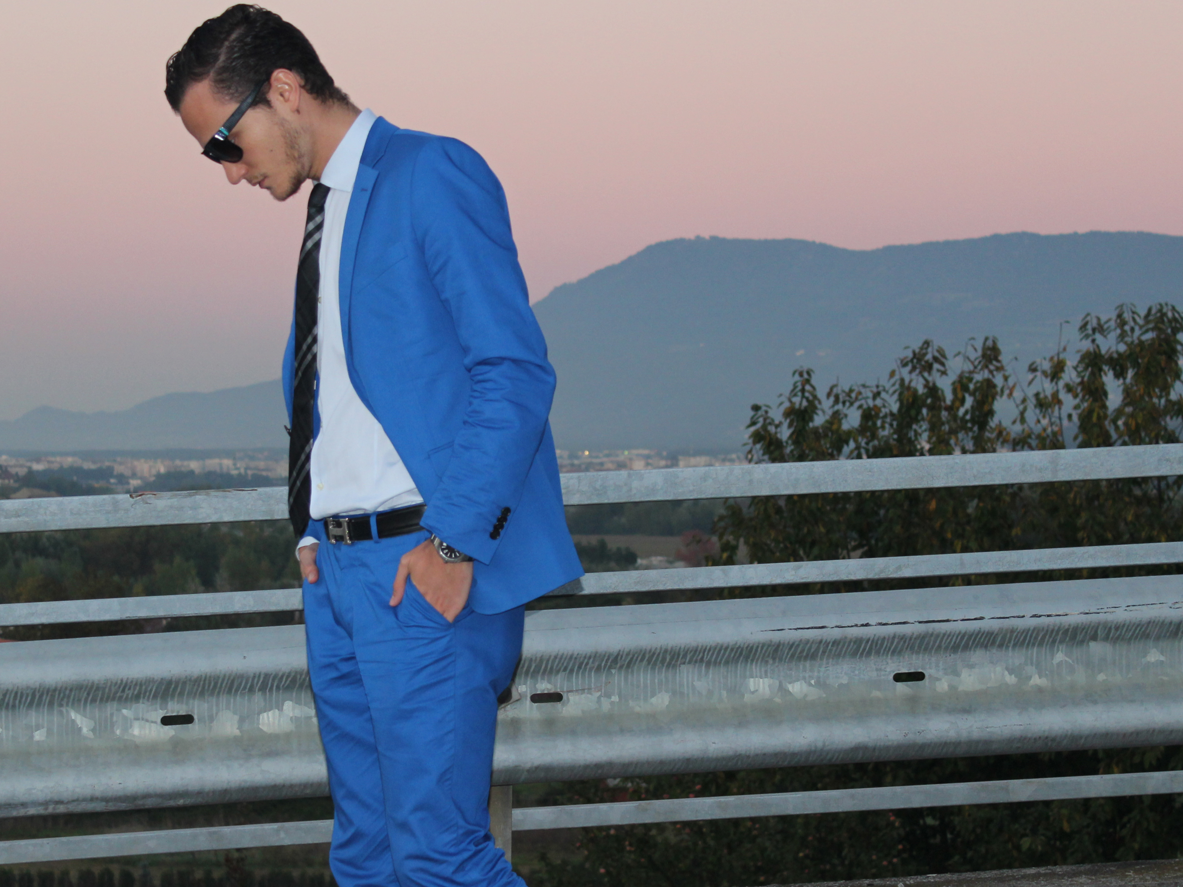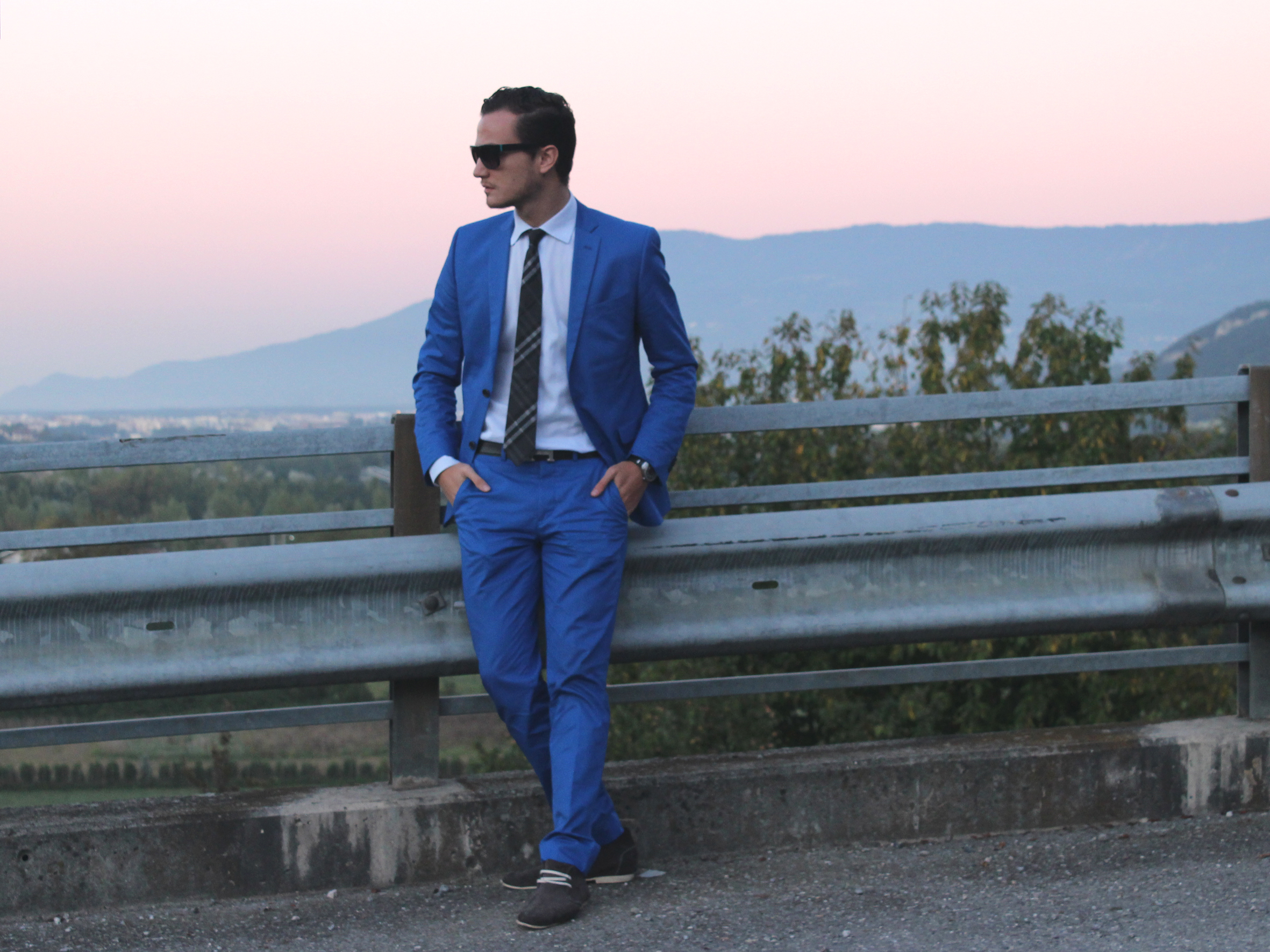 So that spring morning I woke up feeling really positive and ready to go for what I knew was going to be a busy working day. So when opening my closet I leaned towards this bright electric blue suit. I felt like this color could only attract positive energy and get me through the long day. To make it look more “business like” I went for a white shirt and added this nice slim Burberry Tie. But to keep it “my style” and not look too formal, I added the grey Hugo Boss boots, echoing the tie and making a nice contrast with the blue suit. I fnished the look off by accesorizing with my classis Hermès belt, and the futuristic looking Marc by Marc Jacobs shades, whose little turquoise detail on the side was perfect to match with the suit. In the end I think the look was a mix of different elements: business, trendy, edgy, “cool” .