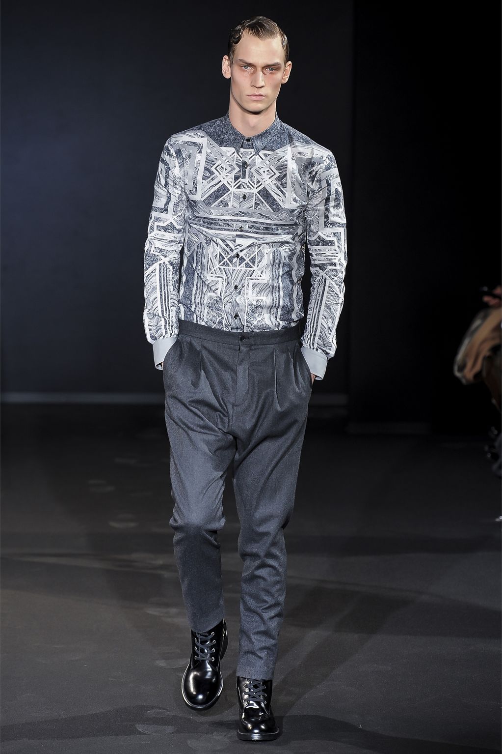 I think it’s very interesting to understand how two designers work together to create a very specific coherent and unified style. Indeed, after watching a few looks you can immediately tell that the brand has a very distinctive style and identify a few codes: cleand and sharp lines, precise tailoring which comes with a twist (double lapels on jackets for example) and intricate details, use of black as the main colour, a sense of poetry expressed through the clothes, and often a military or graphic inspiration.