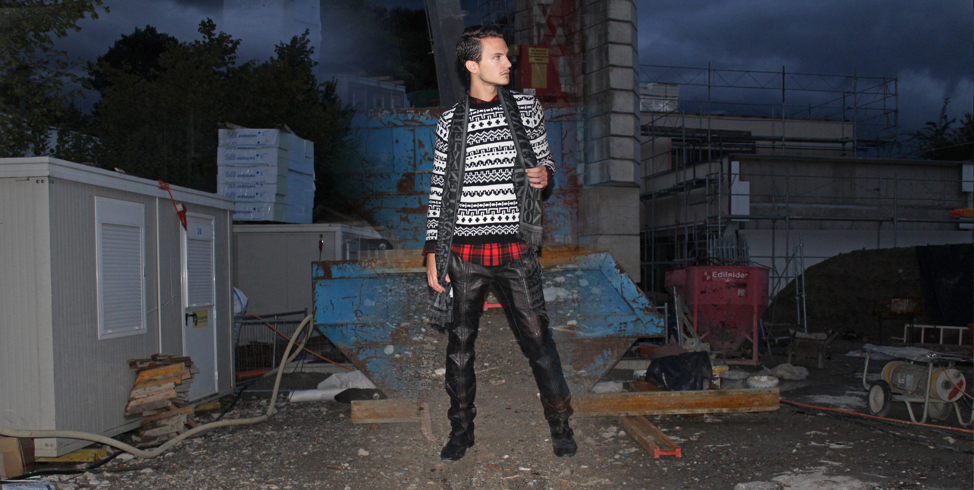 I wanted to shoot the look in a “rough” environment, and when I came across this deserted construction site on a sunday afternoon, I thought it was the perfect location.