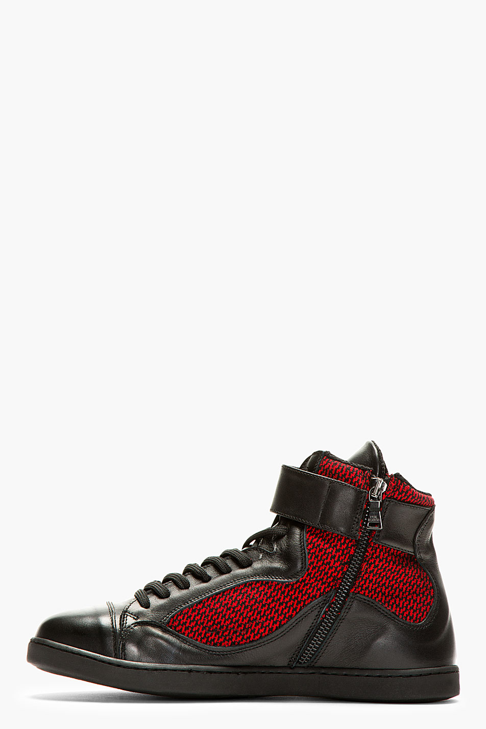 Available here: http://www.ssense.com/men/product/neil_barrett/black_and_red_woven-paneled_sneakers/87037
