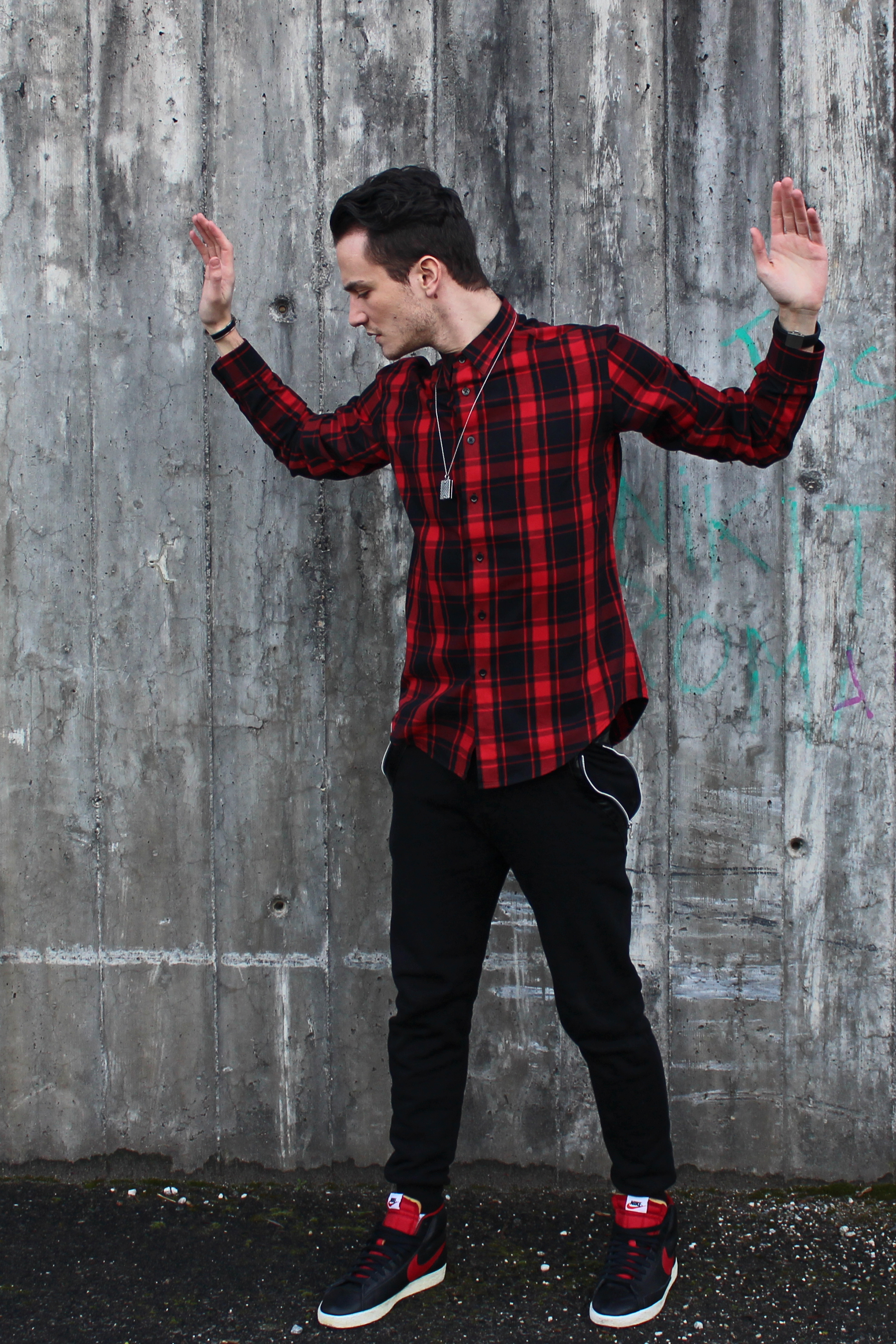 I did fall into the trend with this red tartan shirt, from (no not Saint Laurent, though it would have been the coolest option) Zara. I matched it for the look with these faux-leather sweatpants that you’ve recently seen in this previous post, and my favorite sneakers making their debut on the blog: Nike black leather and red blazers. I always like to accessorize and therefore I’m also wearing two pieces that hardly ever leave my wrist and neck: the “clic” H enamel bracelet from Hermès and this pendant from Bottega Veneta.IMG_3213 IMG_3215 IMG_3217 IMG_3251 IMG_3237 IMG_3230 IMG_3214