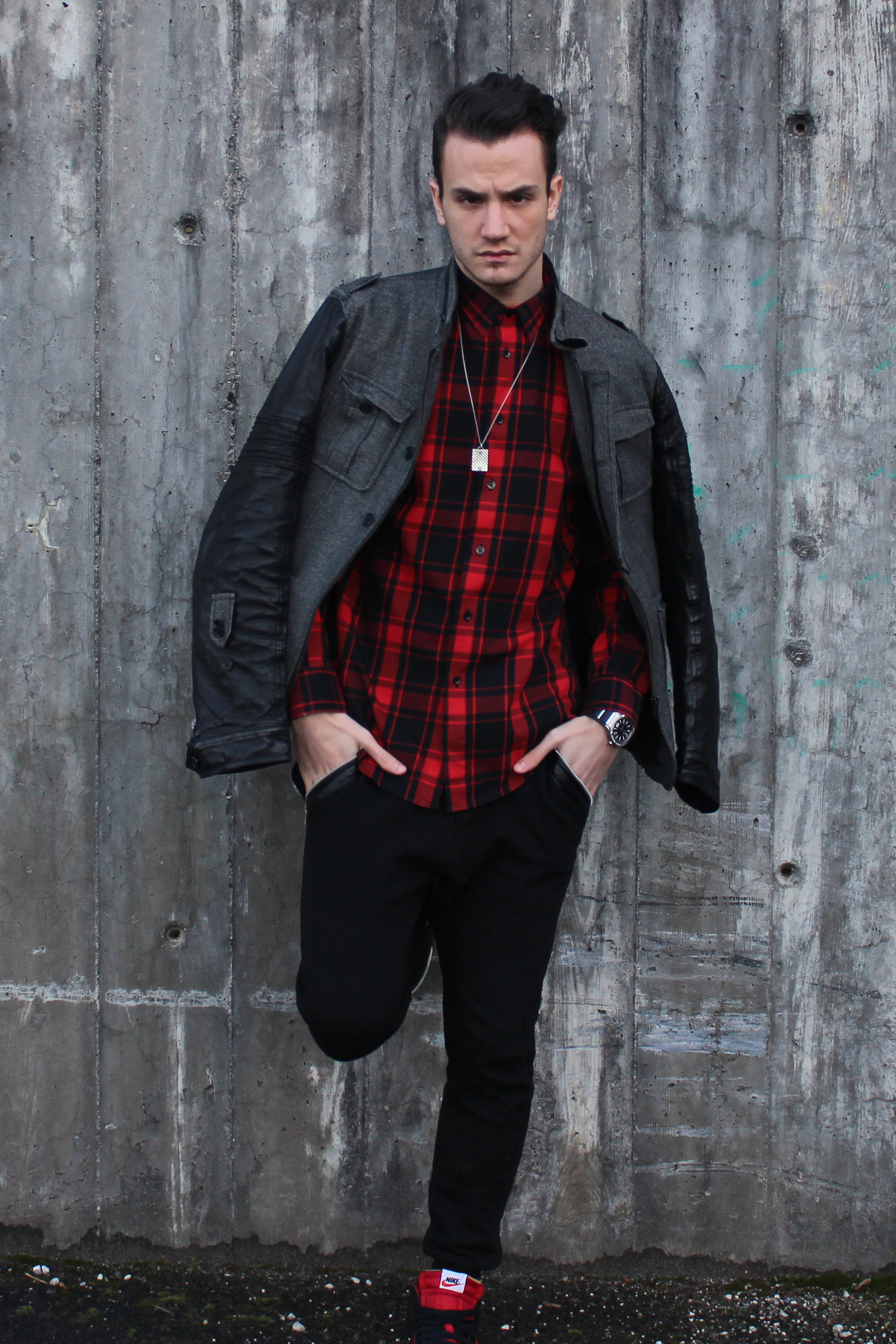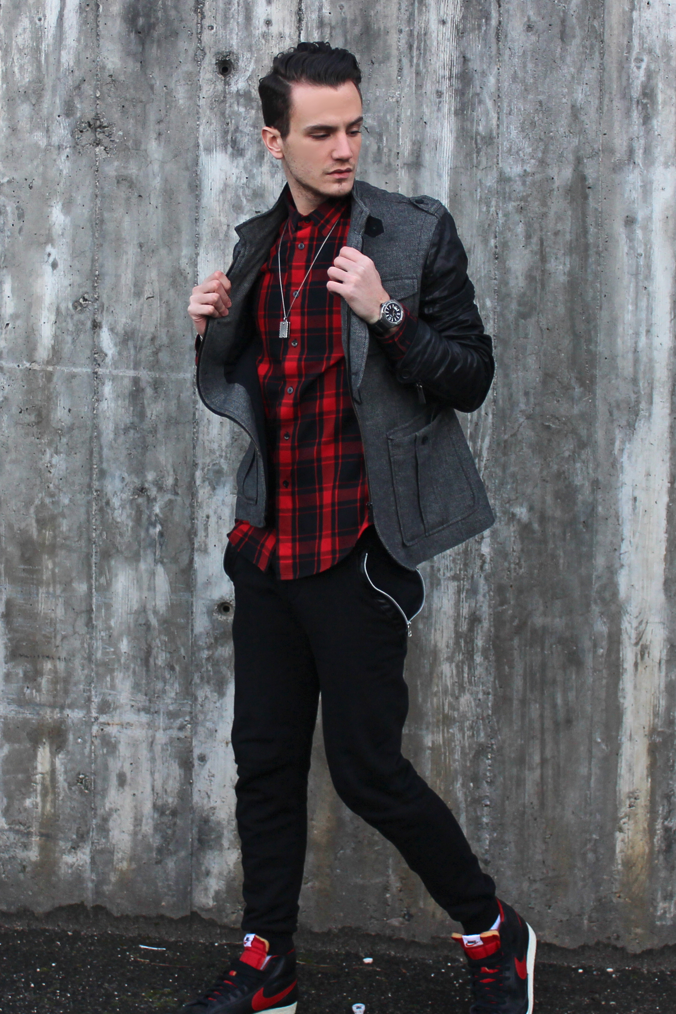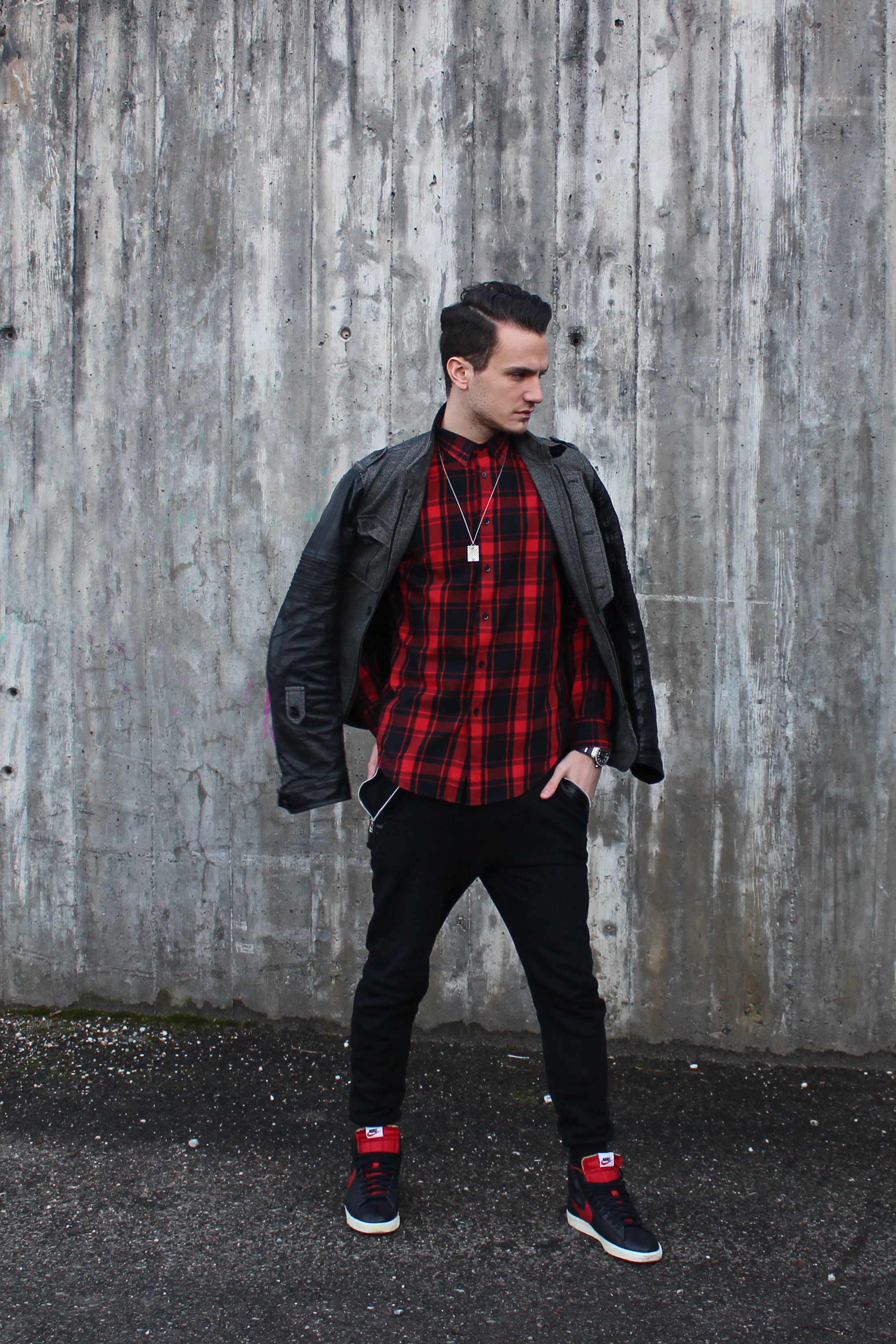 Red.Black.Leather.Streetwear.Tartan trend.