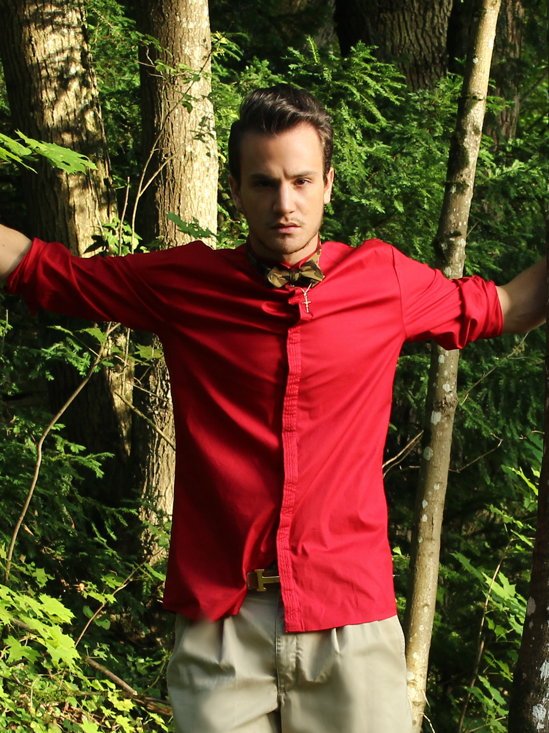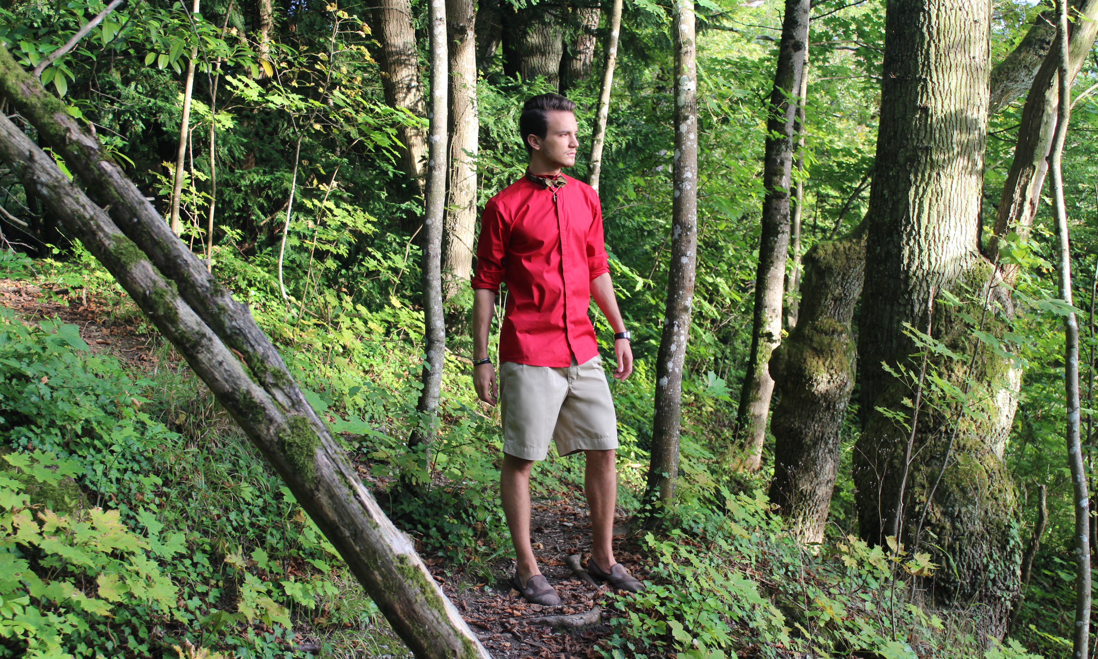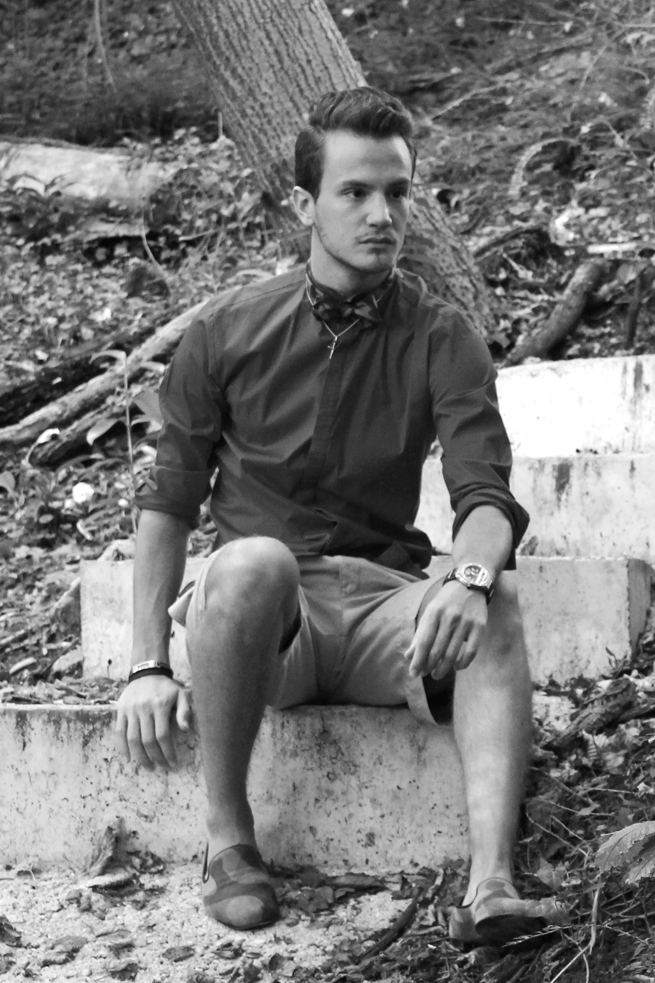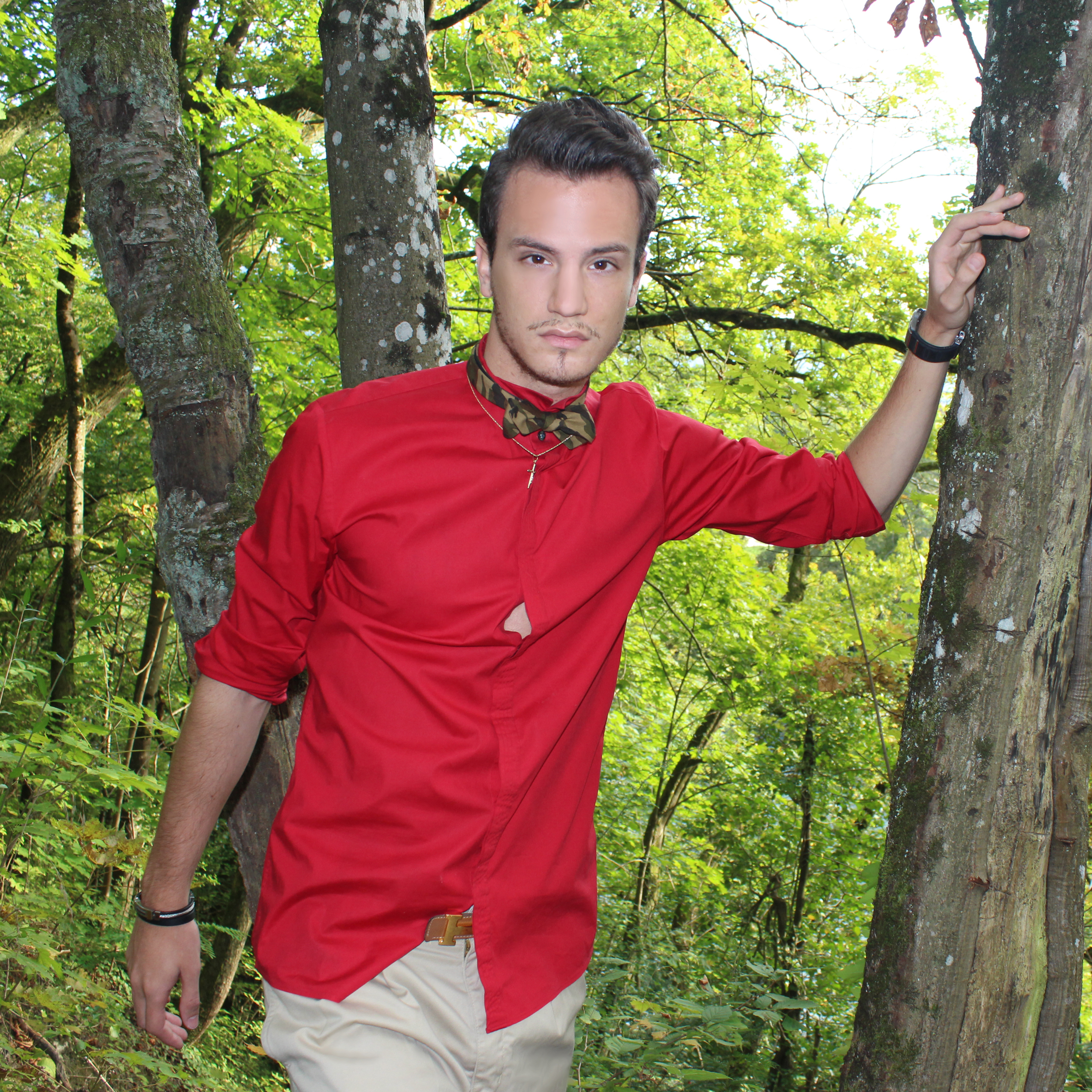 It was a beautiful summer day, the beginning of summer when the weather starts to be really great but not suffocating. I felt like wearing shorts but you know me, I always feel the need to add a sophisticated touch to my outfits. I went for this bright red Hugo by Hugo Boss shorts, and a matching camo combo, with this Beams Plus bow tie and Giuseppe Zanotti loafers.