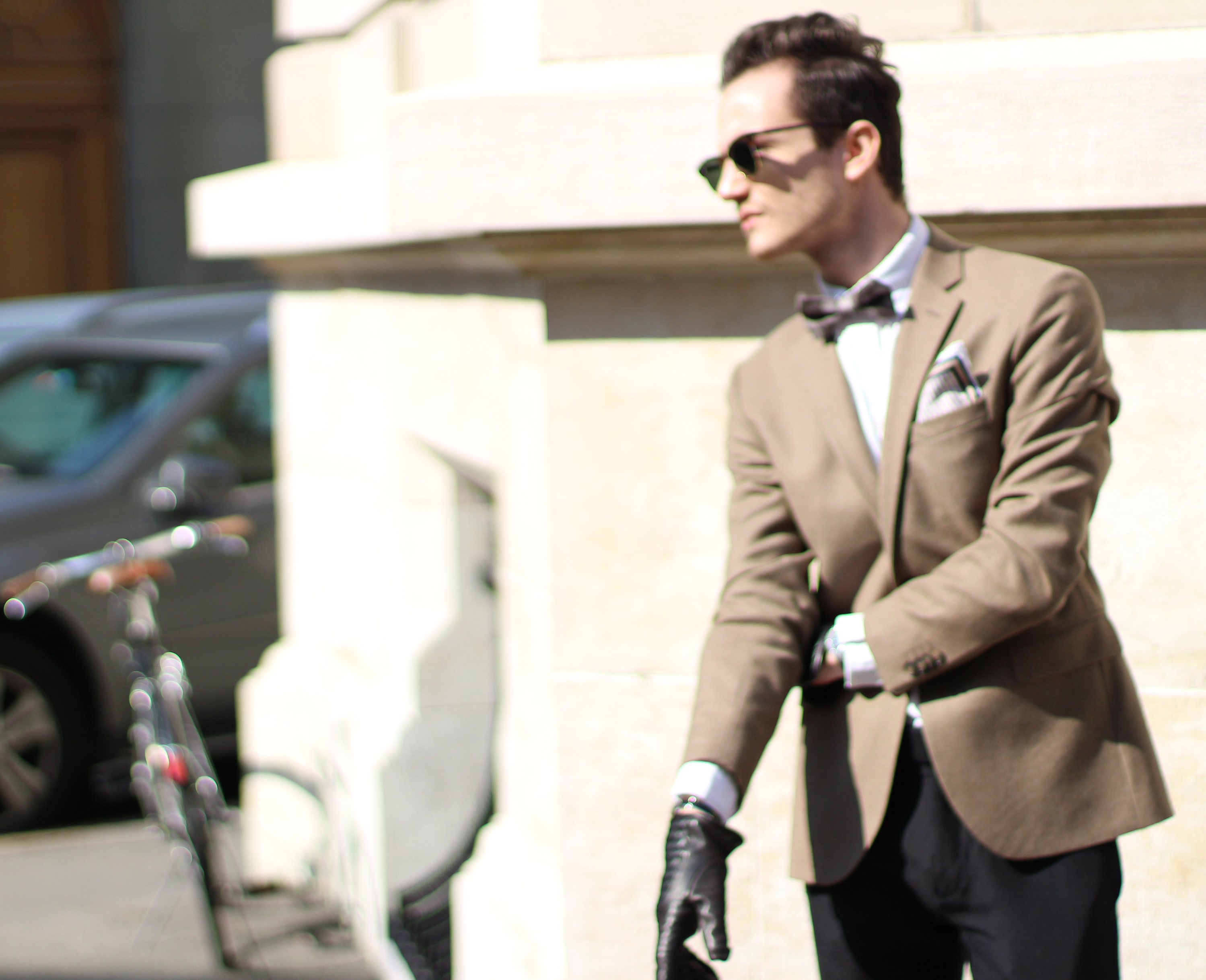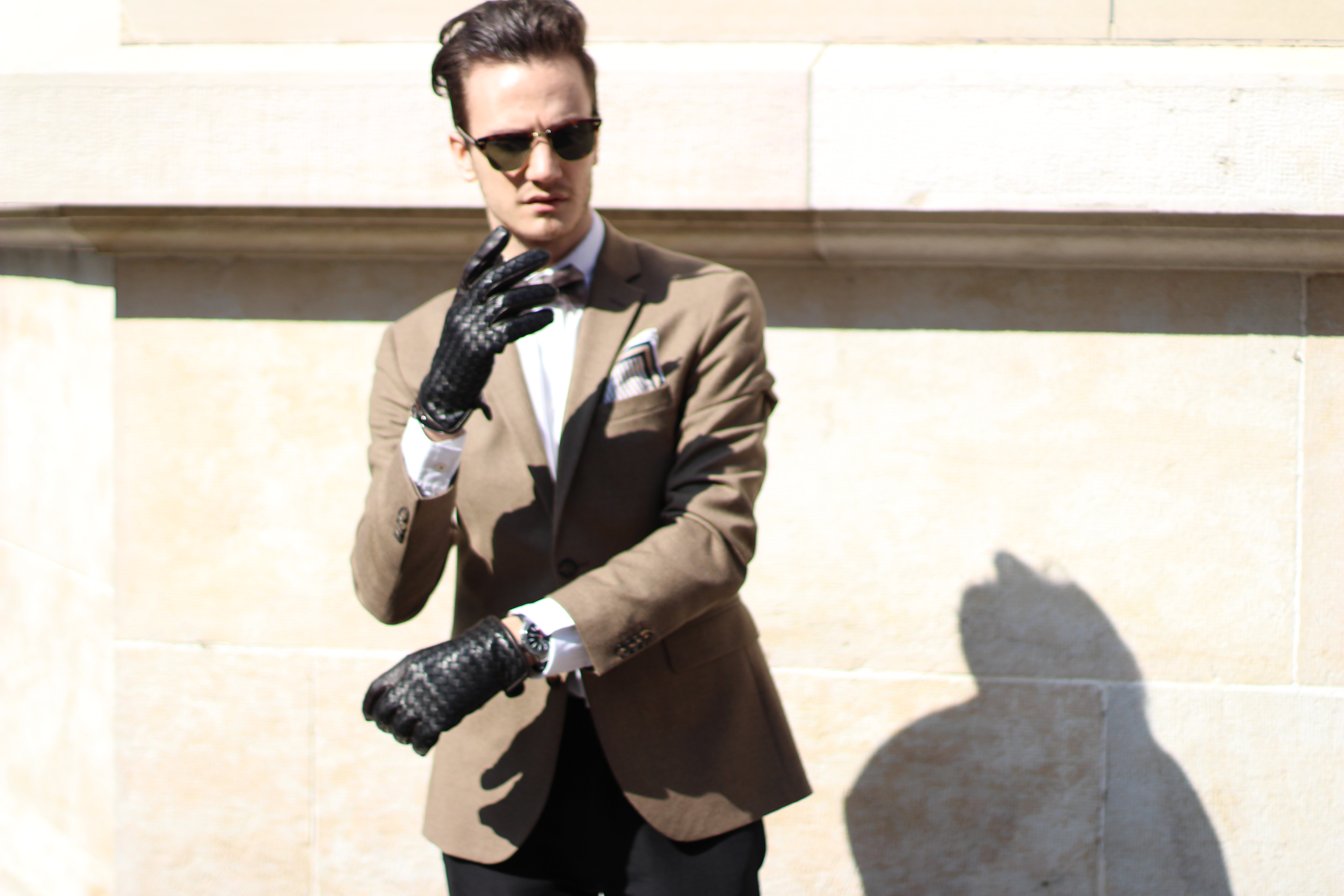 Pushing the sophistication of the look a little further I added my favorite pair of intrecciato leather Bottega Veneta two-toned gloves, which I thought perfectly went along with the look and feel of the outfit, as it only feels natural for a modern dandy to wear leather gloves on a sunny day..