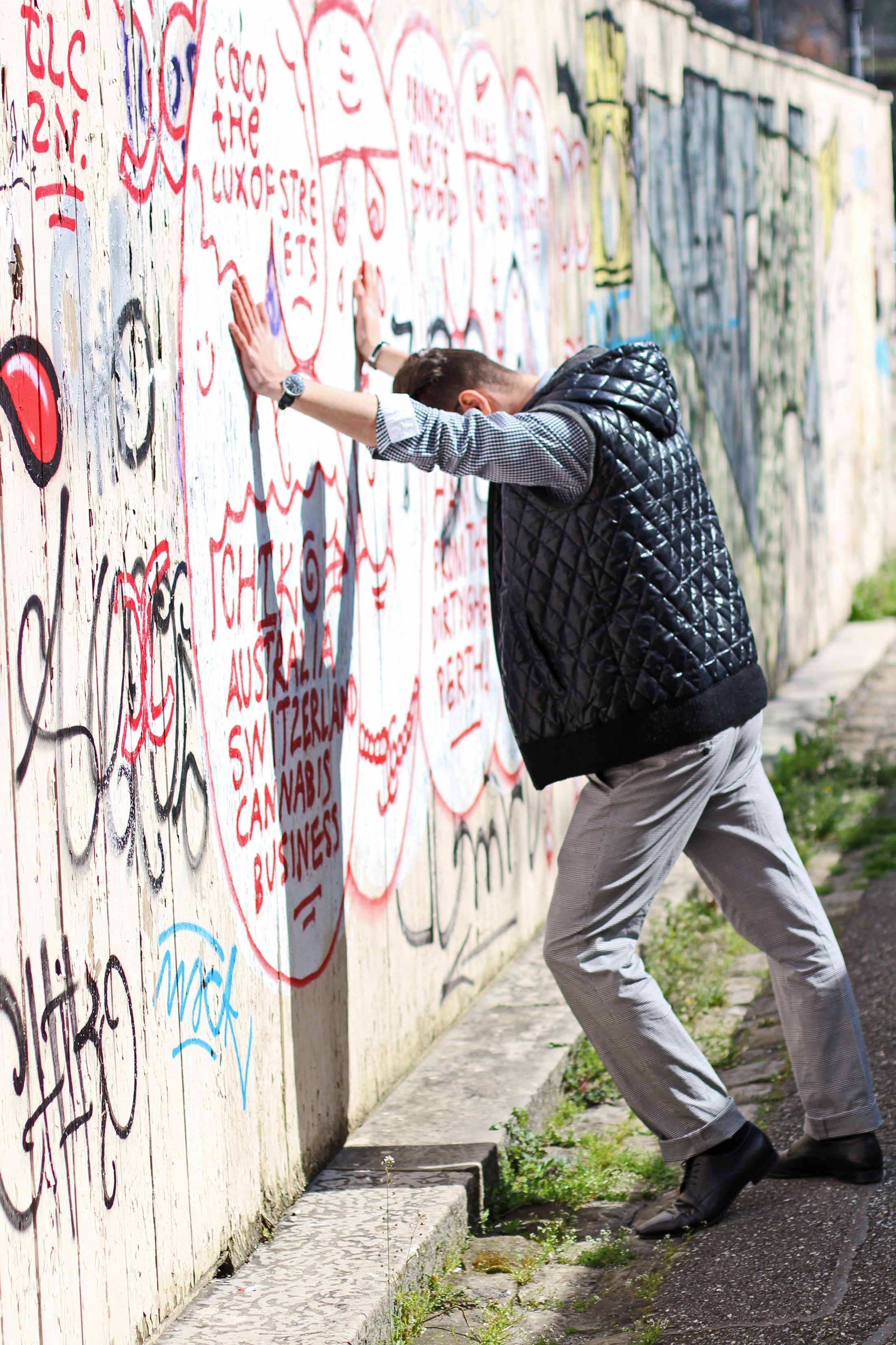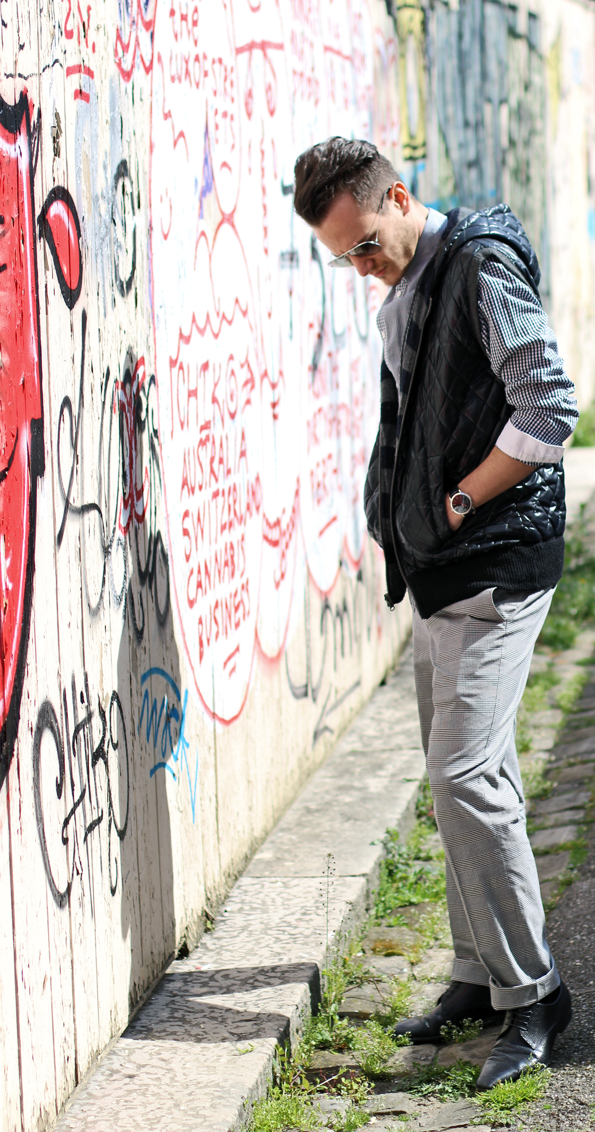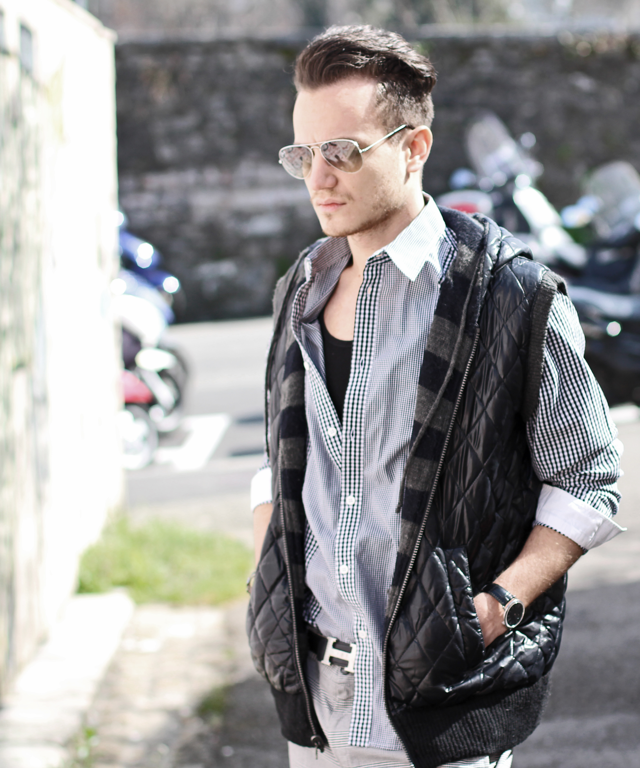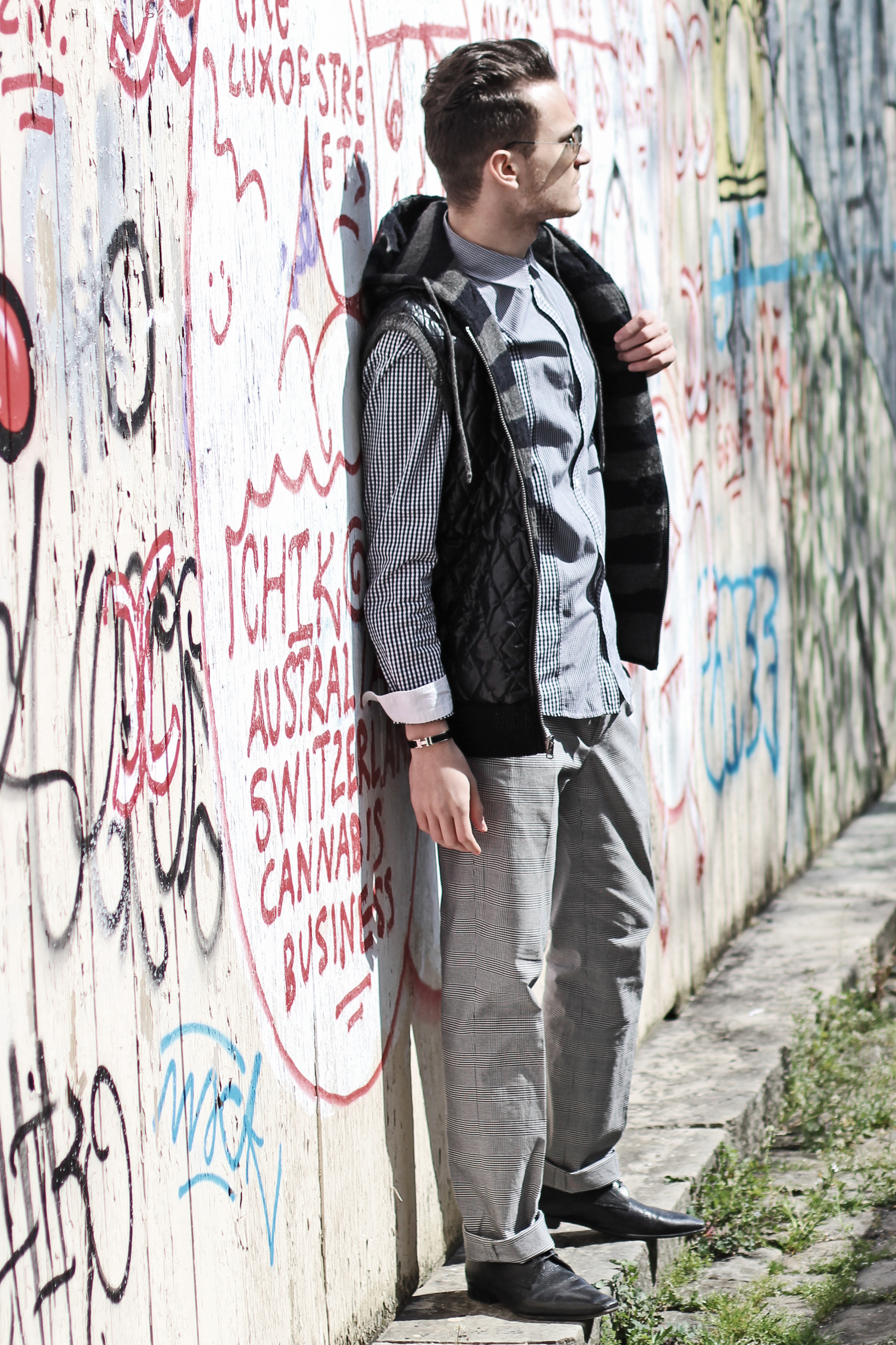 My favorite “H” accessories (it is my name..! ) and a pair of aviators and I was ready to shoot in front of this cool graffiti wall.
