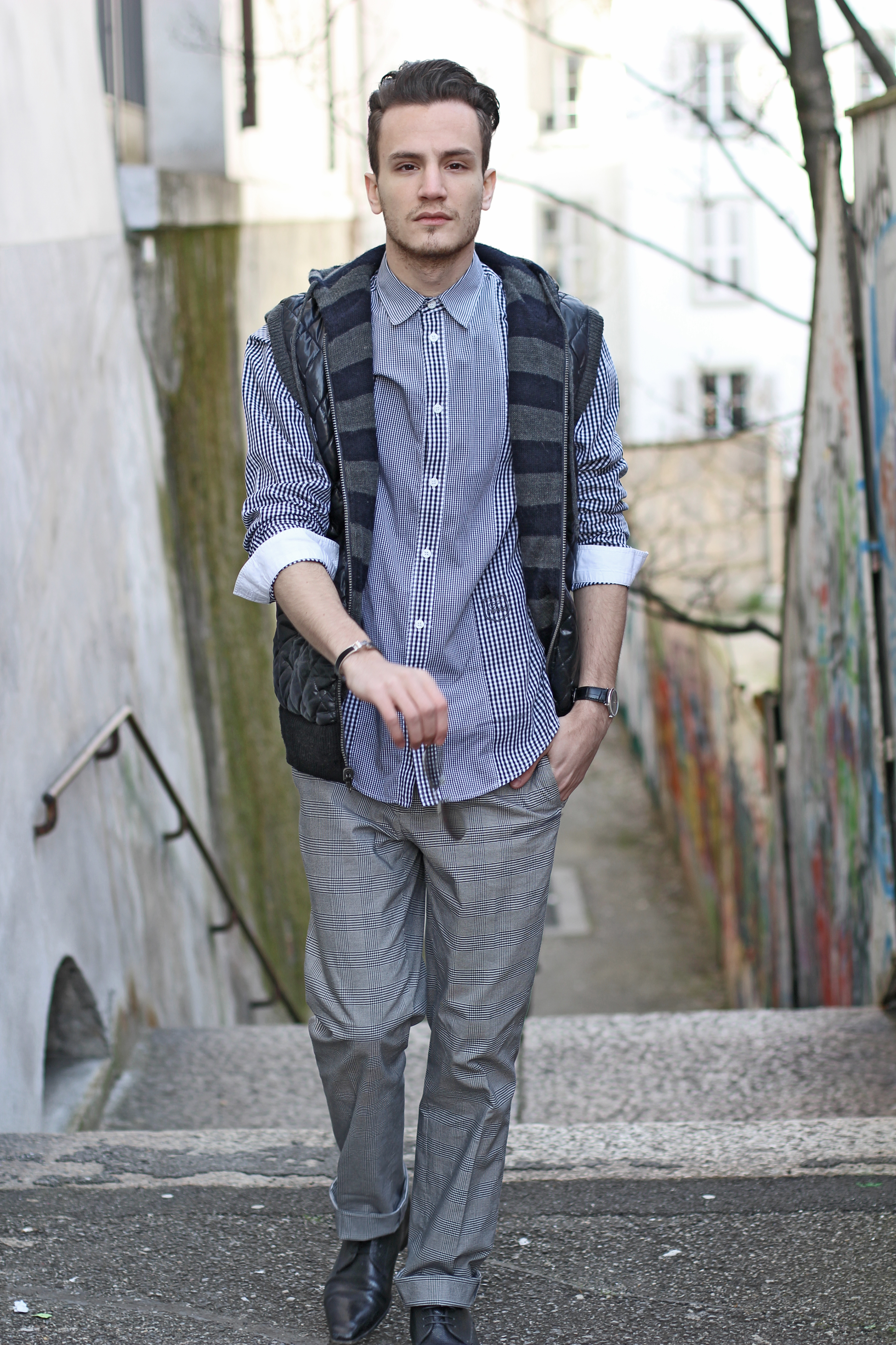 This one is of the second category. I played with mixing patterns with this Gianfranco Ferre shirt mixed with these Zara plaid trousers.