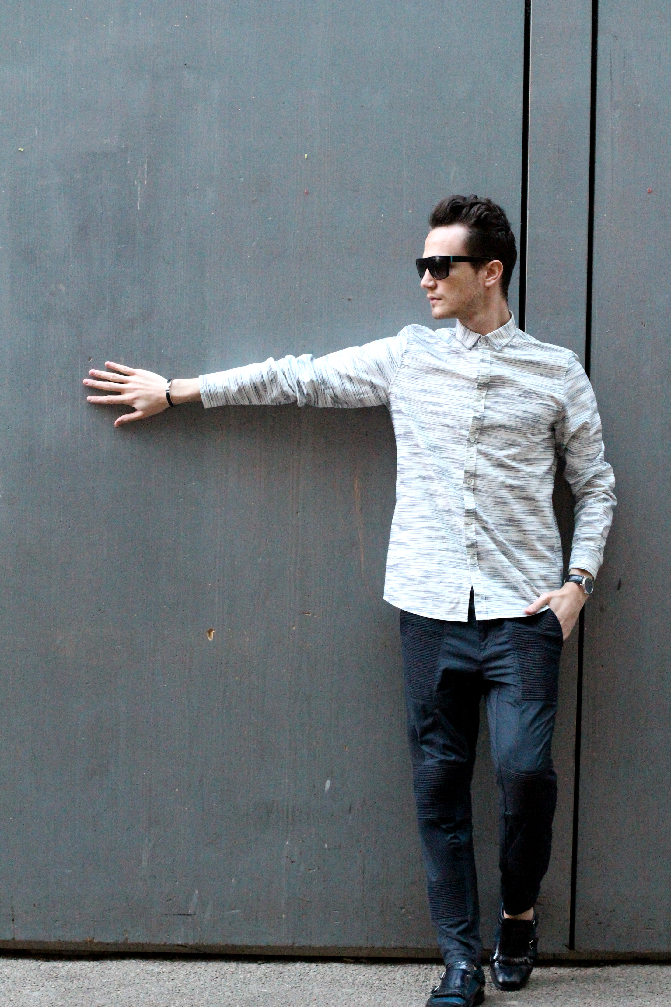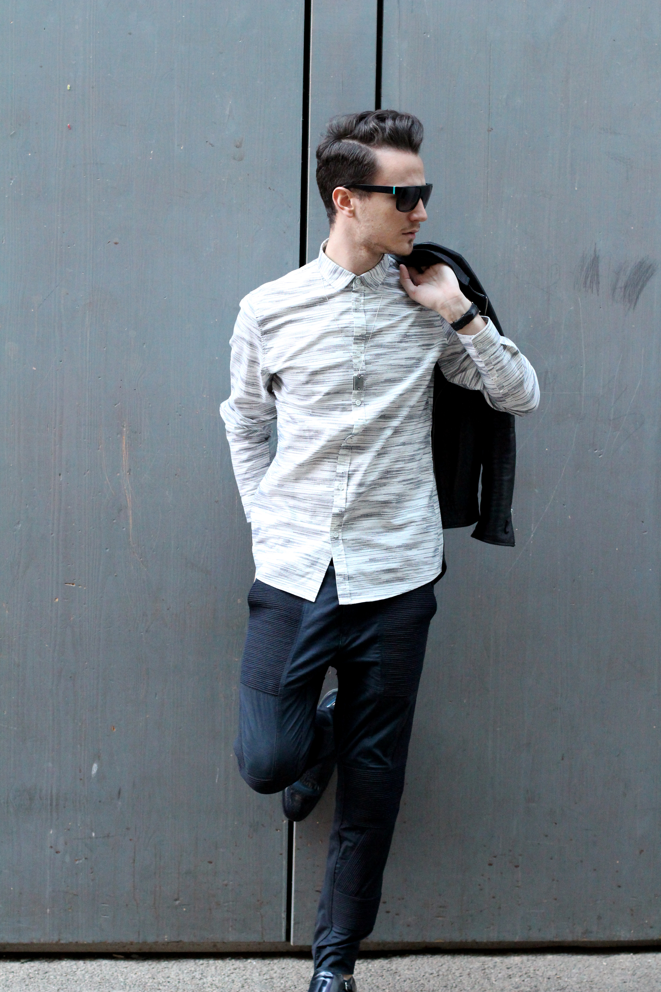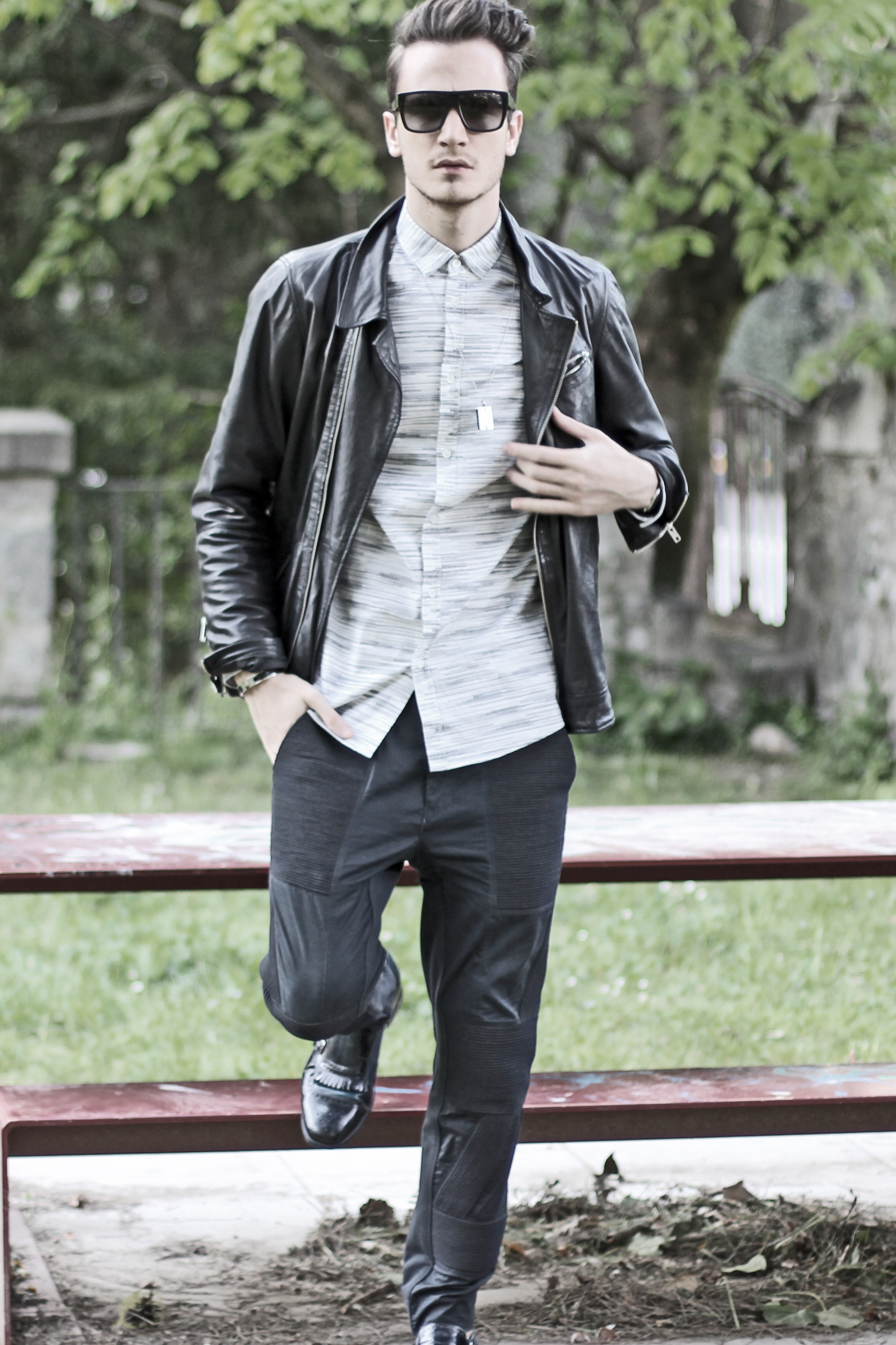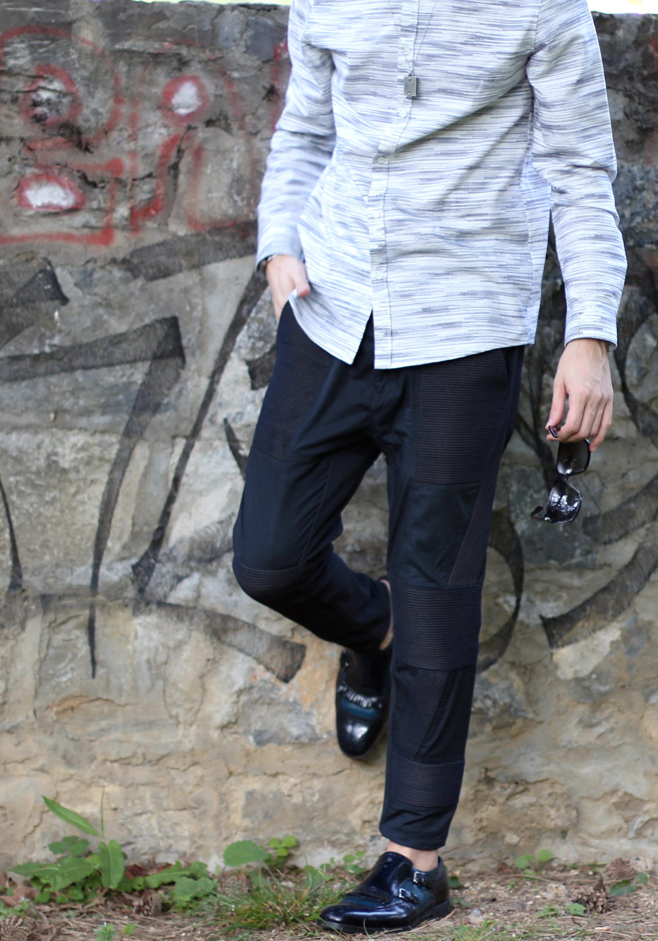 I thought it would be interesting to play with the matching “vertical lines” pattern going on on both those pieces. They also have the same edgy graphic spirit – perfect match.