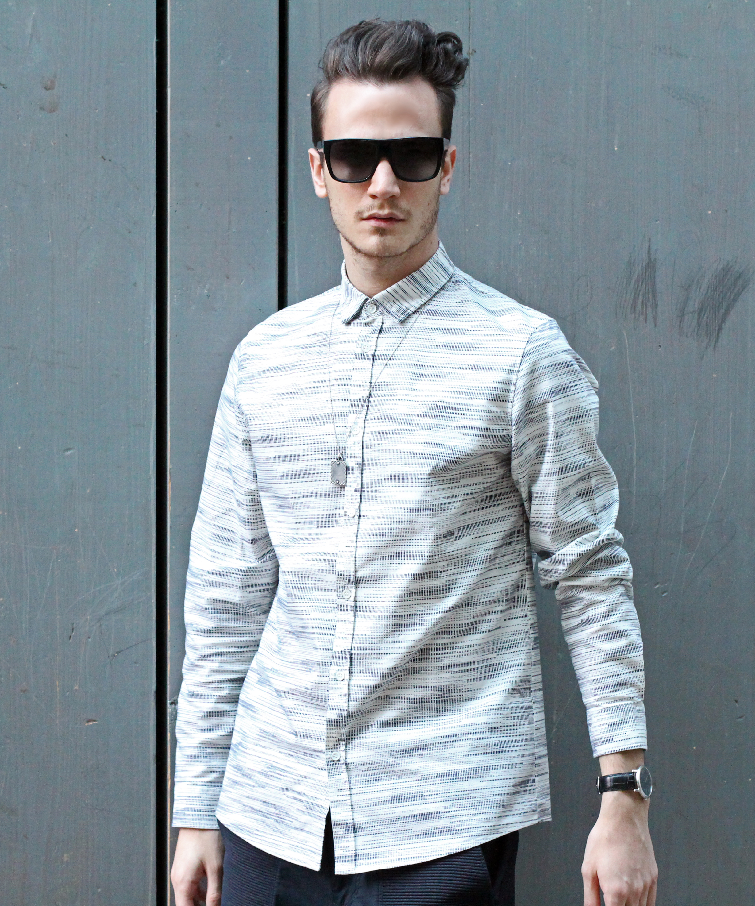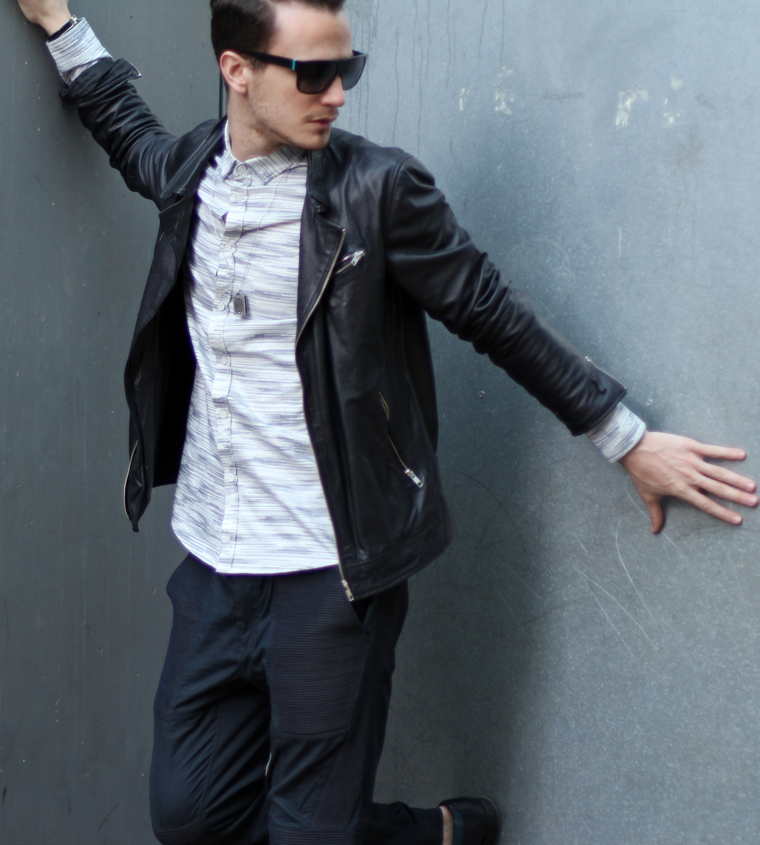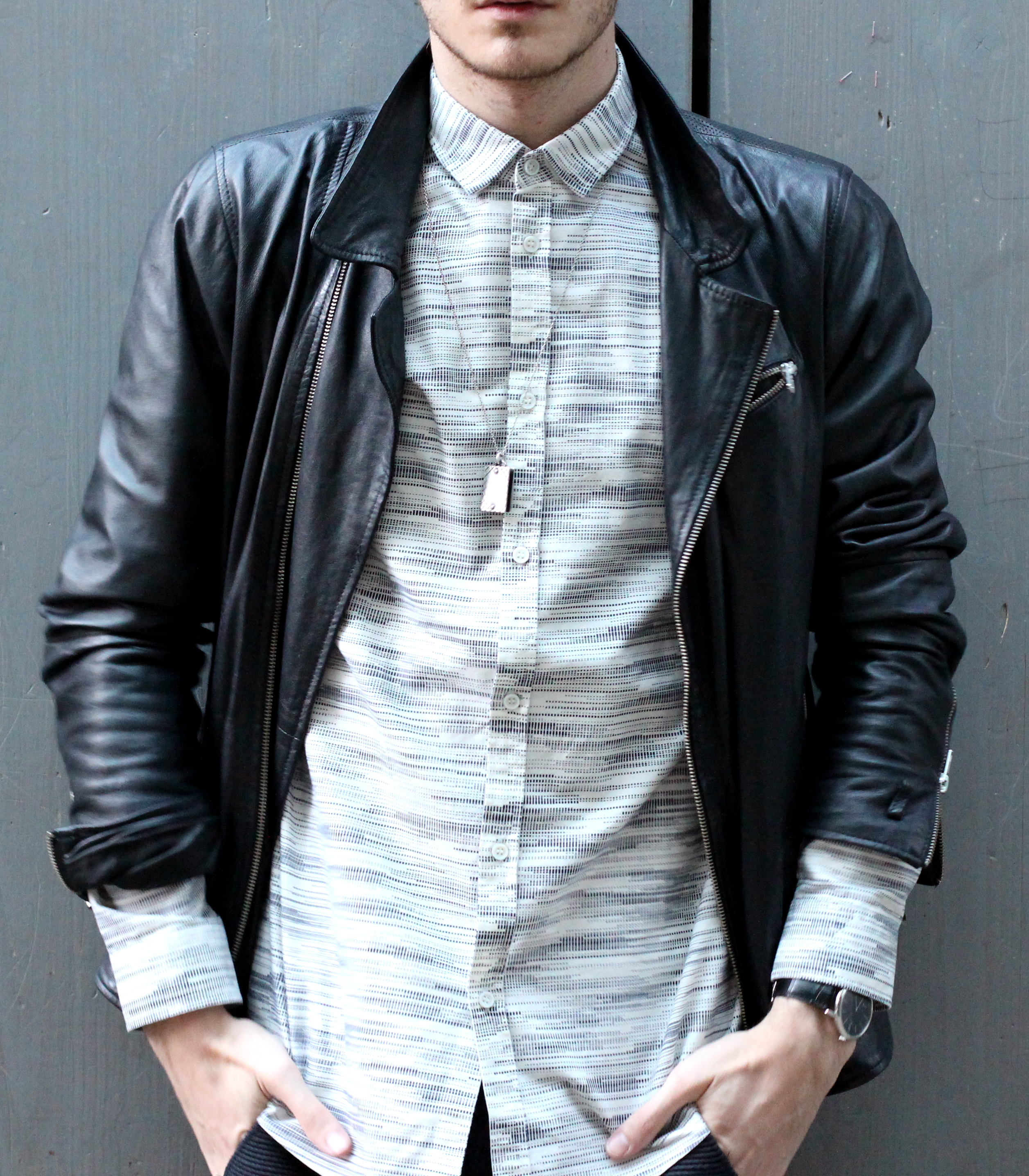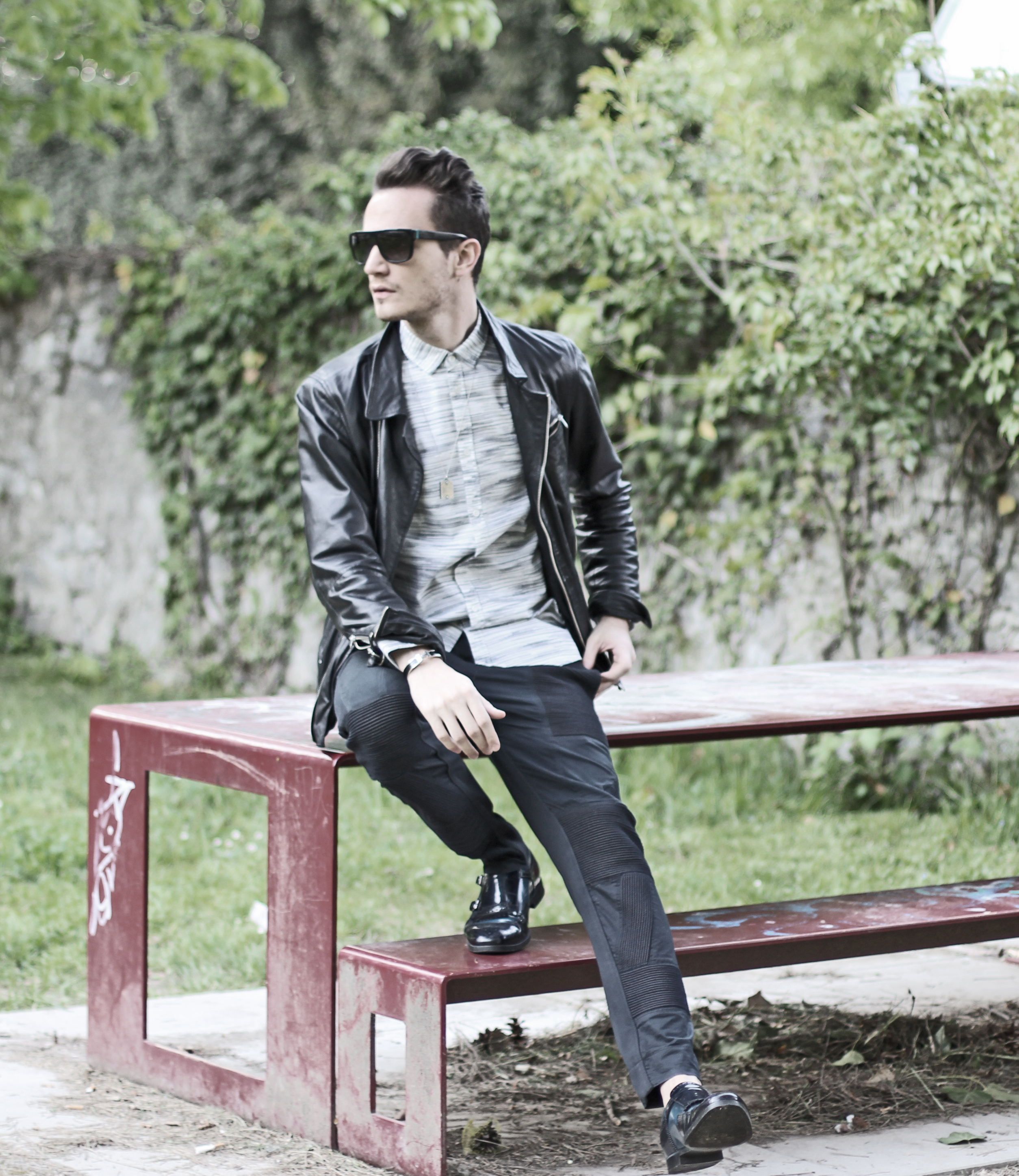 I thought it would be interesting to play with the matching “vertical lines” pattern going on on both those pieces. They also have the same edgy graphic spirit – perfect match.