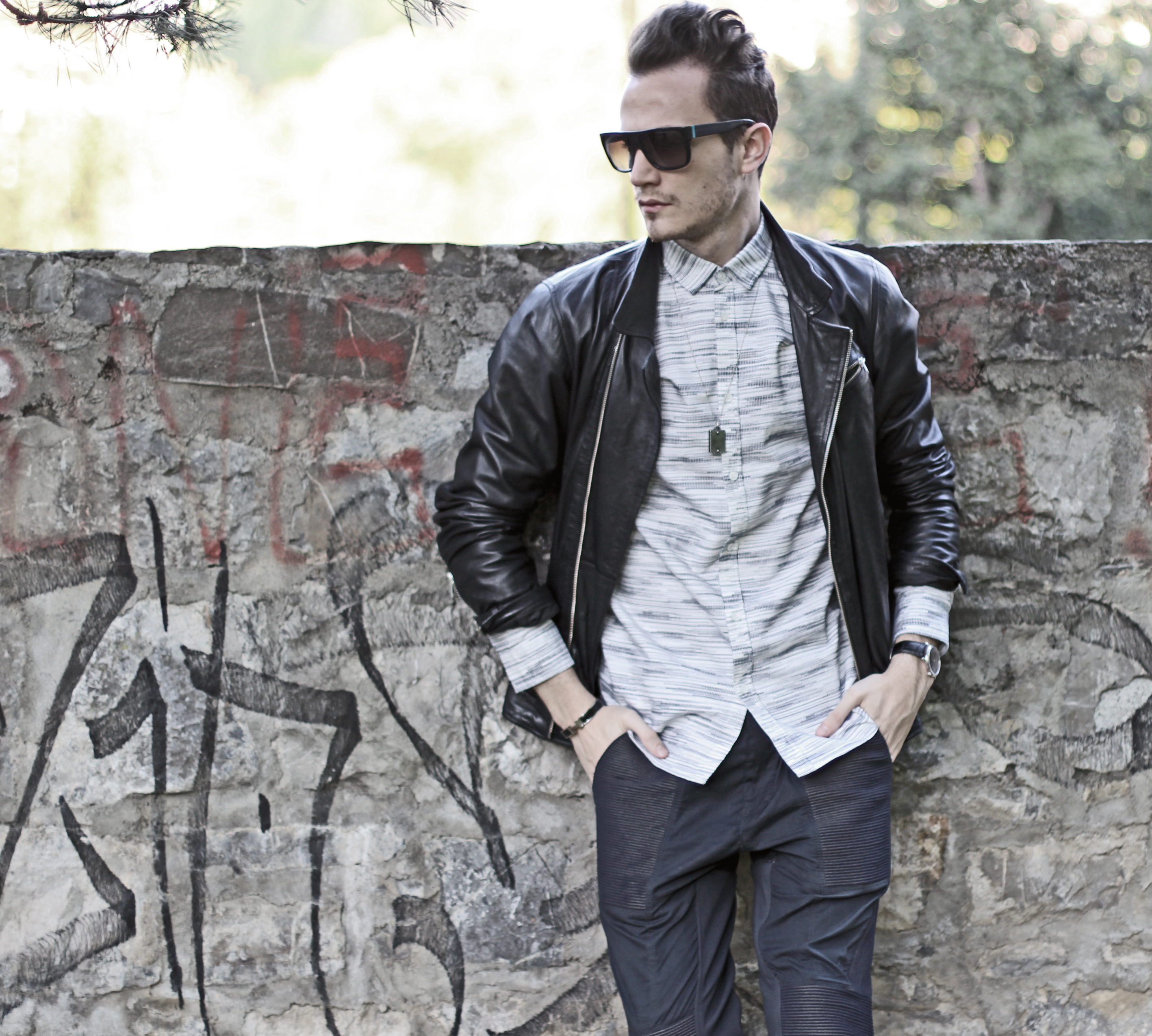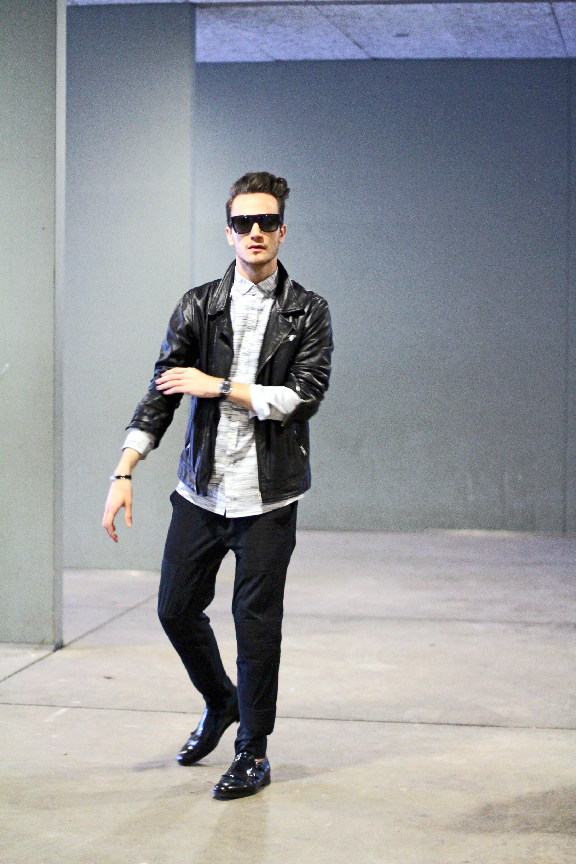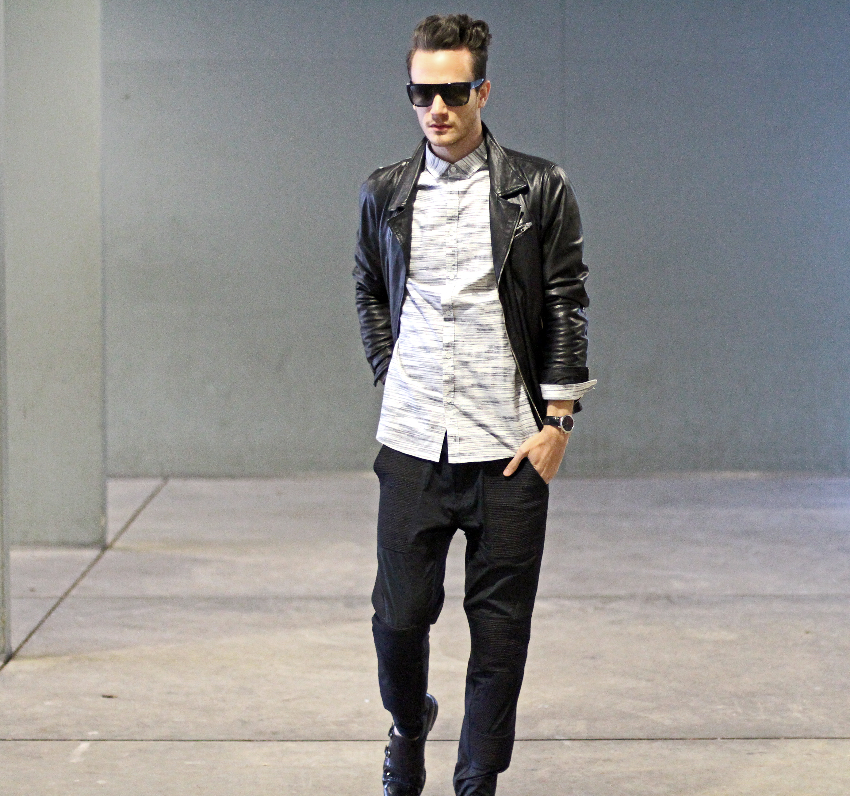 I added leather touches with this The Kooples dark blue leather jacket and my favorite Prada Loafers.