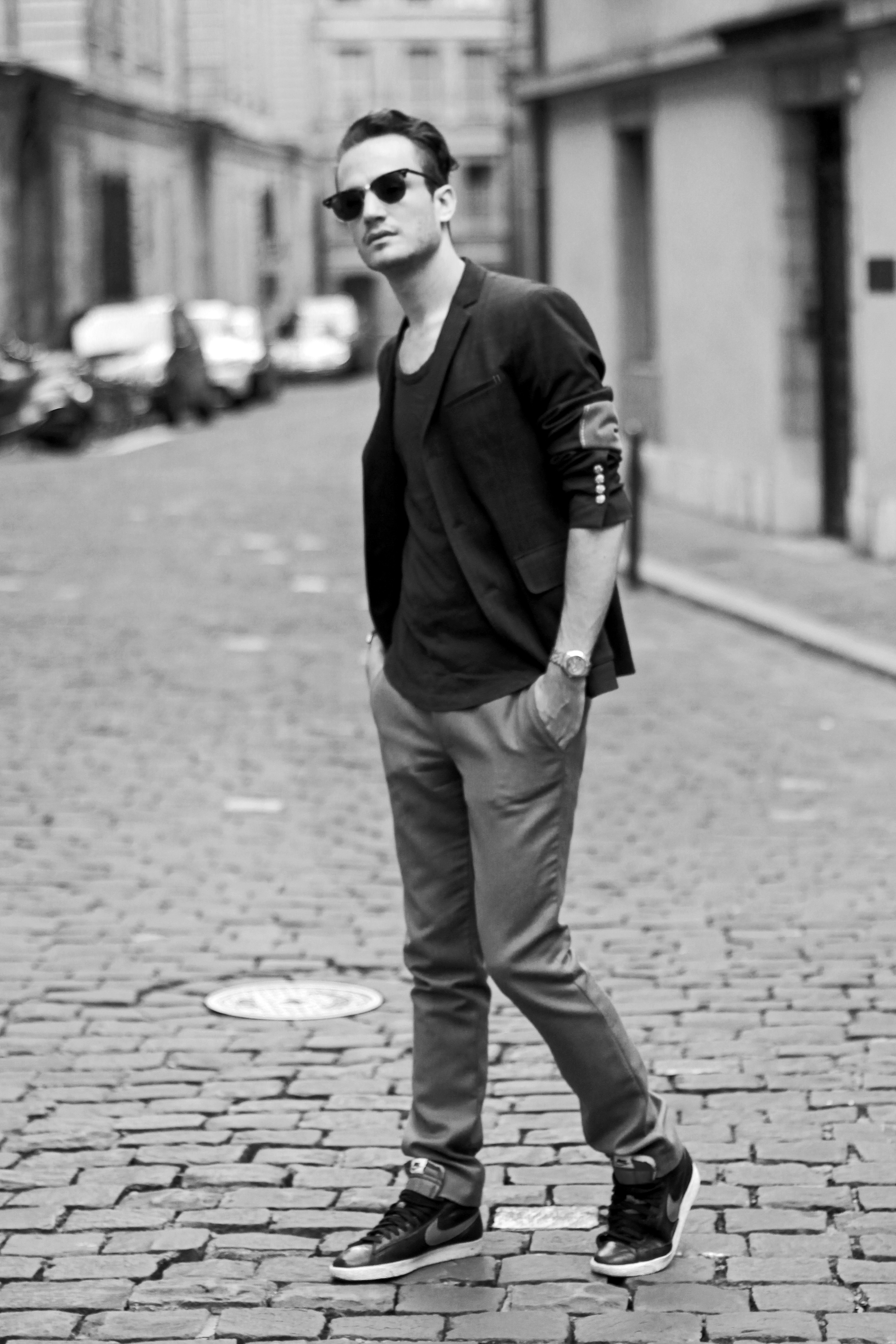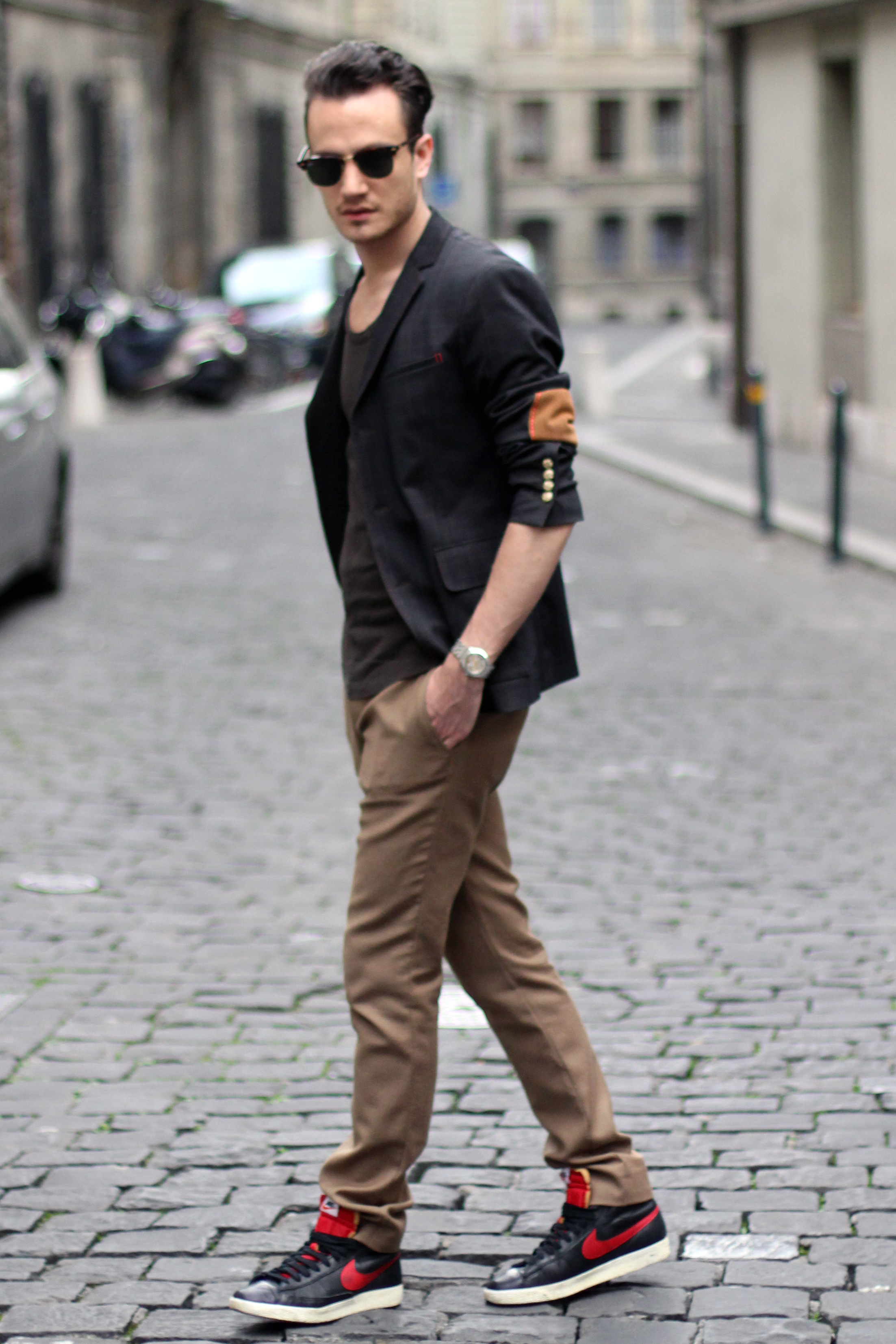 To dress up the look I put on this fun Zara blazer with camel patches on the elbows and a red touch. Red touch that matches the red sign on my favorite Nike Blazer sneakers.