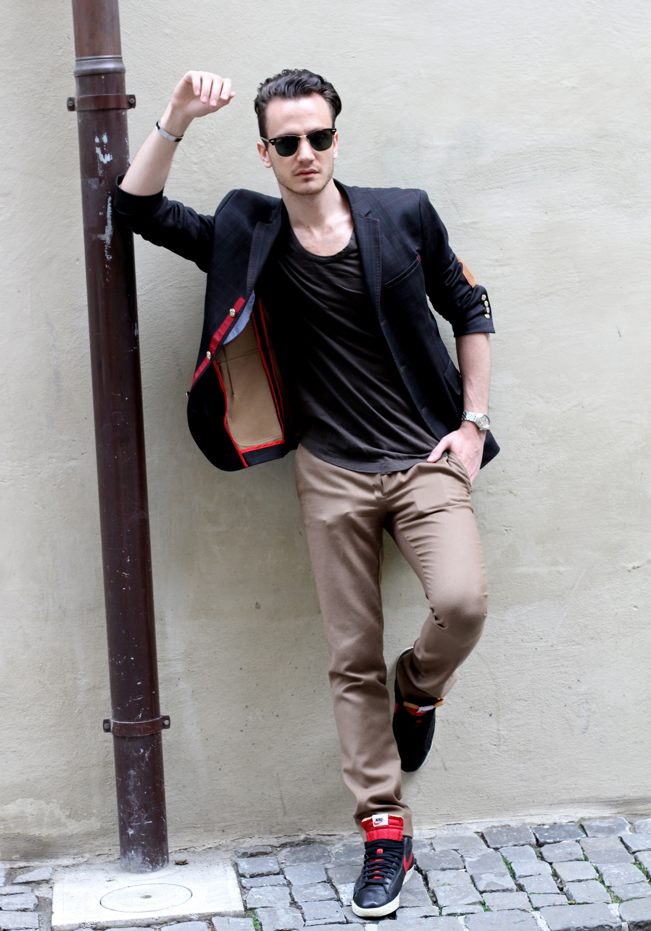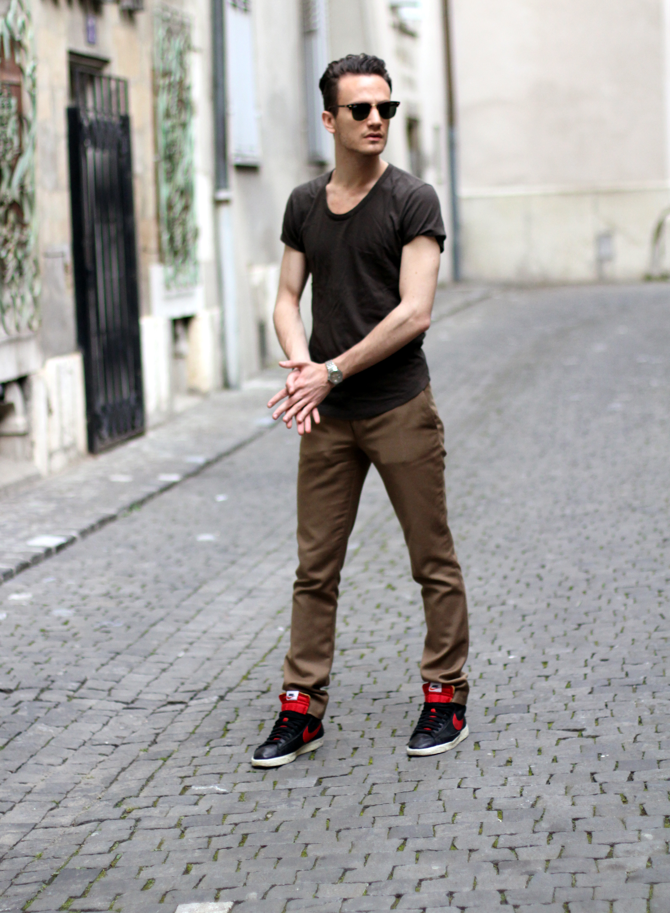 It’s getting warmer and warmer and I’m loving it. Feeling the light fabric of a cotton t shirt and not being cold is great. Like this brown t shirt I’m wearing in today’s look, matched with The Kooples camel pants from last autumn winter season.