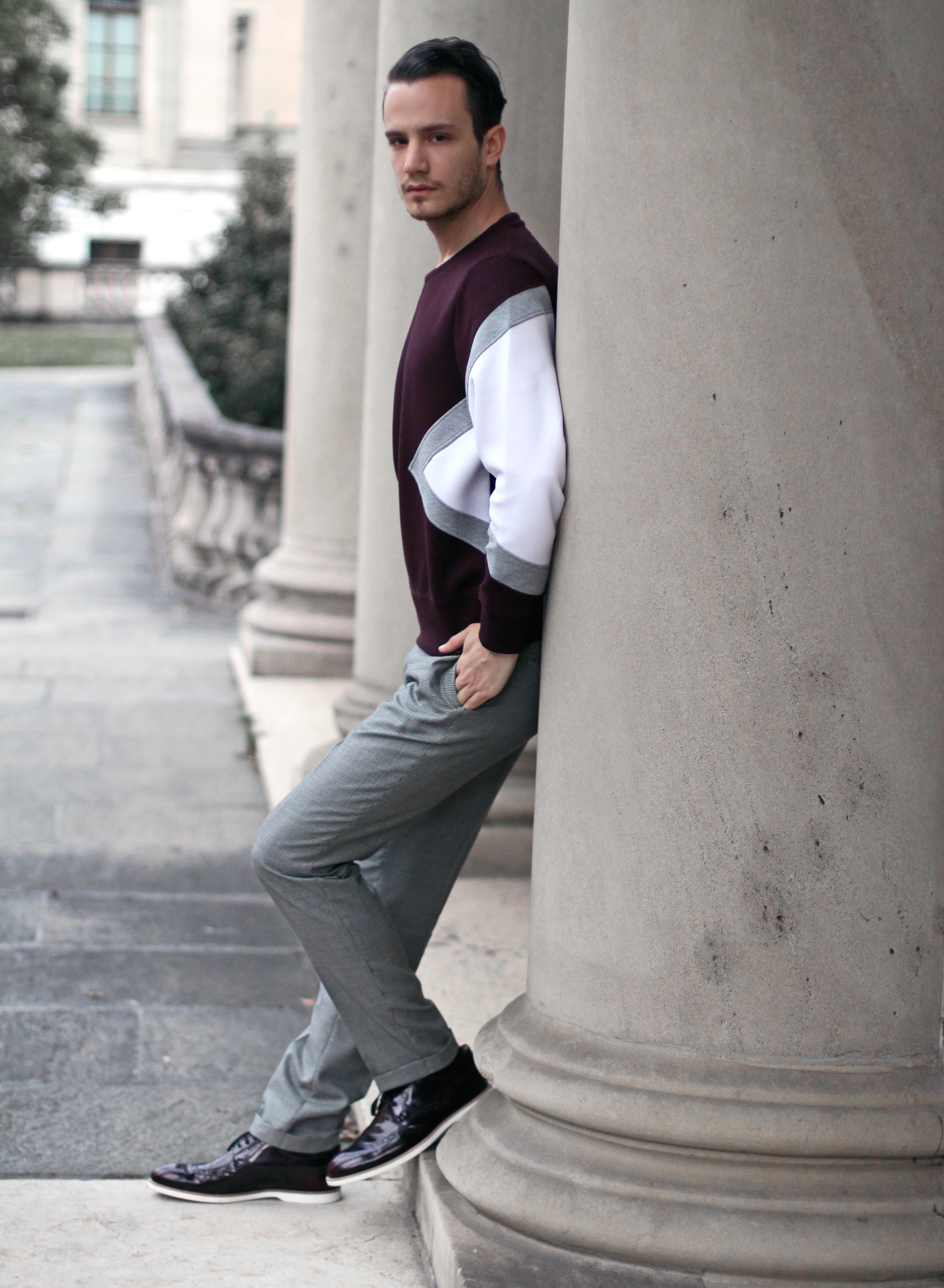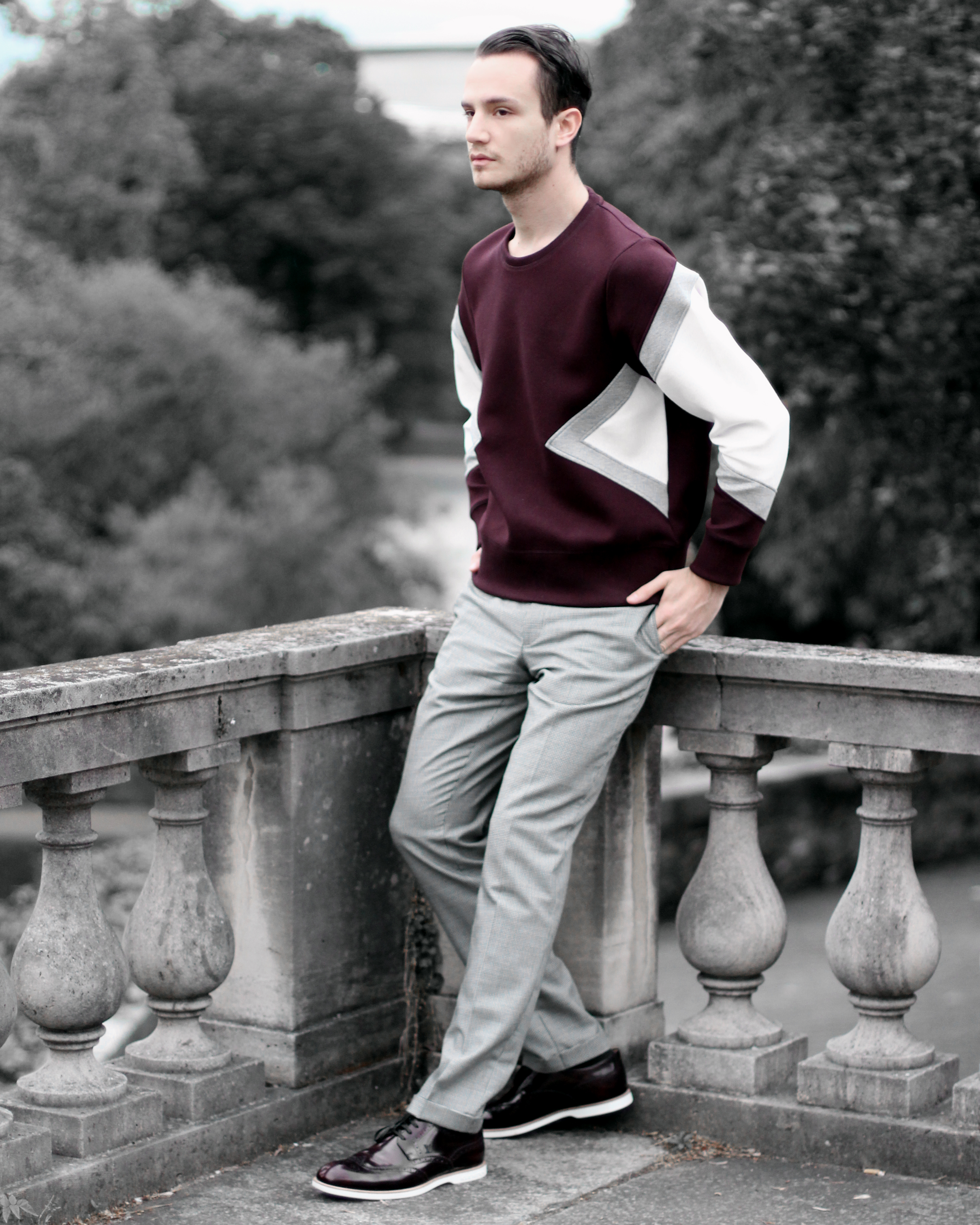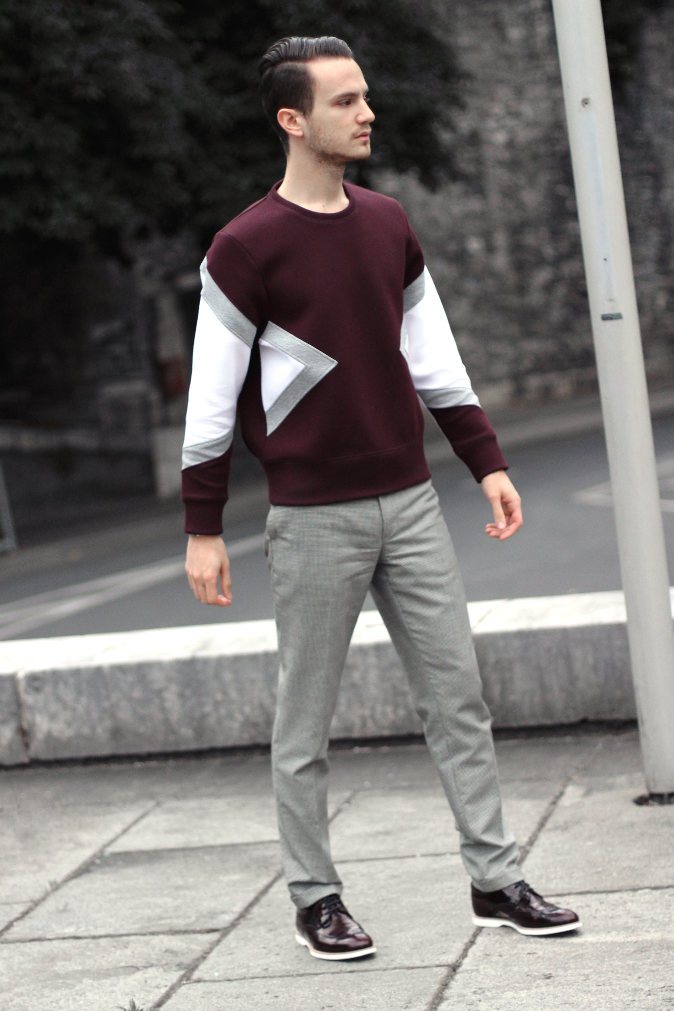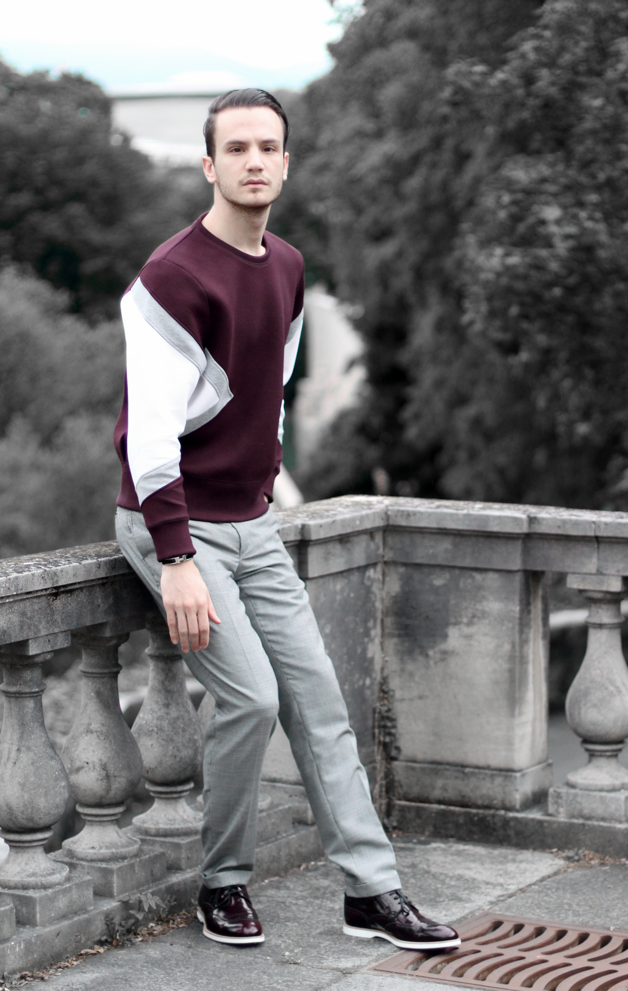 This burgundy/grey/white version was not shown during the runway show (watch the video here) therefore I was really suprised when I found it online on a retailer’s store.