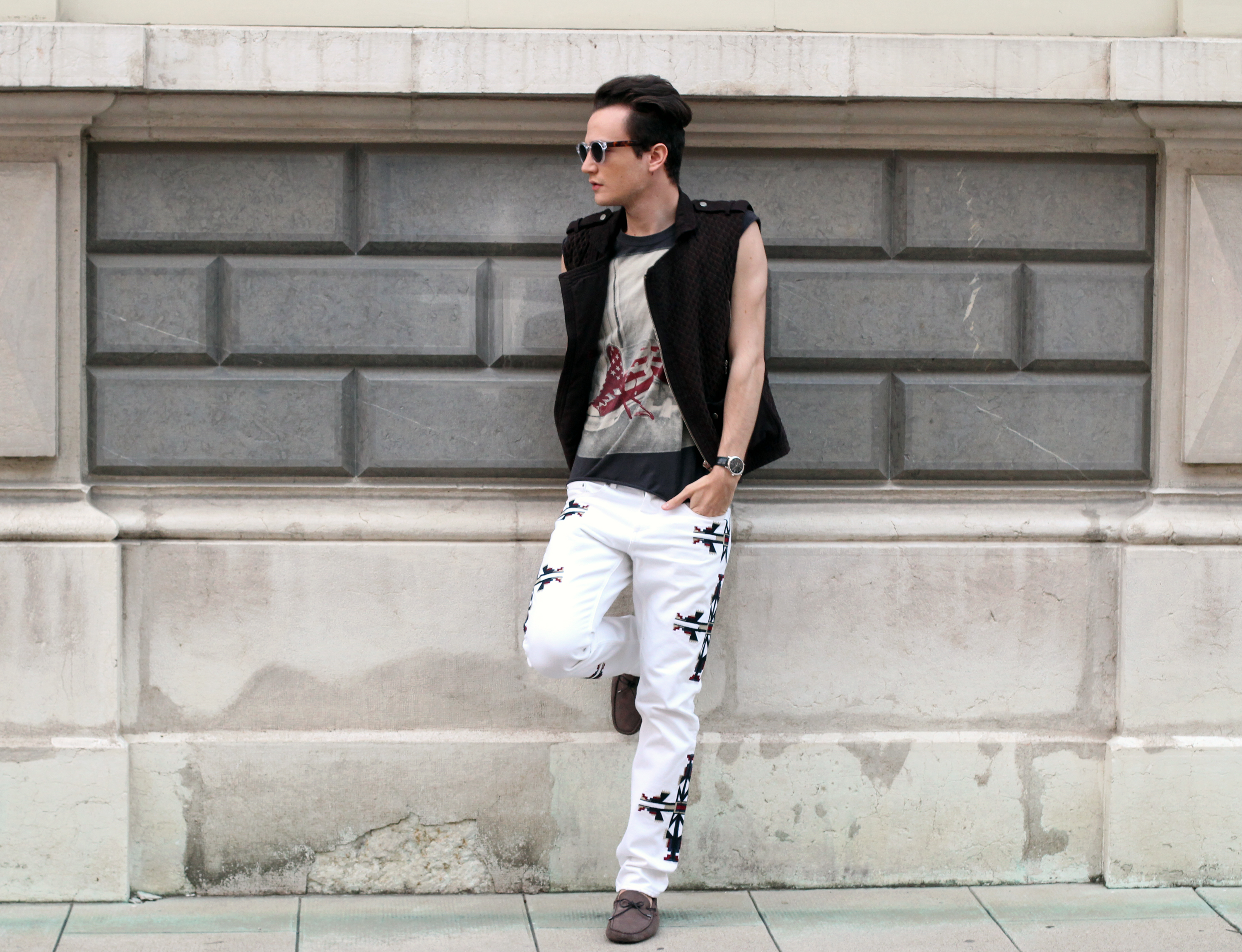 The pattern on the pants somehow brought to my head the idea of a western so I added this Zara vest, for a modern city-cowboy kind of look. (if that makes sense).