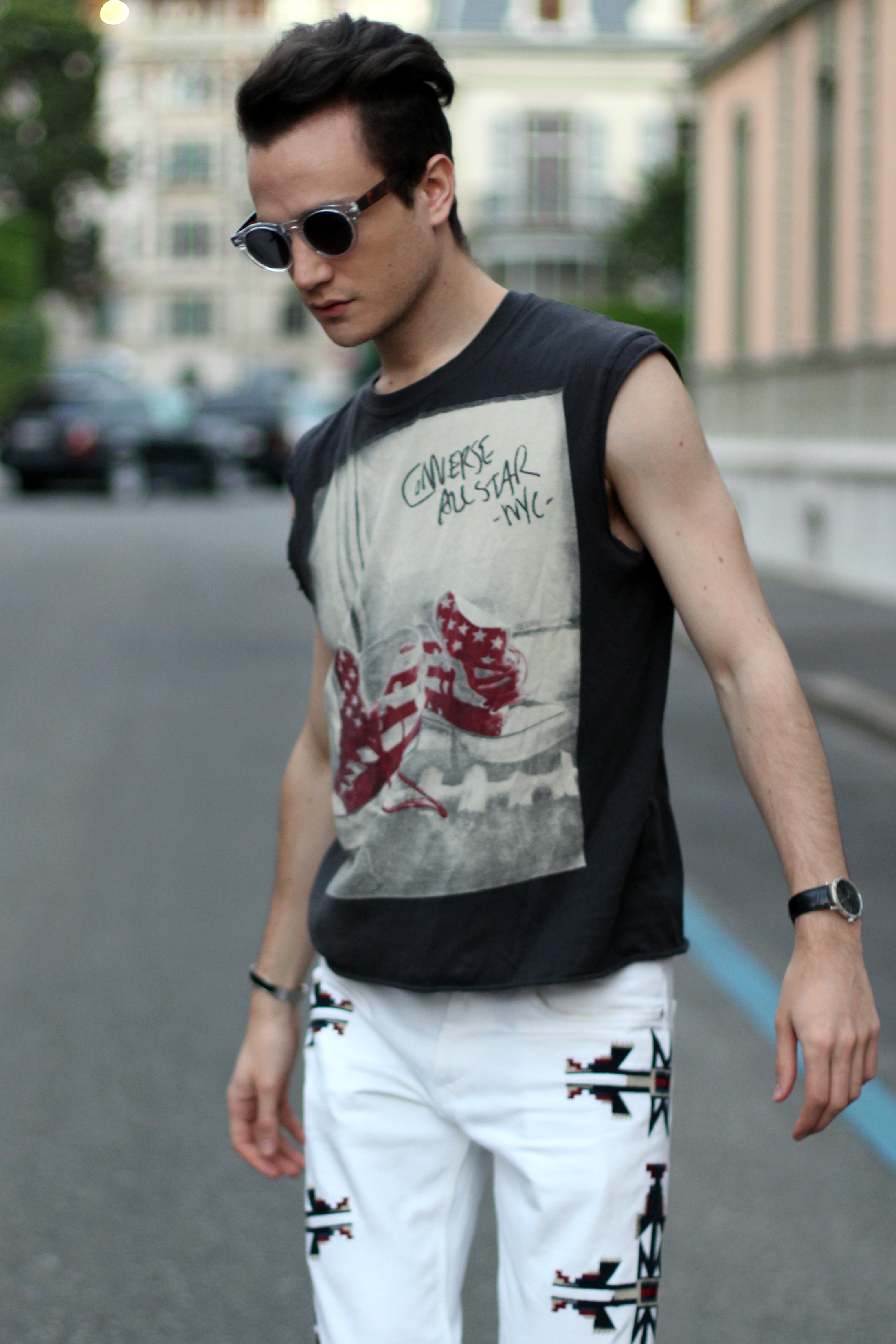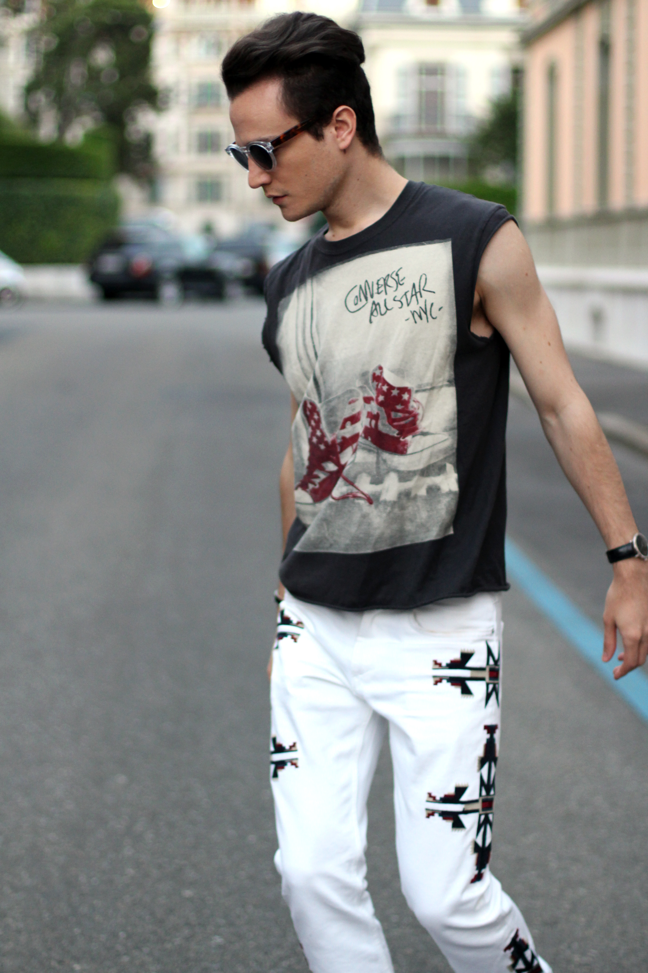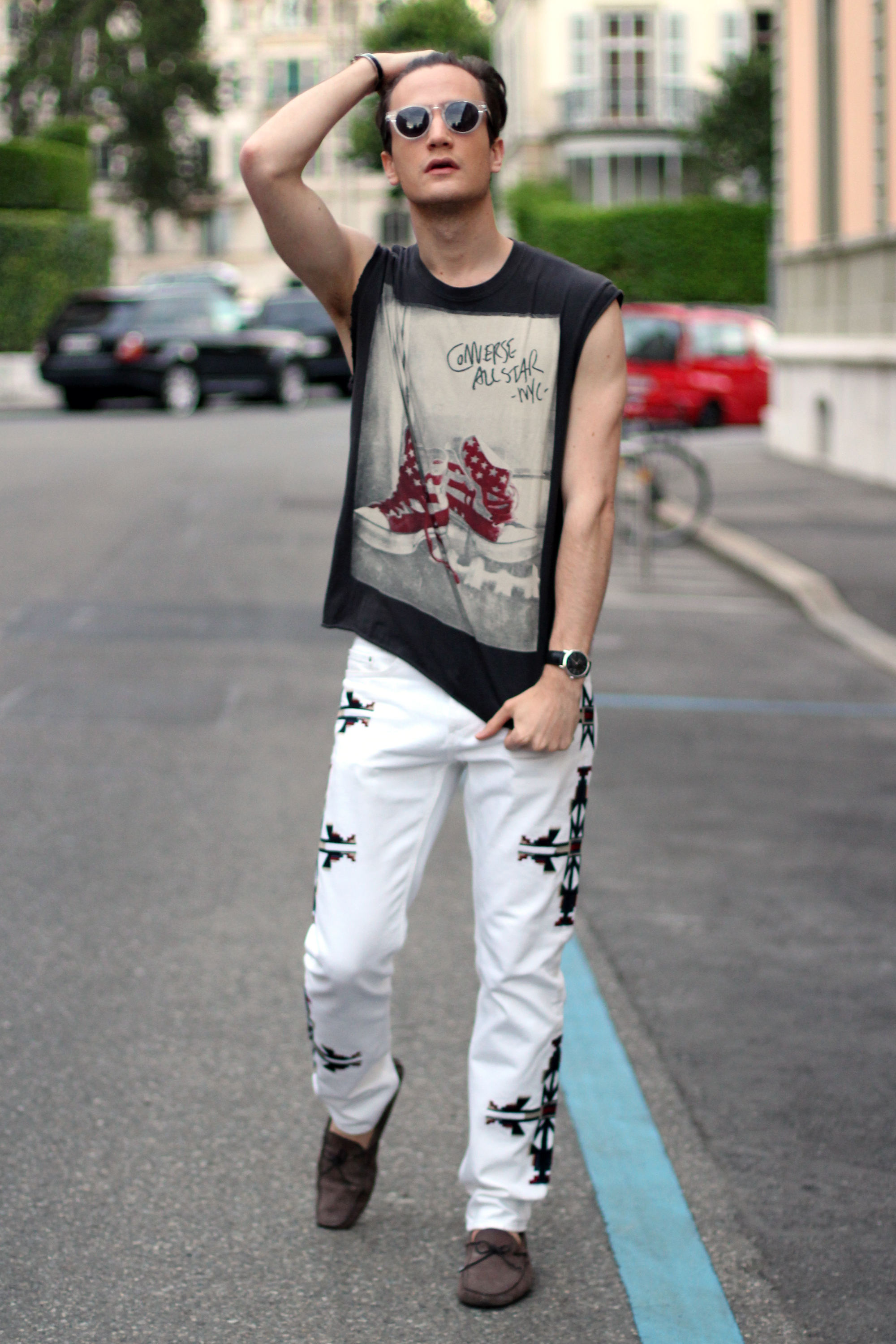 I wanted to keep up with their “cool” attitude so I paired them with this simple Converse T shirt. I “customized” it a little but cutting the sleeves really short making it something between a t shirt and a tank top.