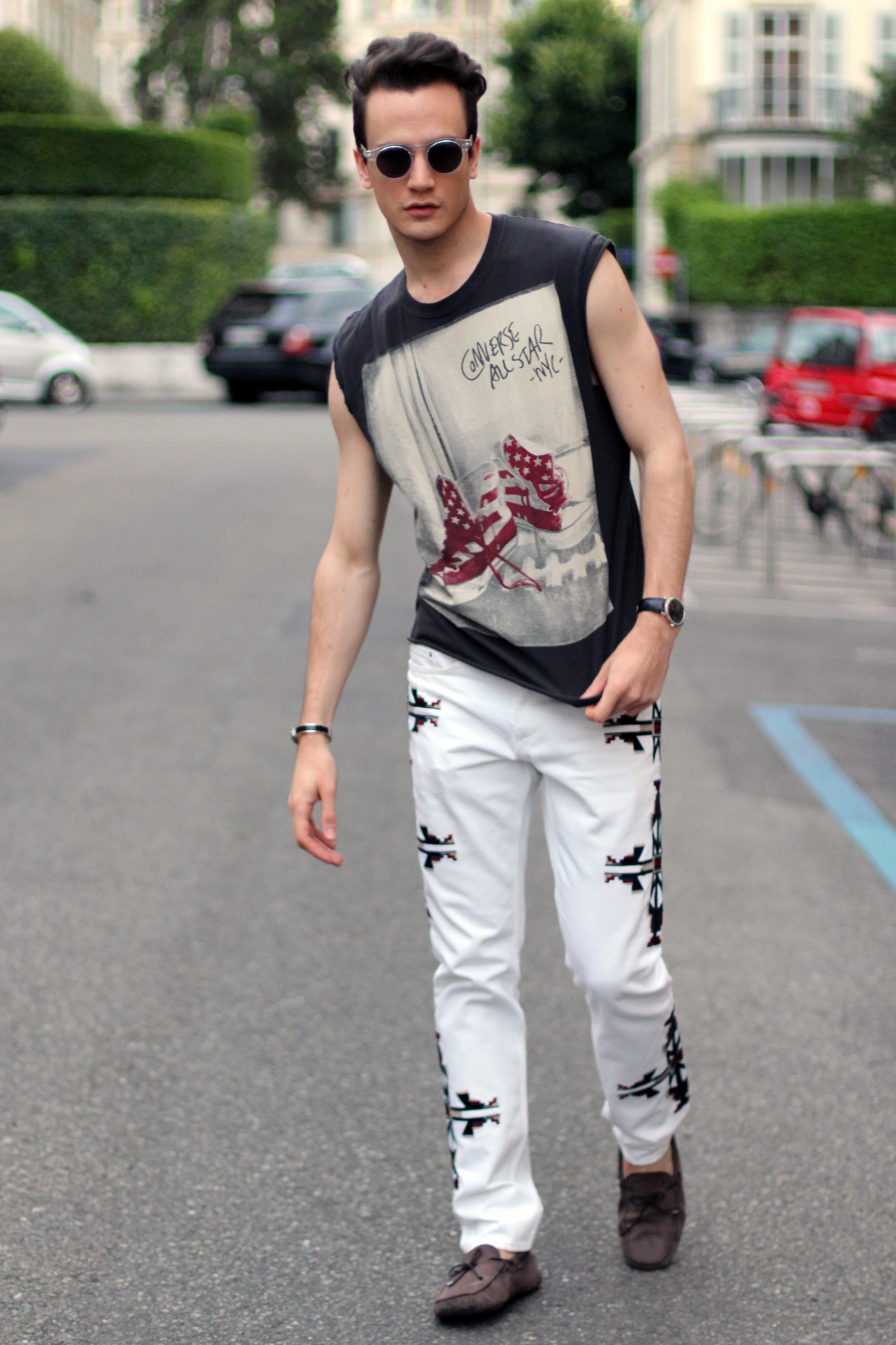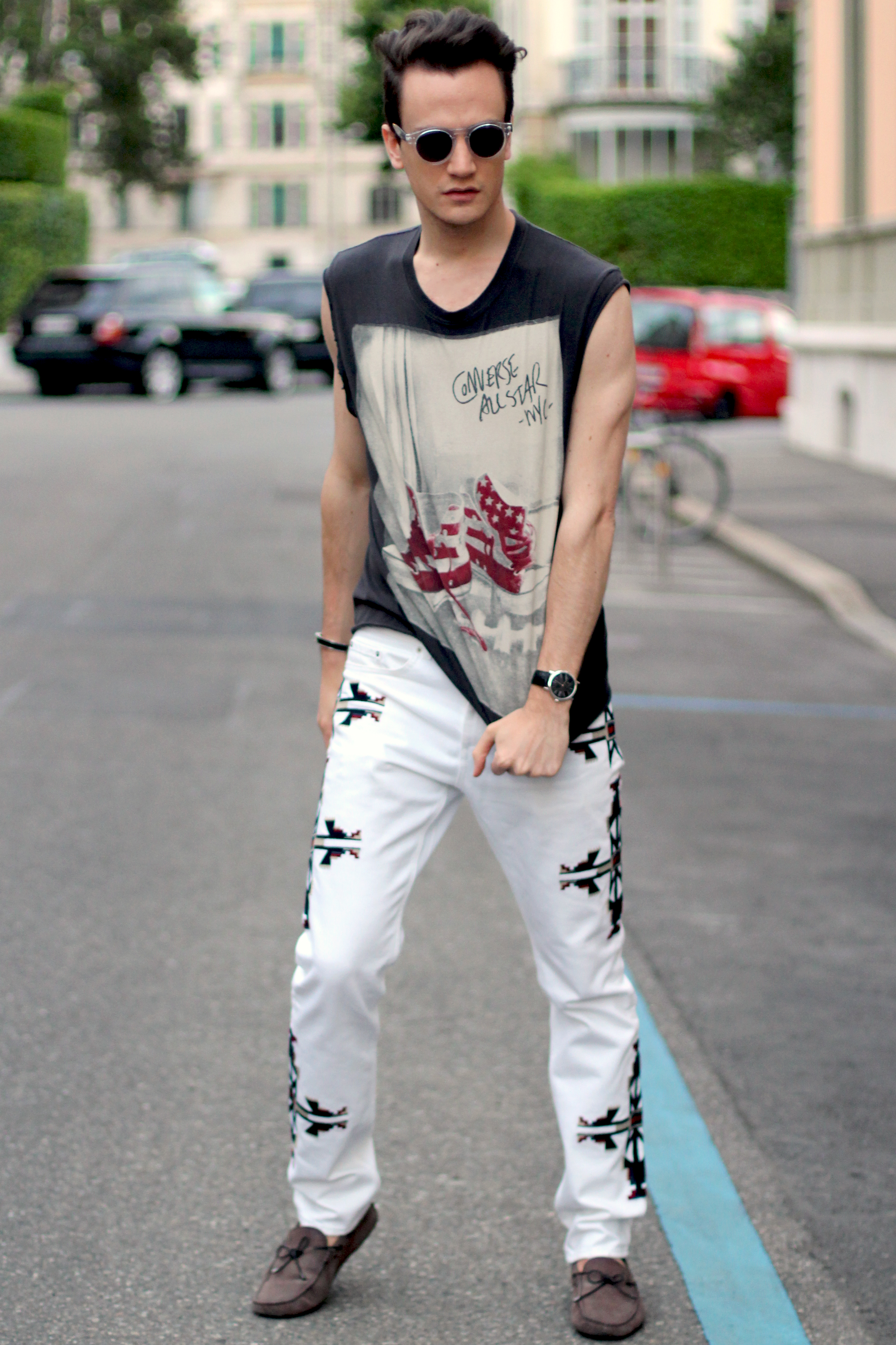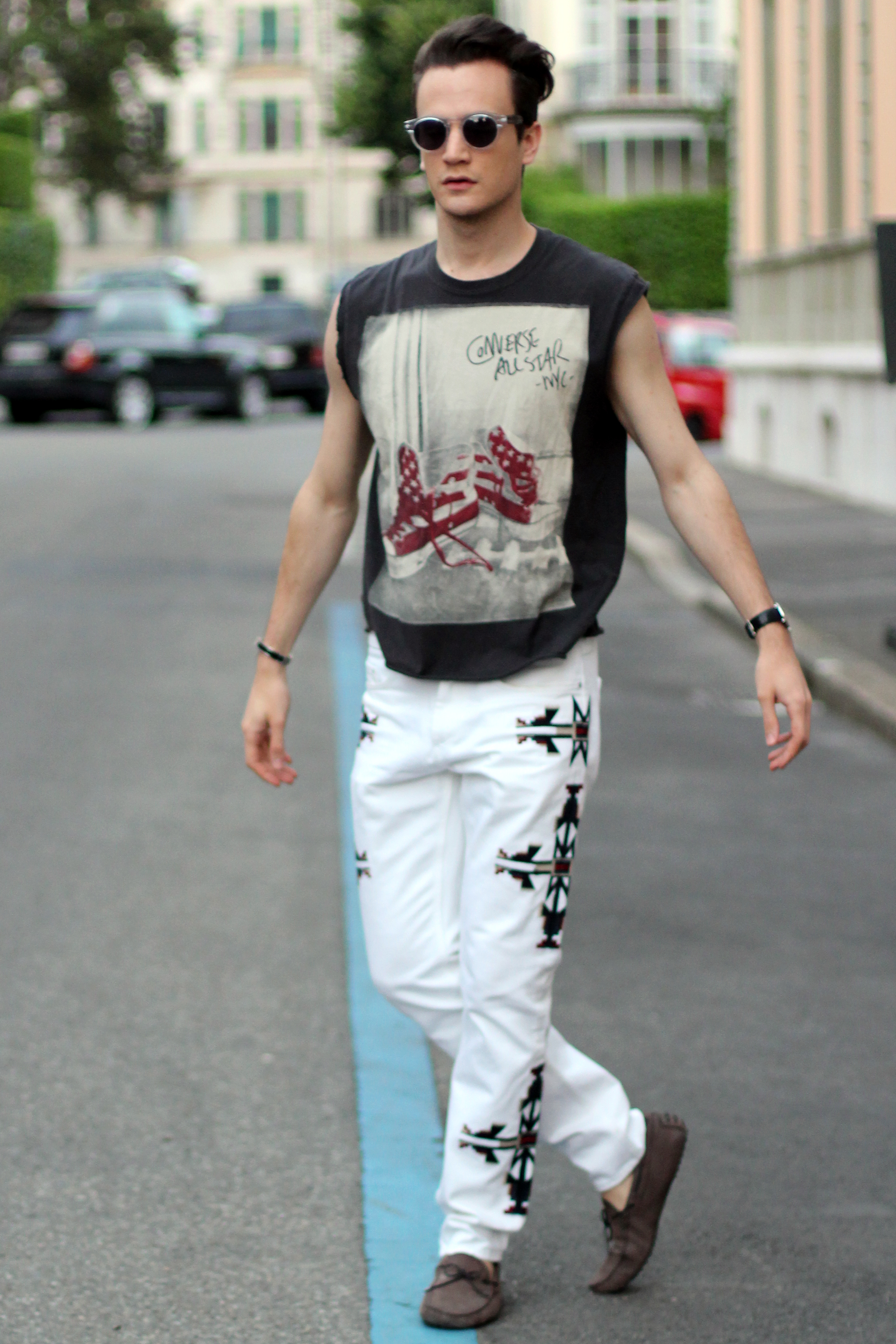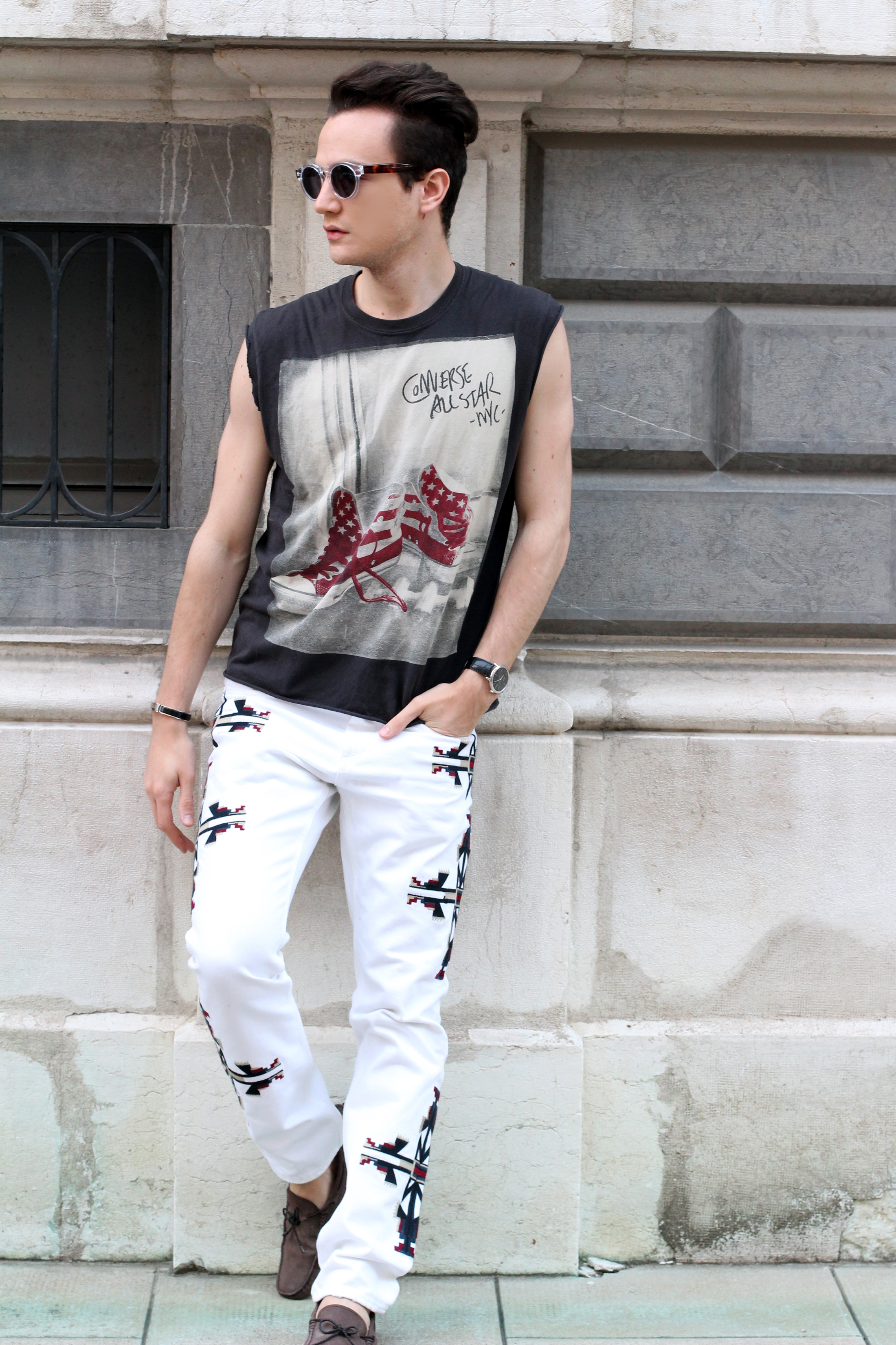 I wanted to keep up with their “cool” attitude so I paired them with this simple Converse T shirt. I “customized” it a little but cutting the sleeves really short making it something between a t shirt and a tank top.