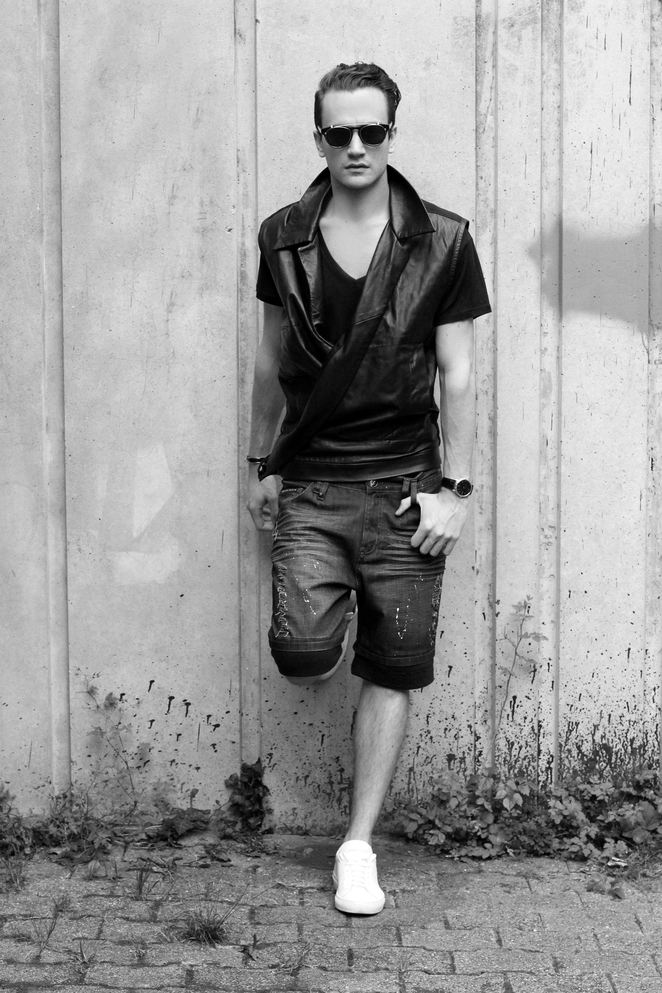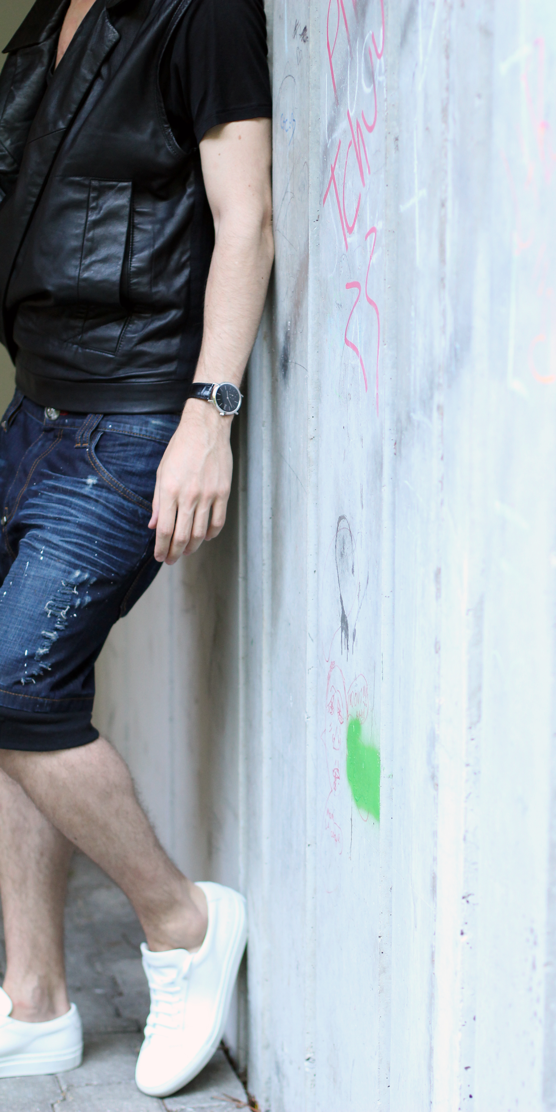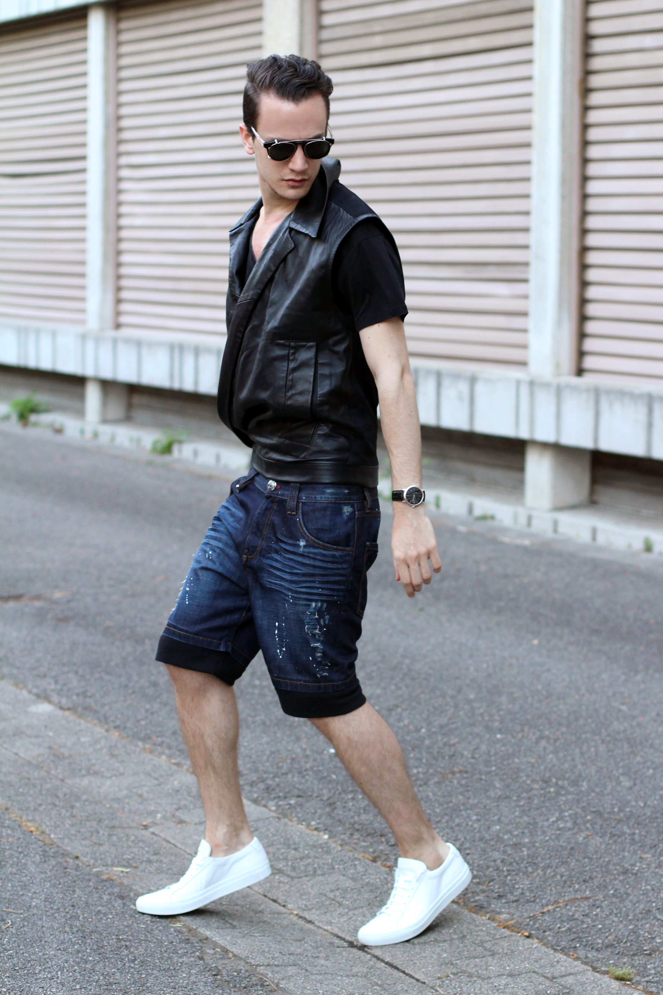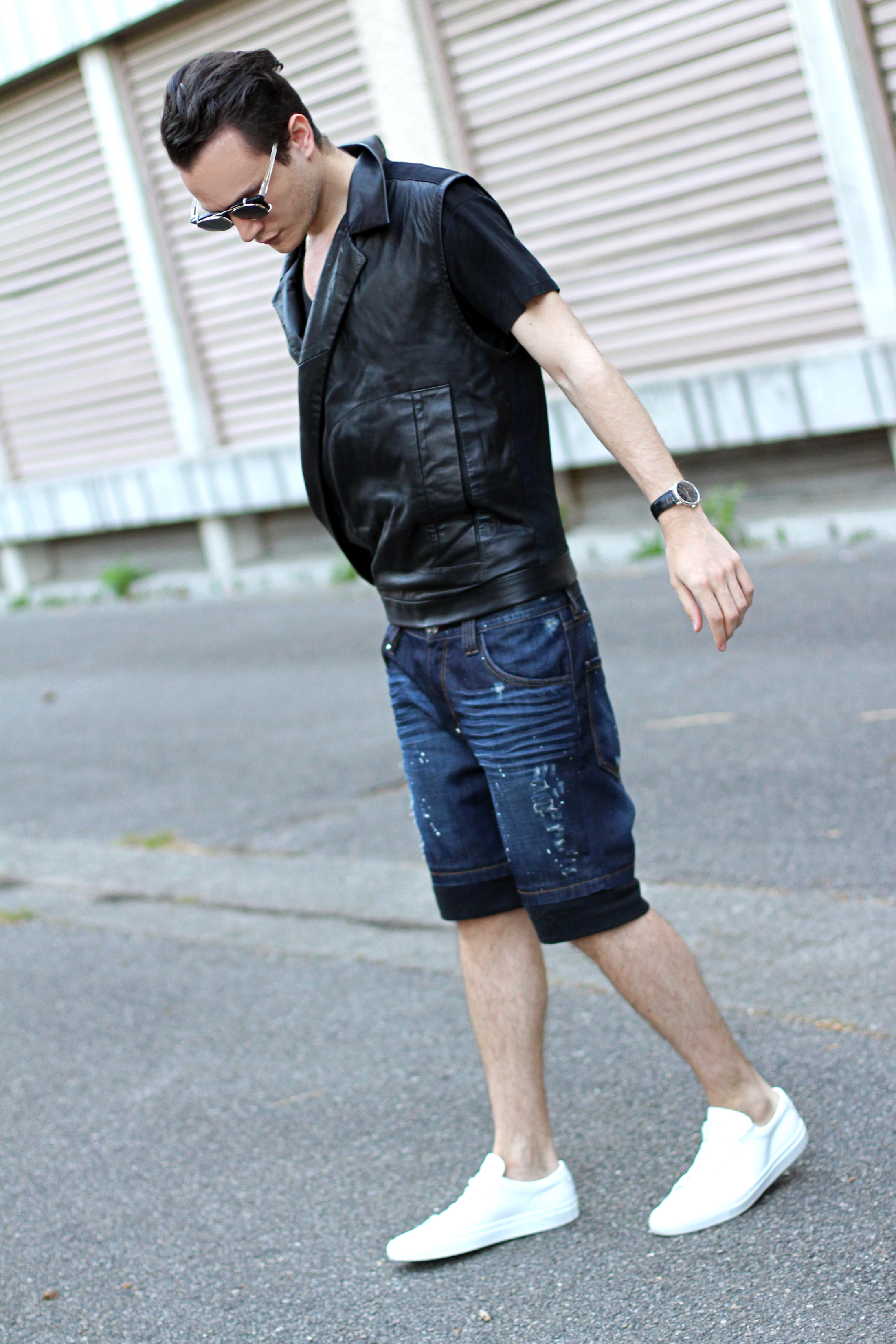 Back today with an edgier look styled around two very interesting pieces: denim shorts and a leather vest.