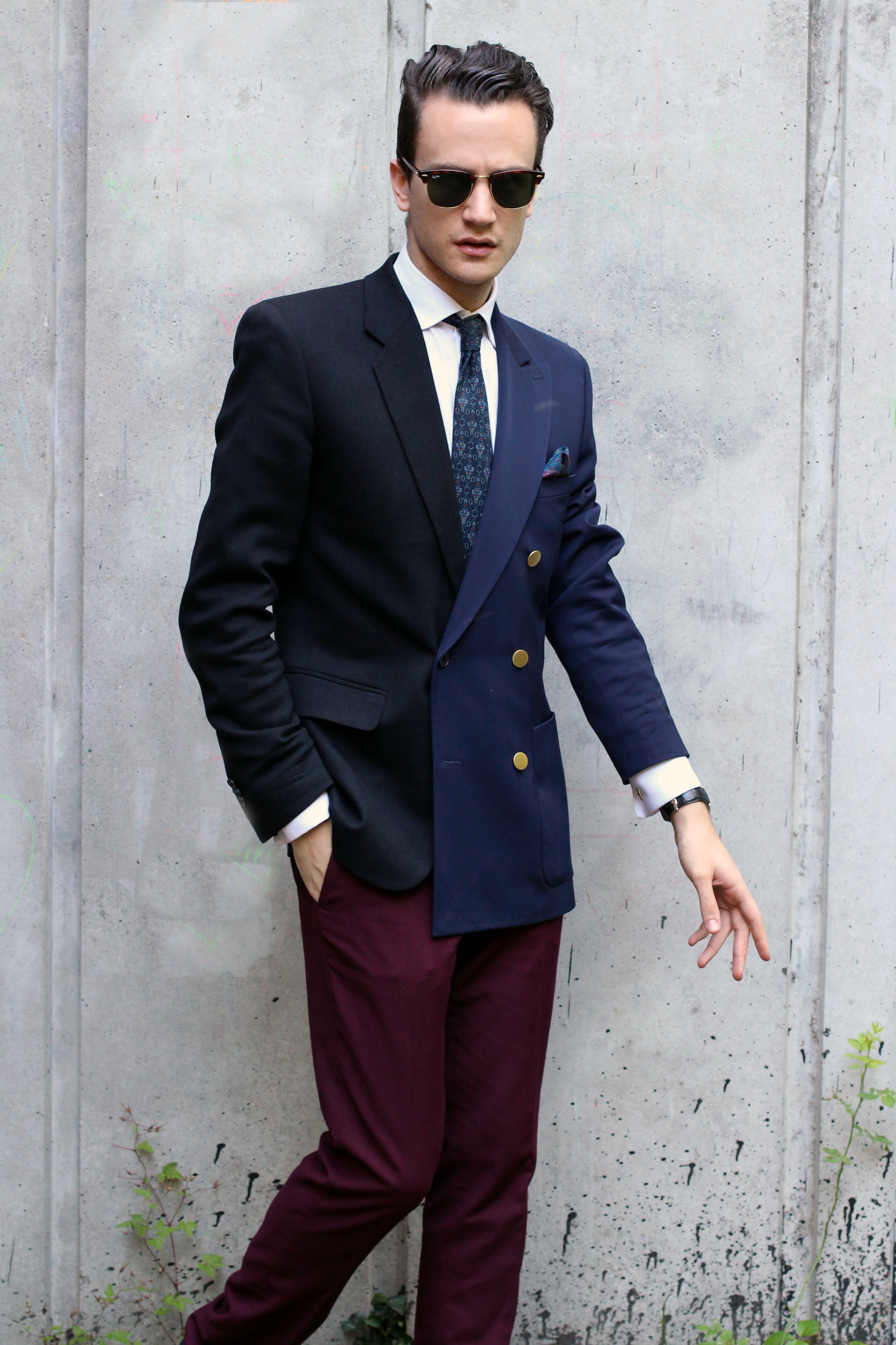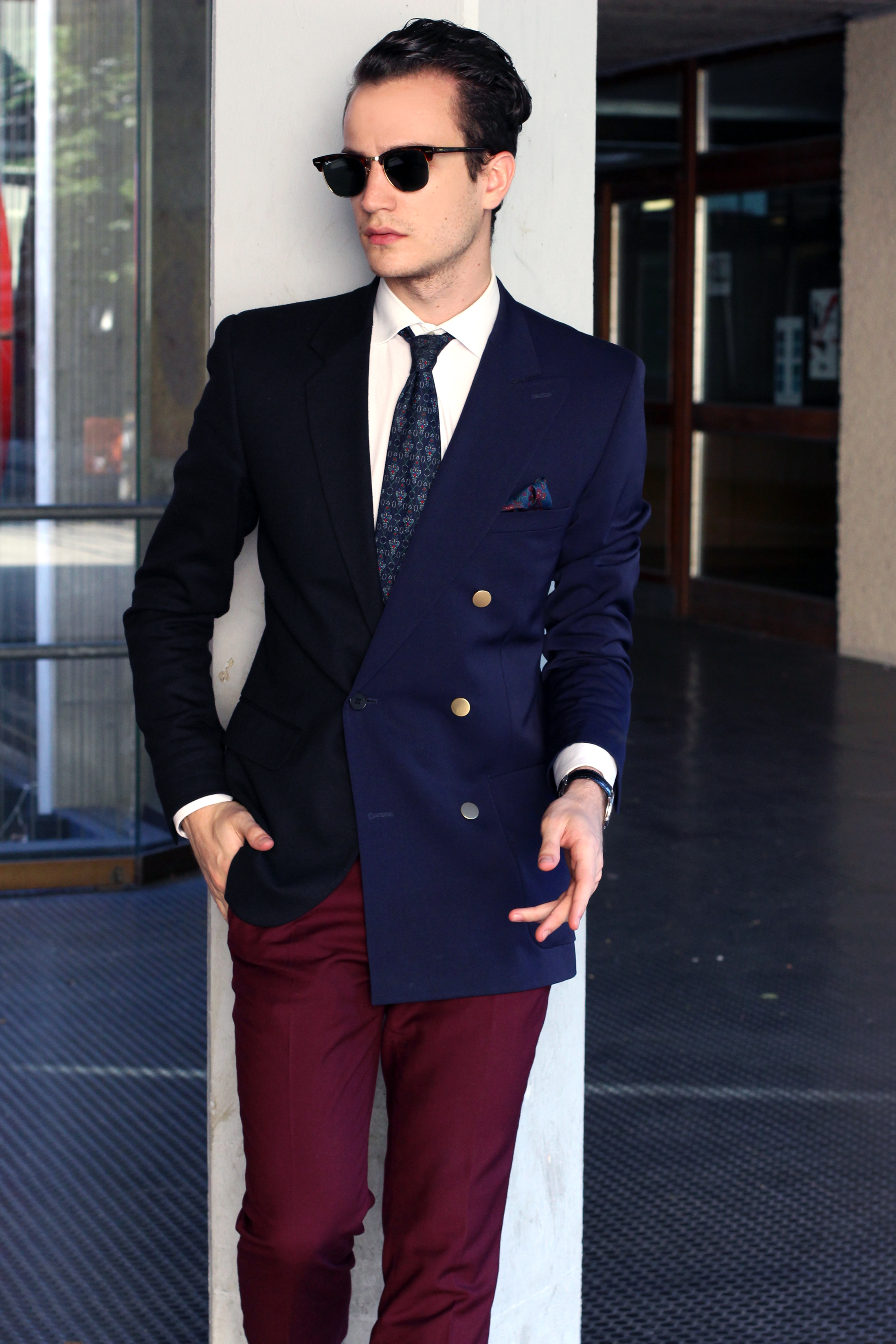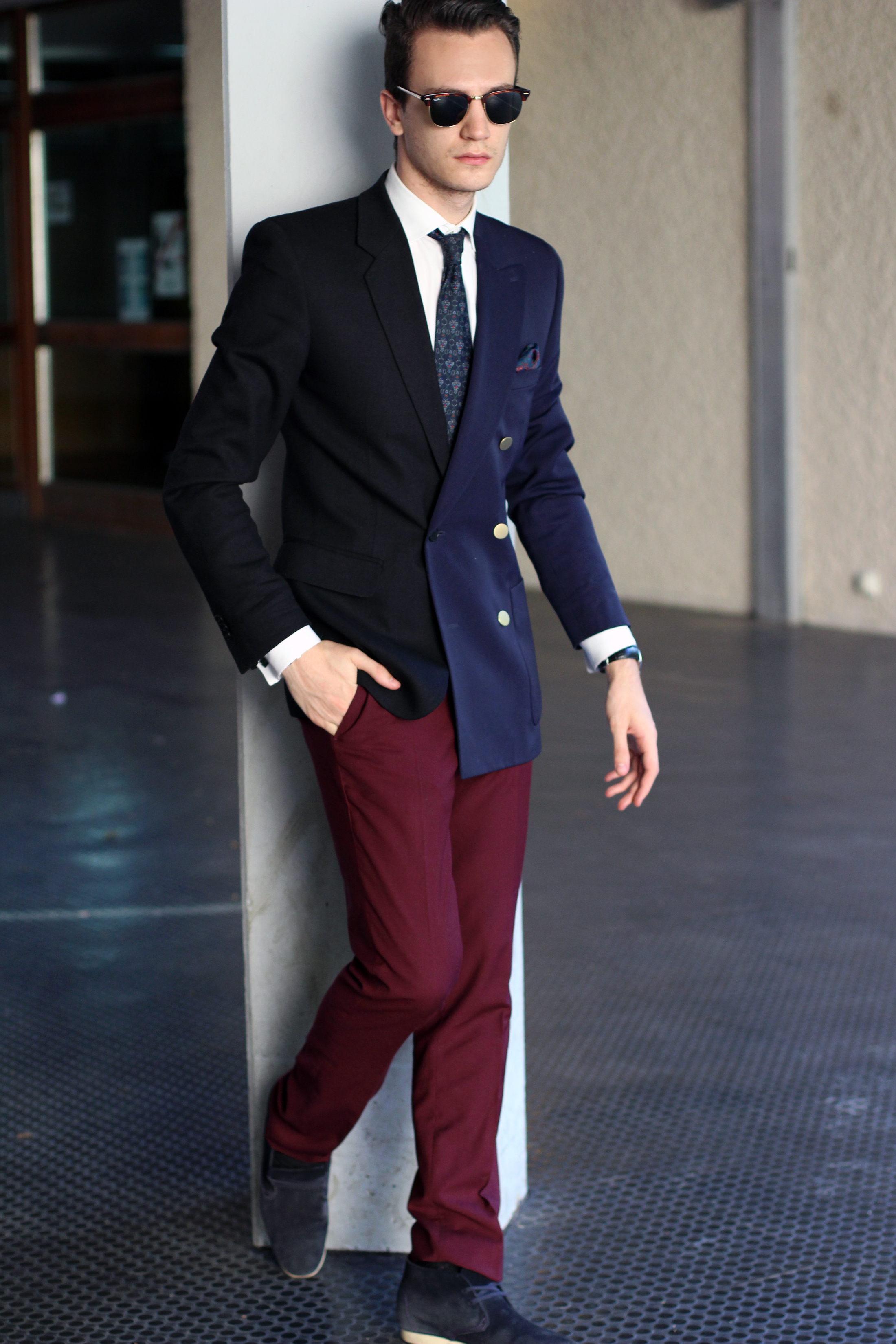Burgundy pants. Which jacket shall I wear with them. Black? Navy blue? Both?