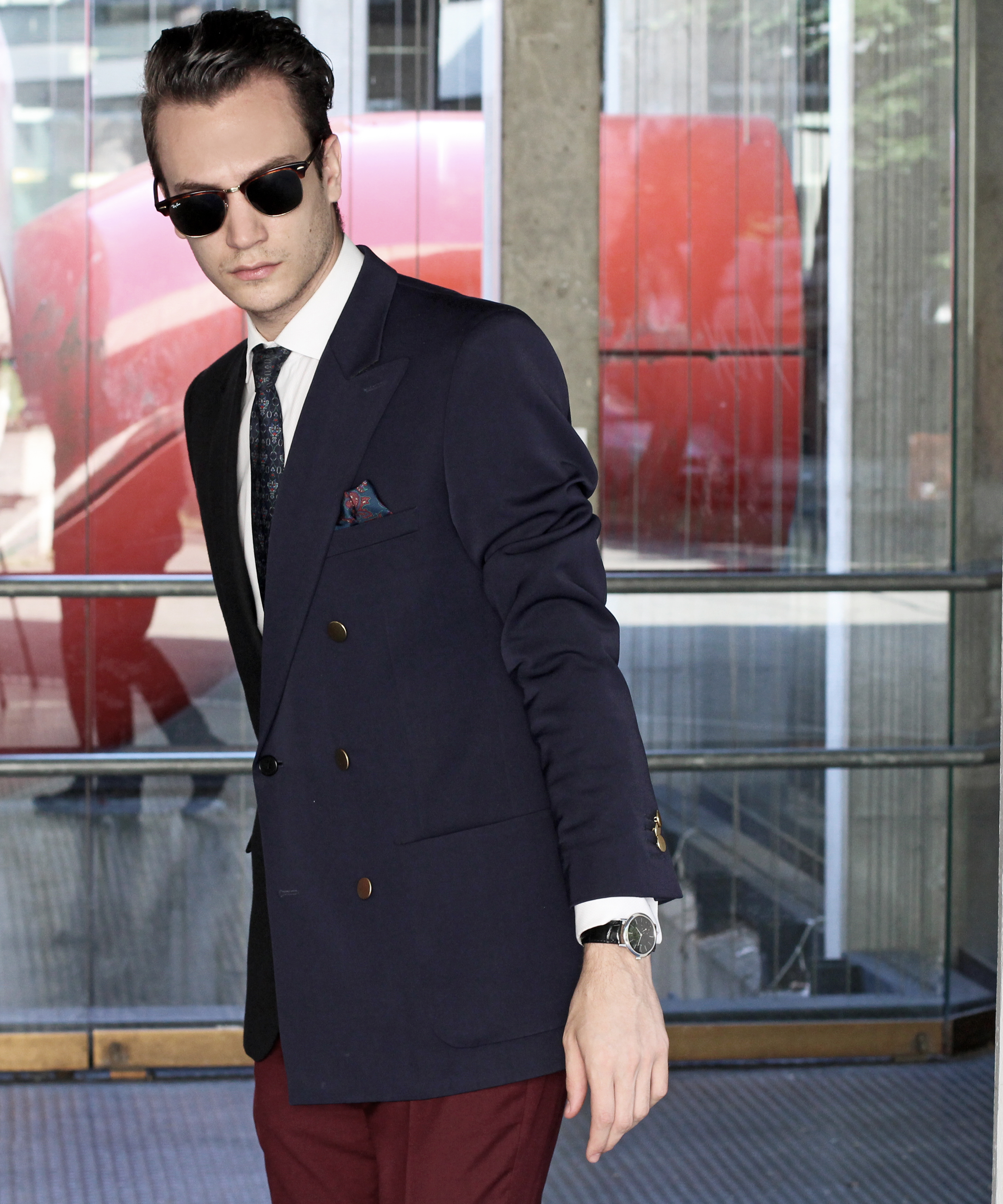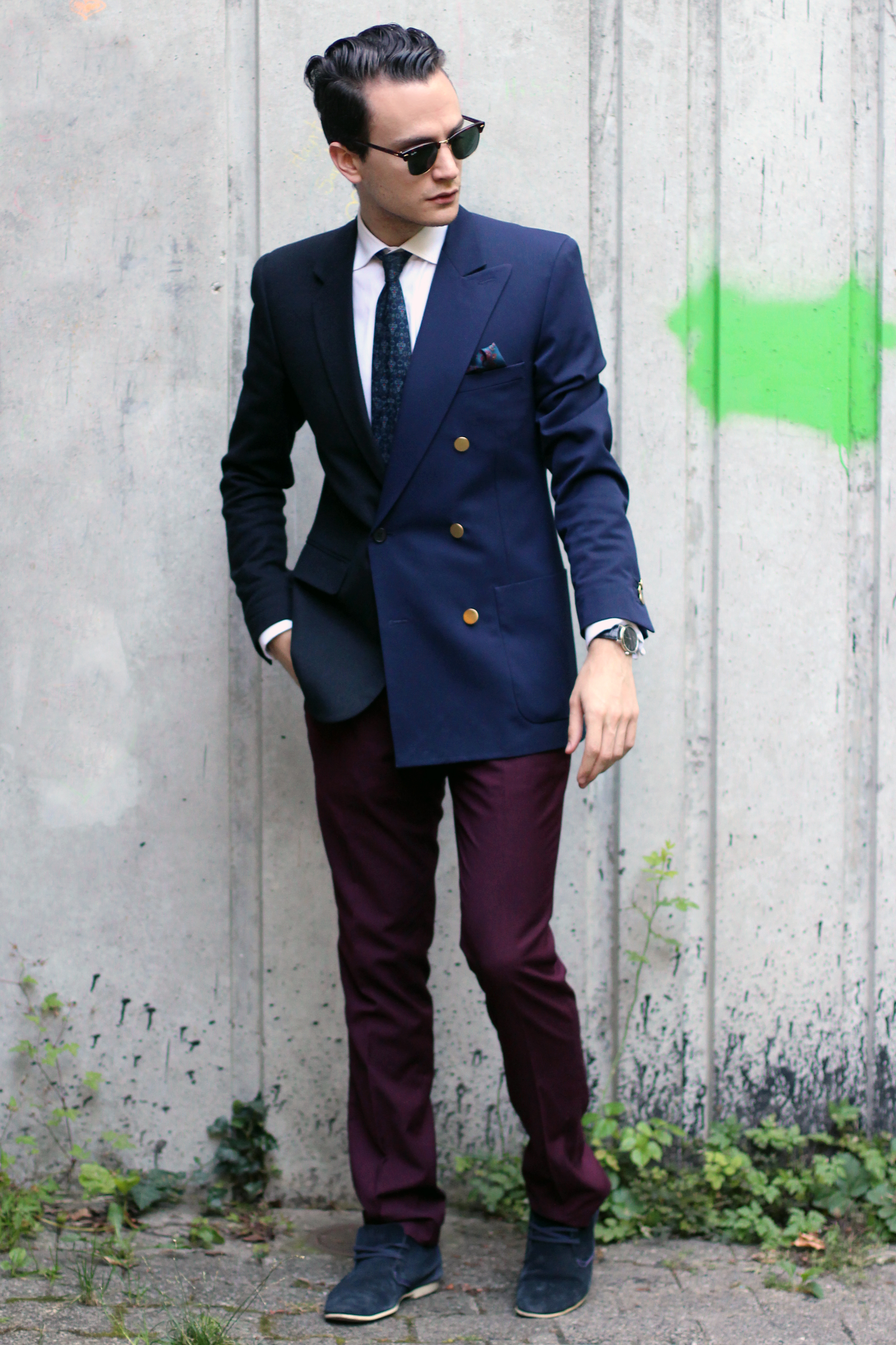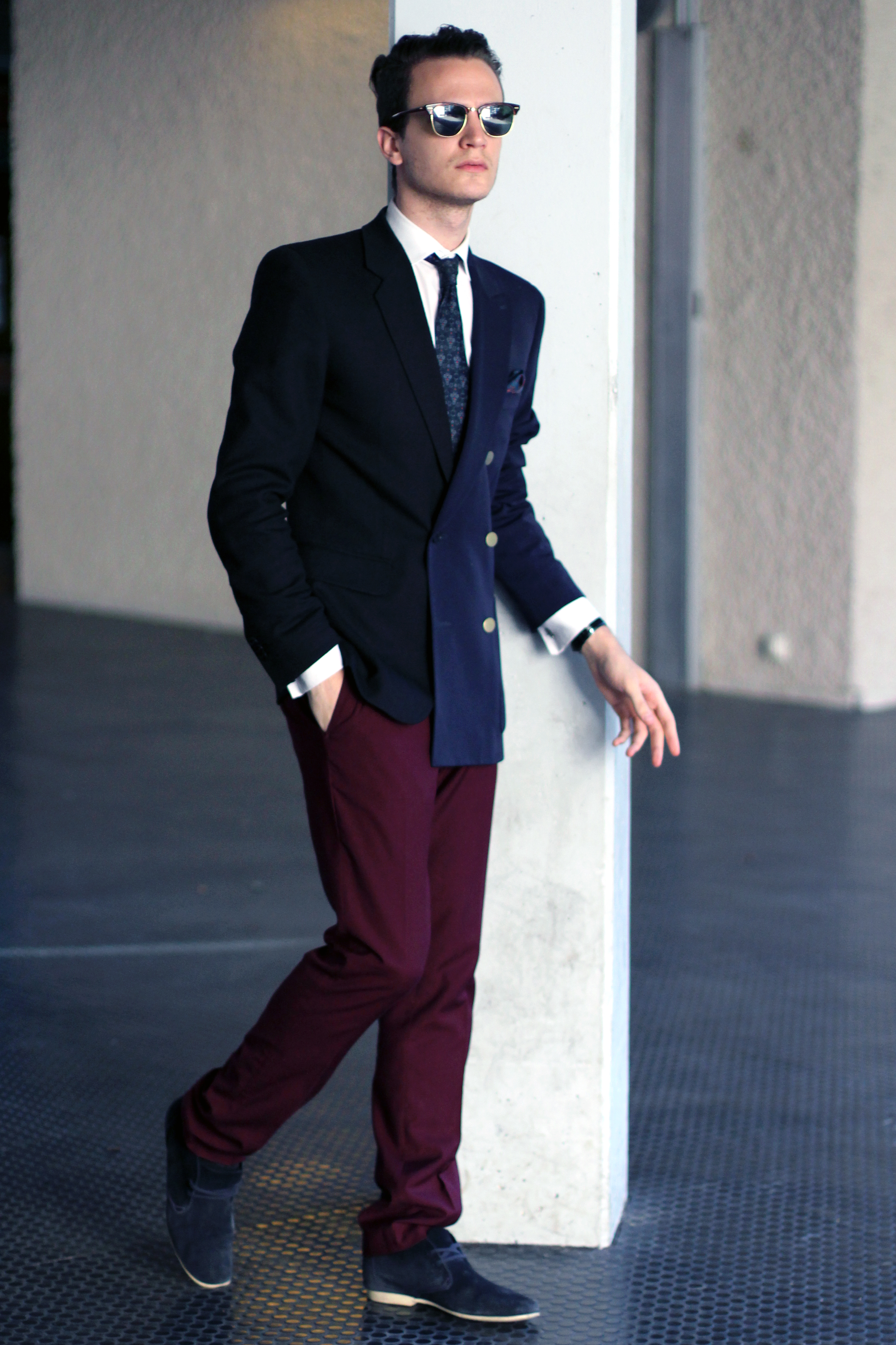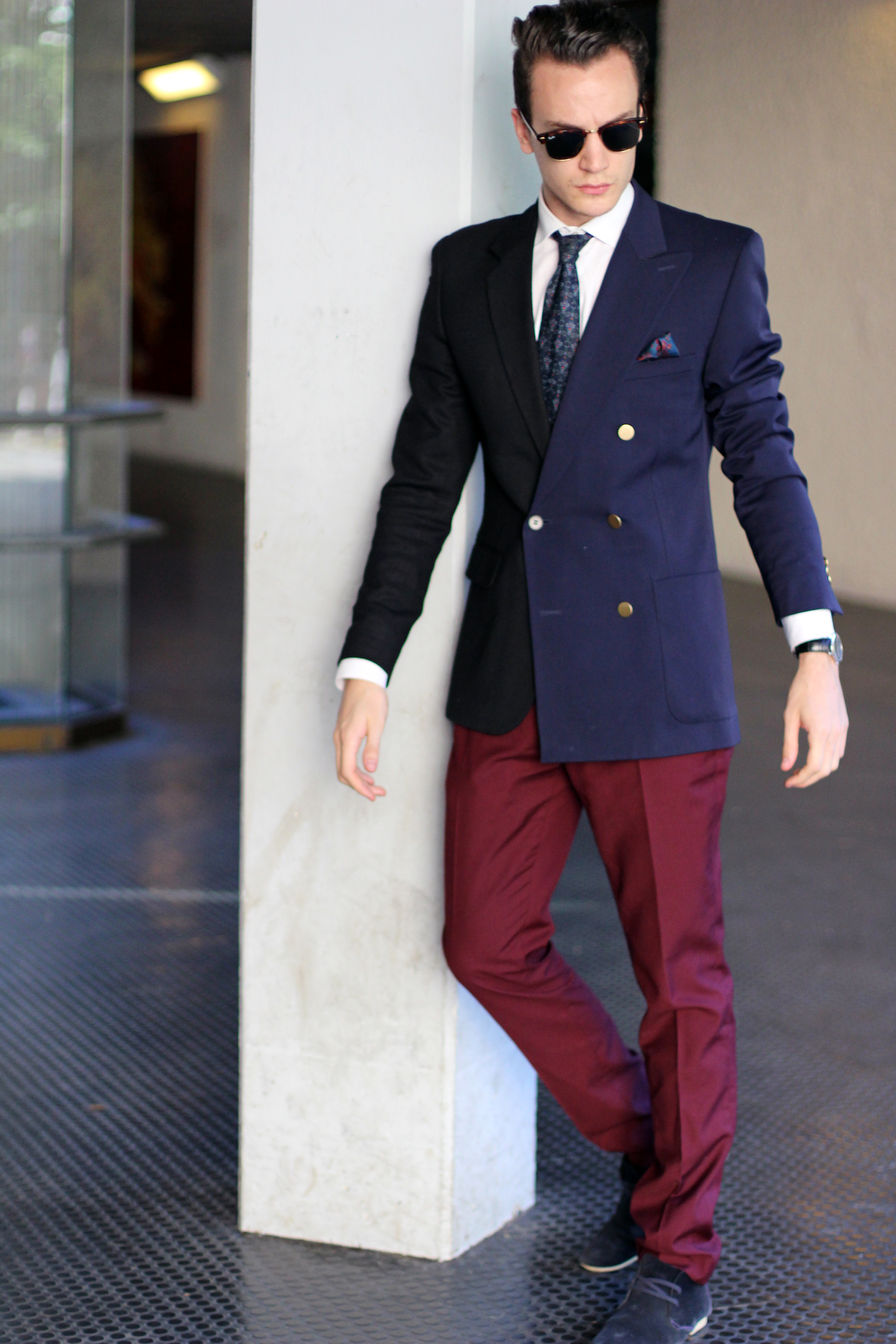 Burgundy pants. Which jacket shall I wear with them. Black? Navy blue? Both?