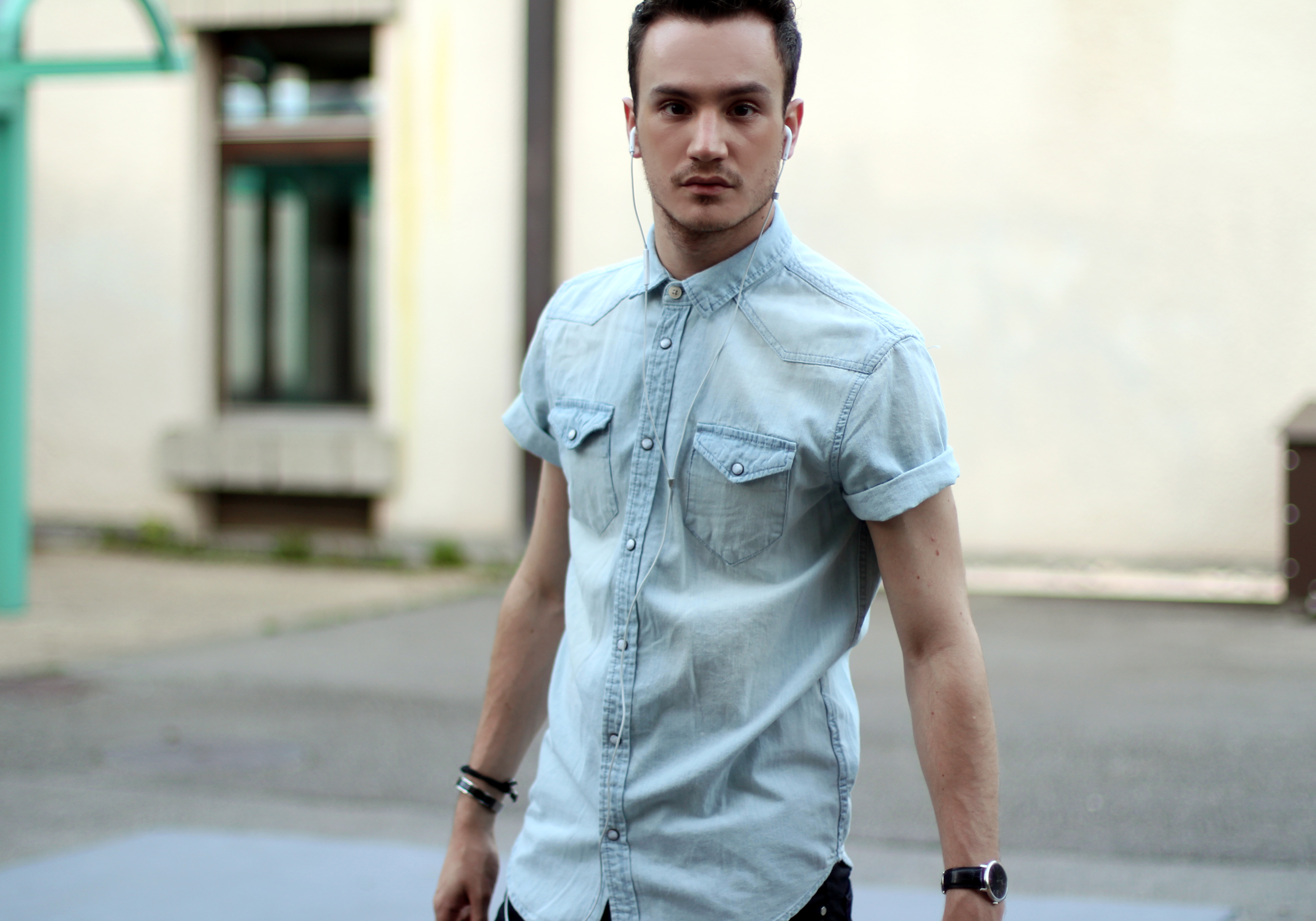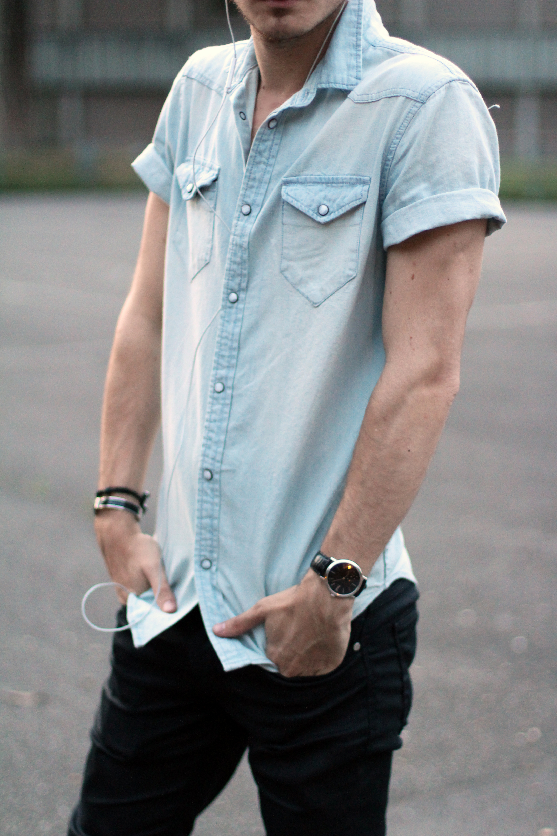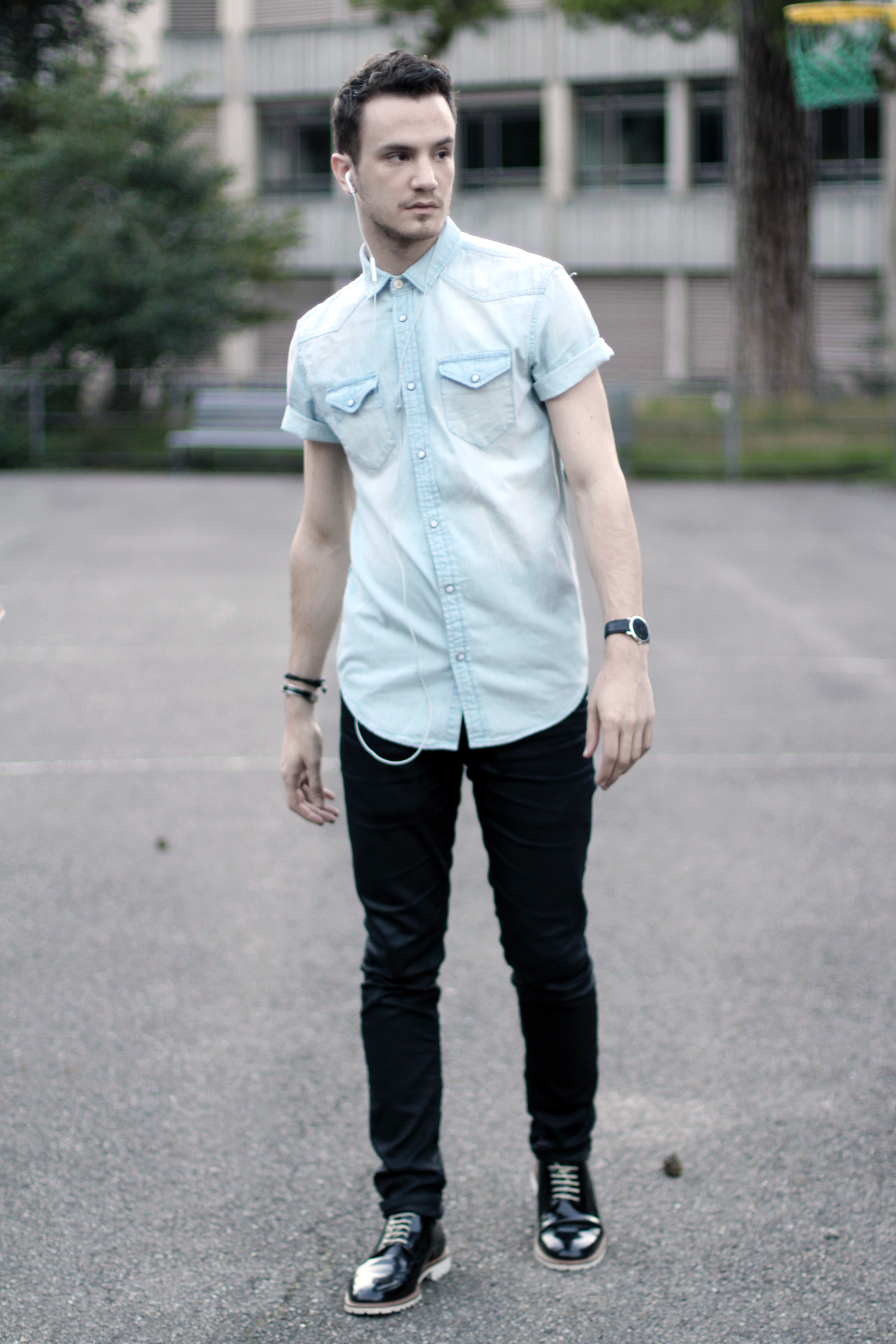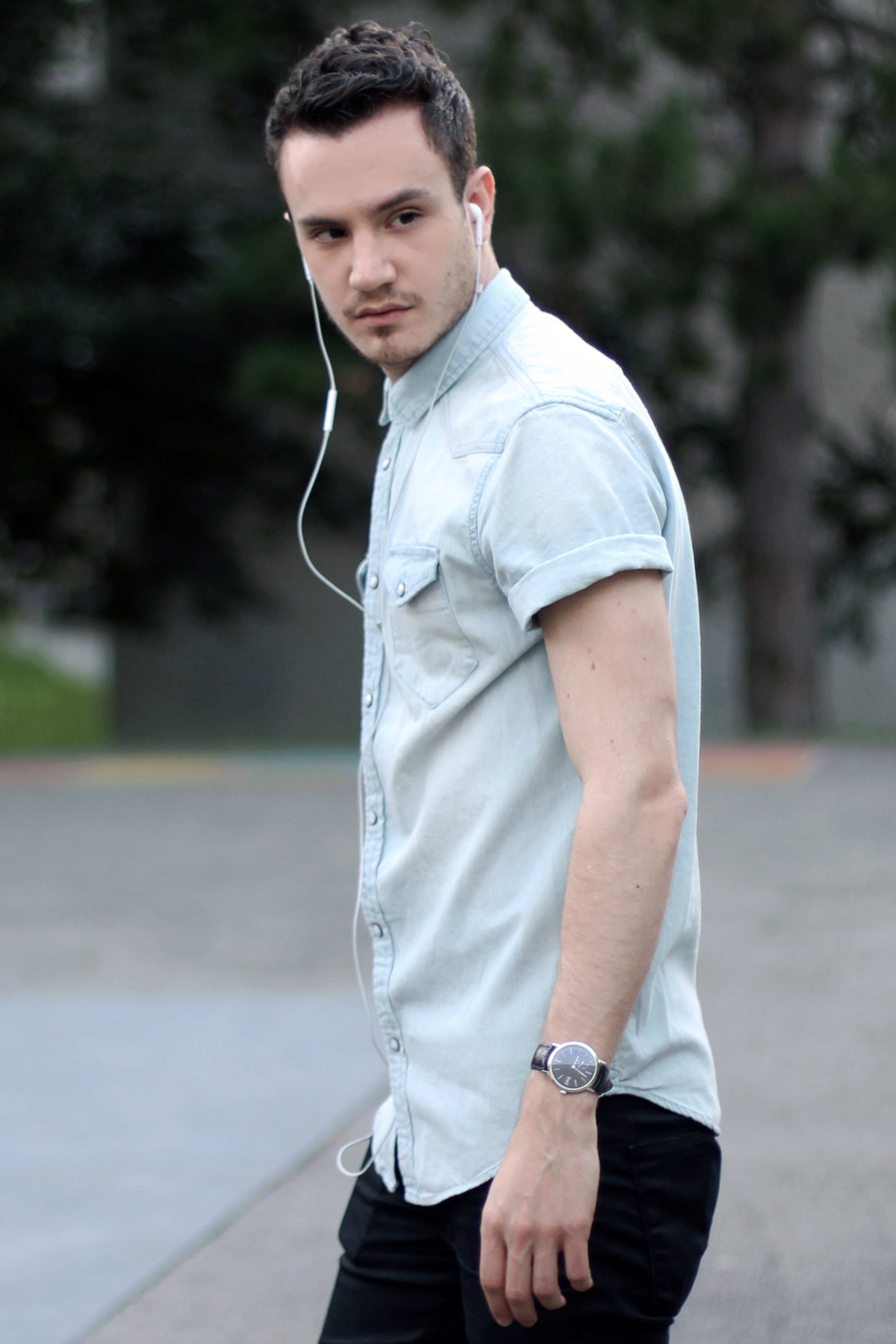 I found this very nice light denim shirt on sale at ZARA and thought it would be nice for a clean simple look. To make it look more fitted, I simply rolled up the sleeves.