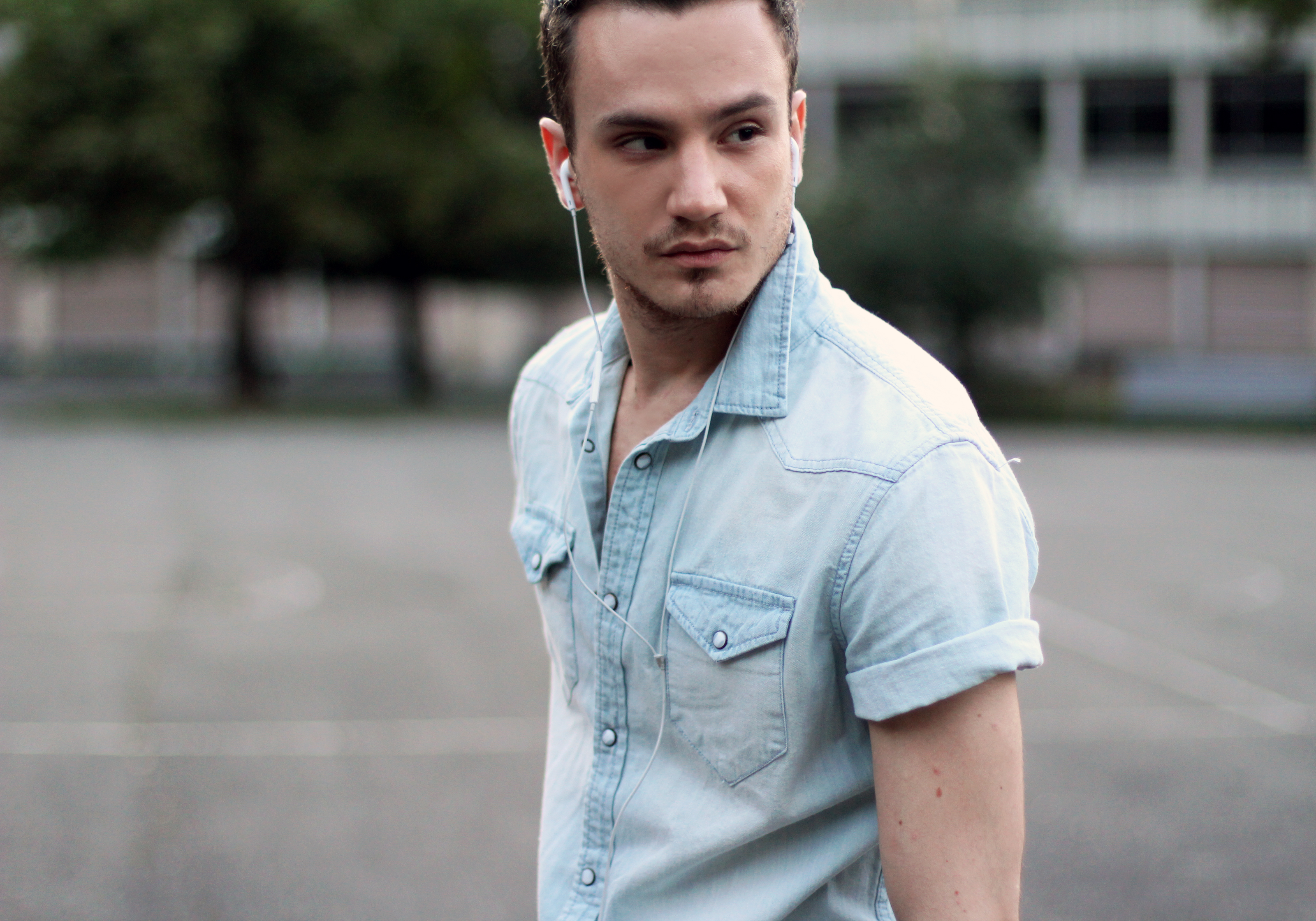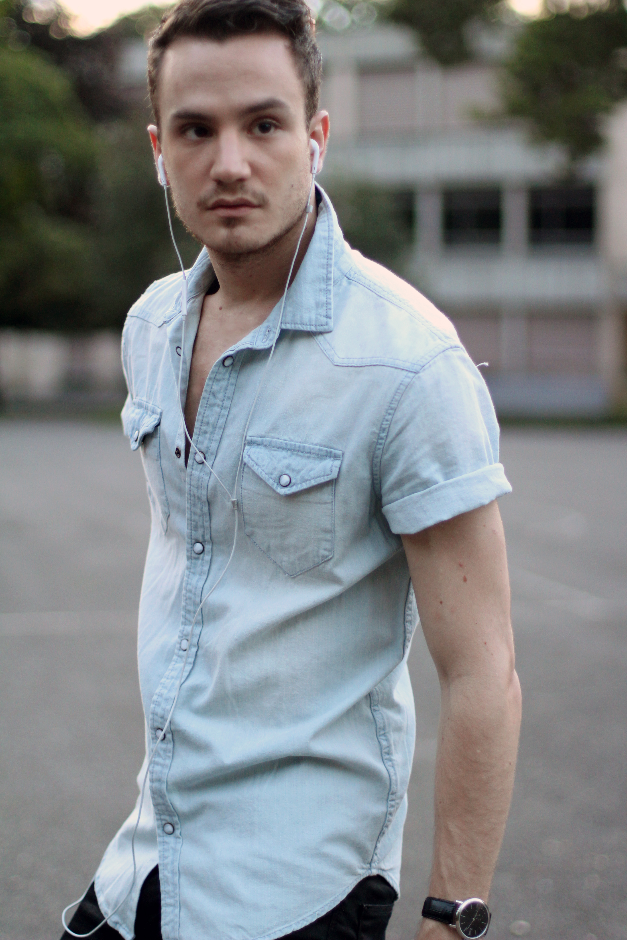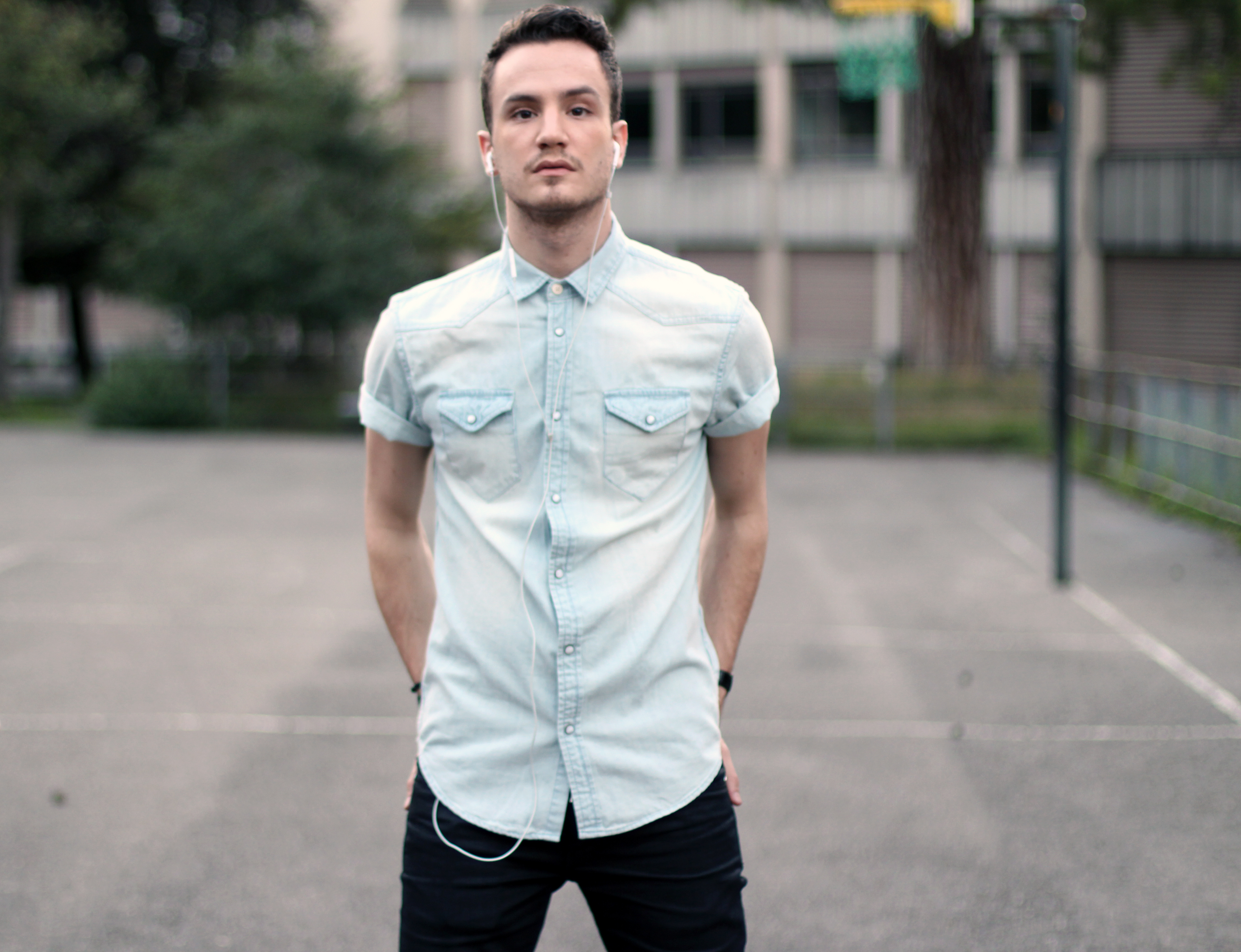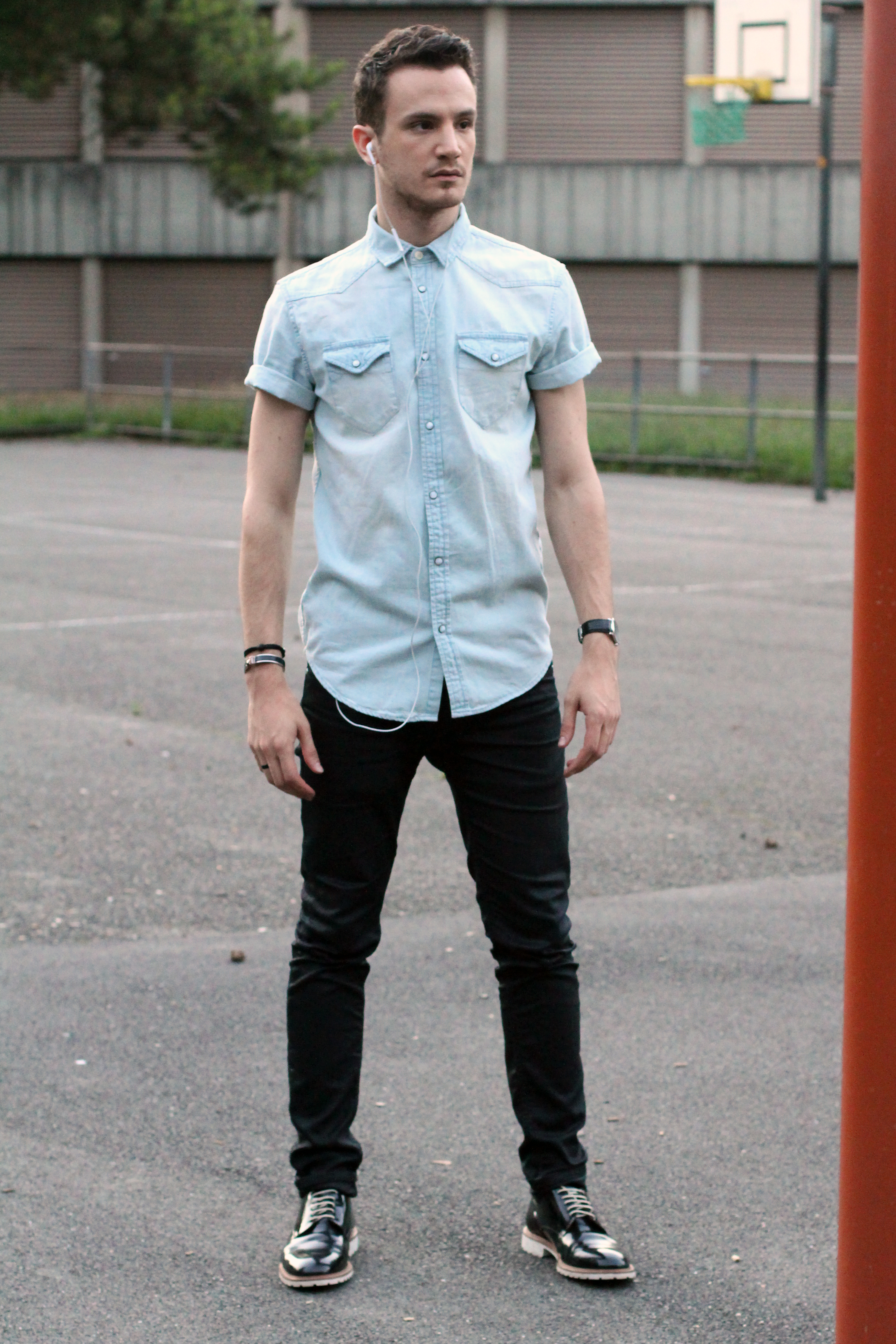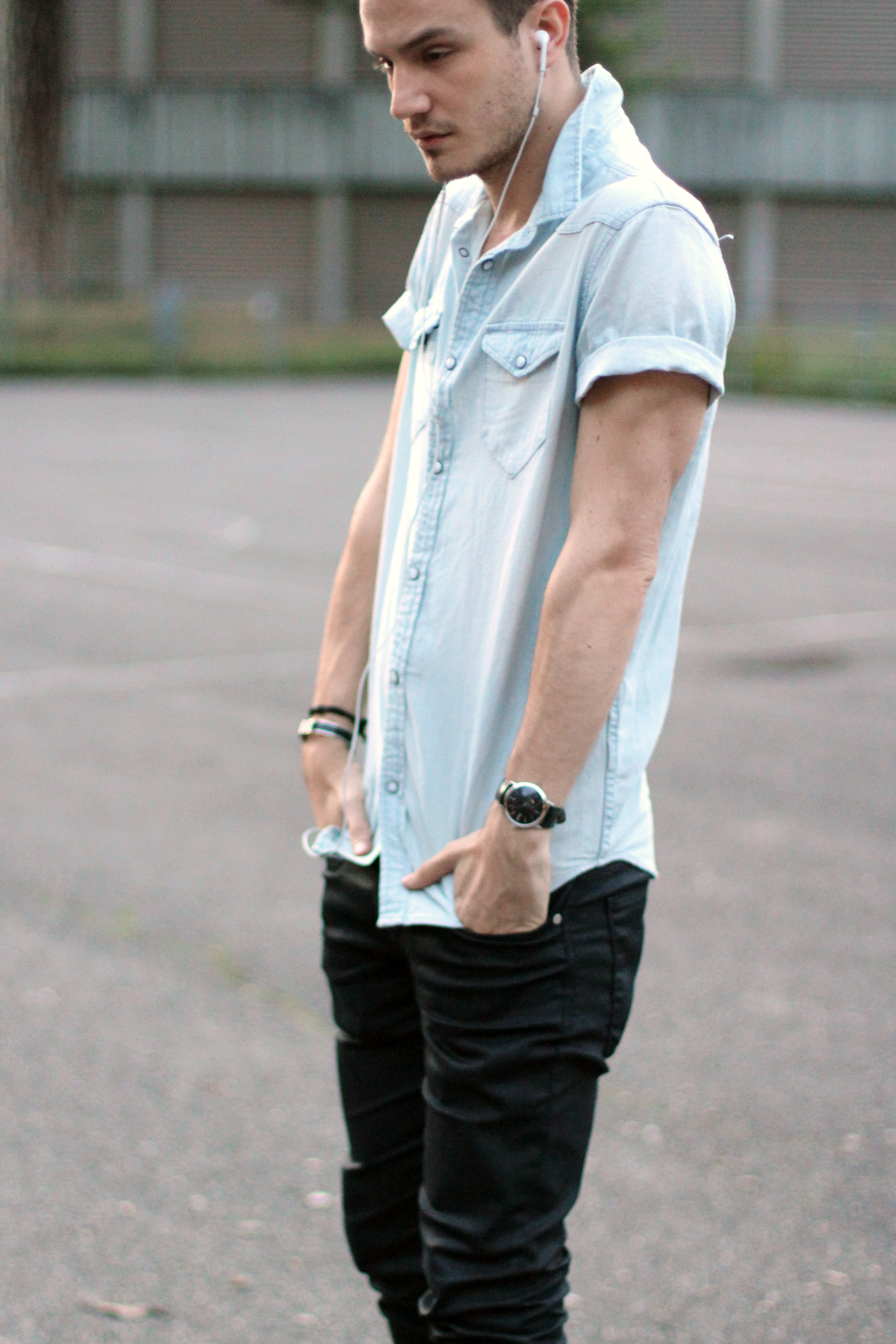 I found this very nice light denim shirt on sale at ZARA and thought it would be nice for a clean simple look. To make it look more fitted, I simply rolled up the sleeves.
