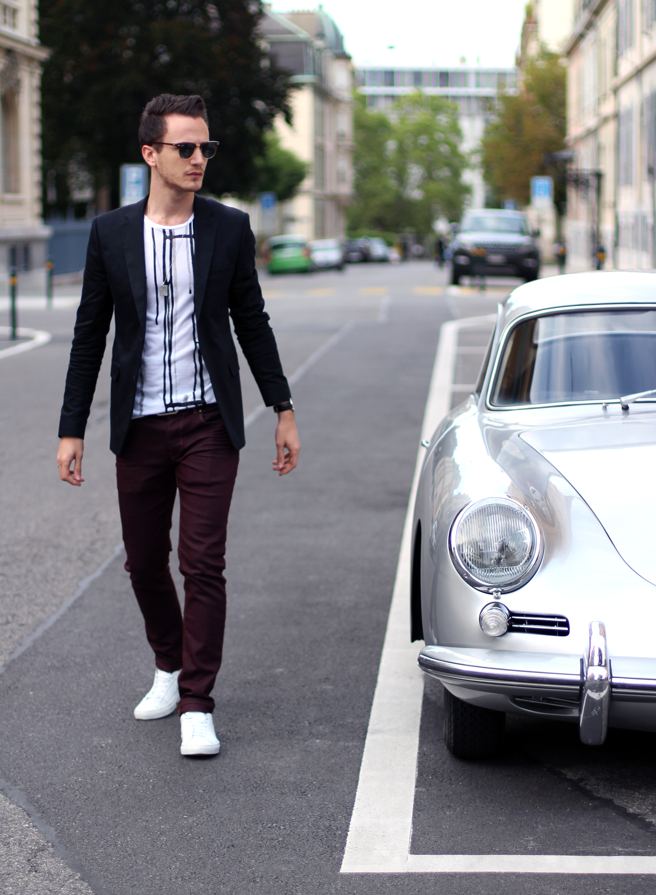 Here is the modern urban look, shot next to a cool vintage Porsche !