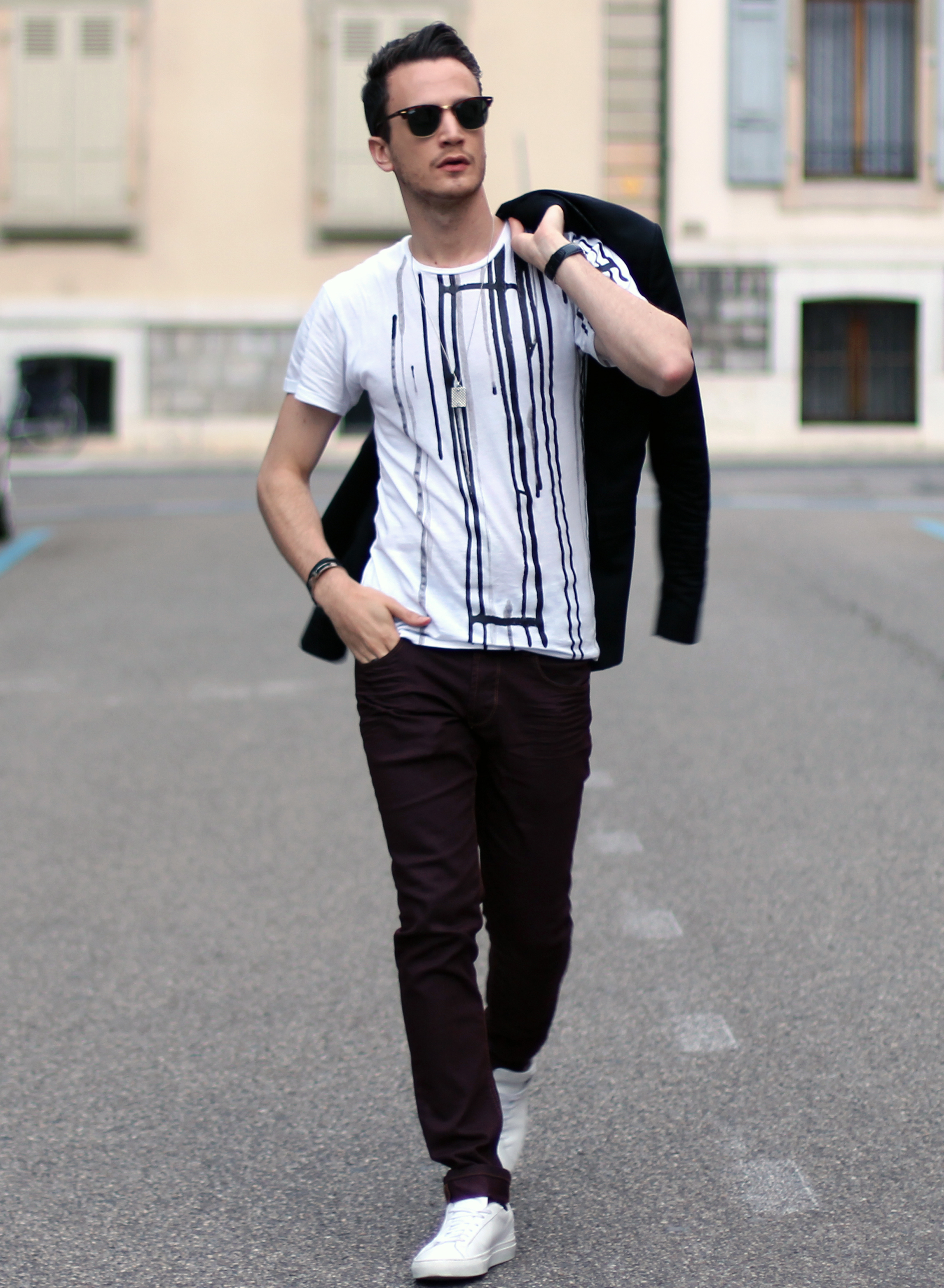– this white shirt with what looks like paint stripes. I immediately loved it. I’m pretty sure it’s gonna be a hit so go get it before everyone else is wearing it !