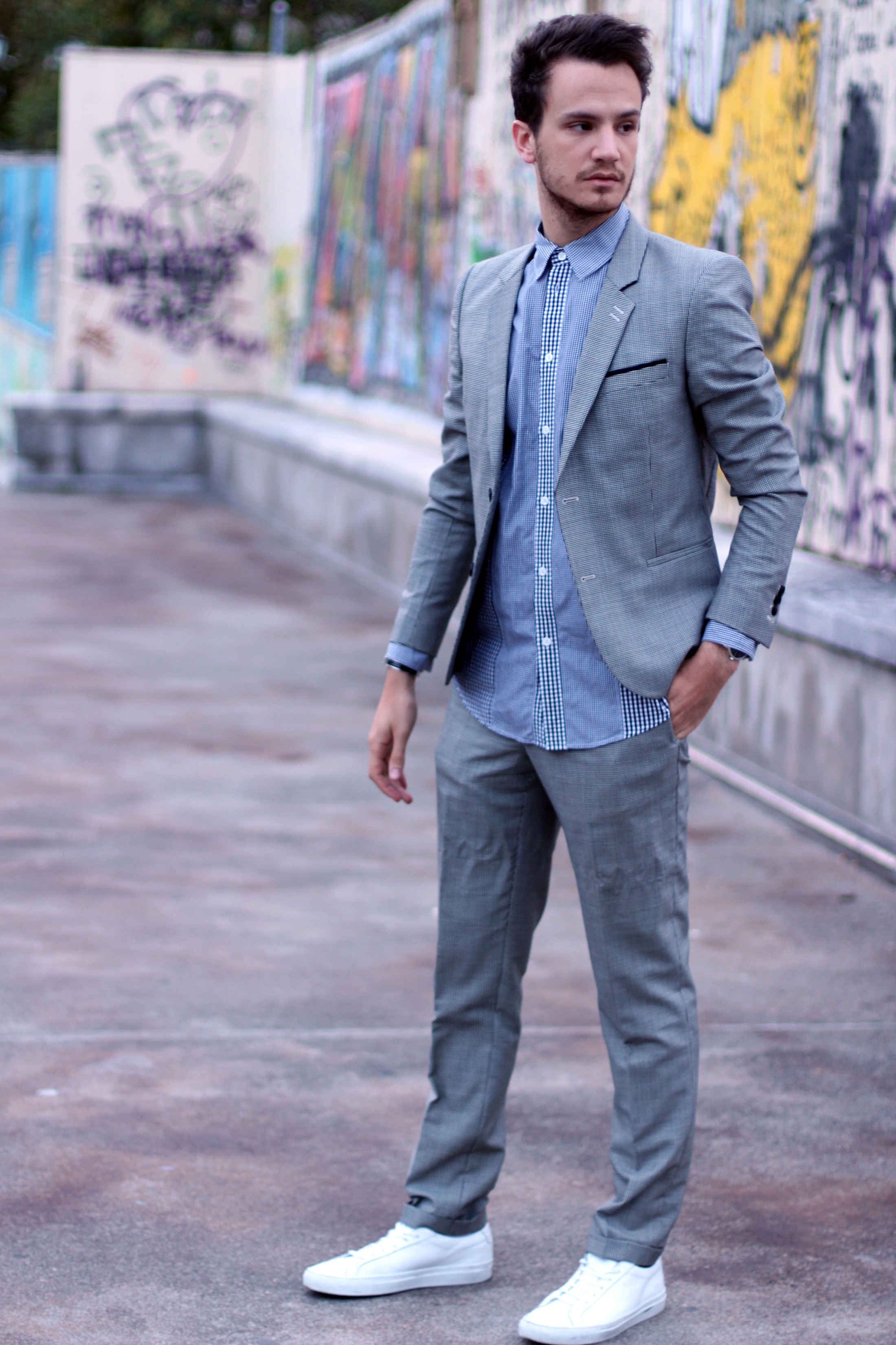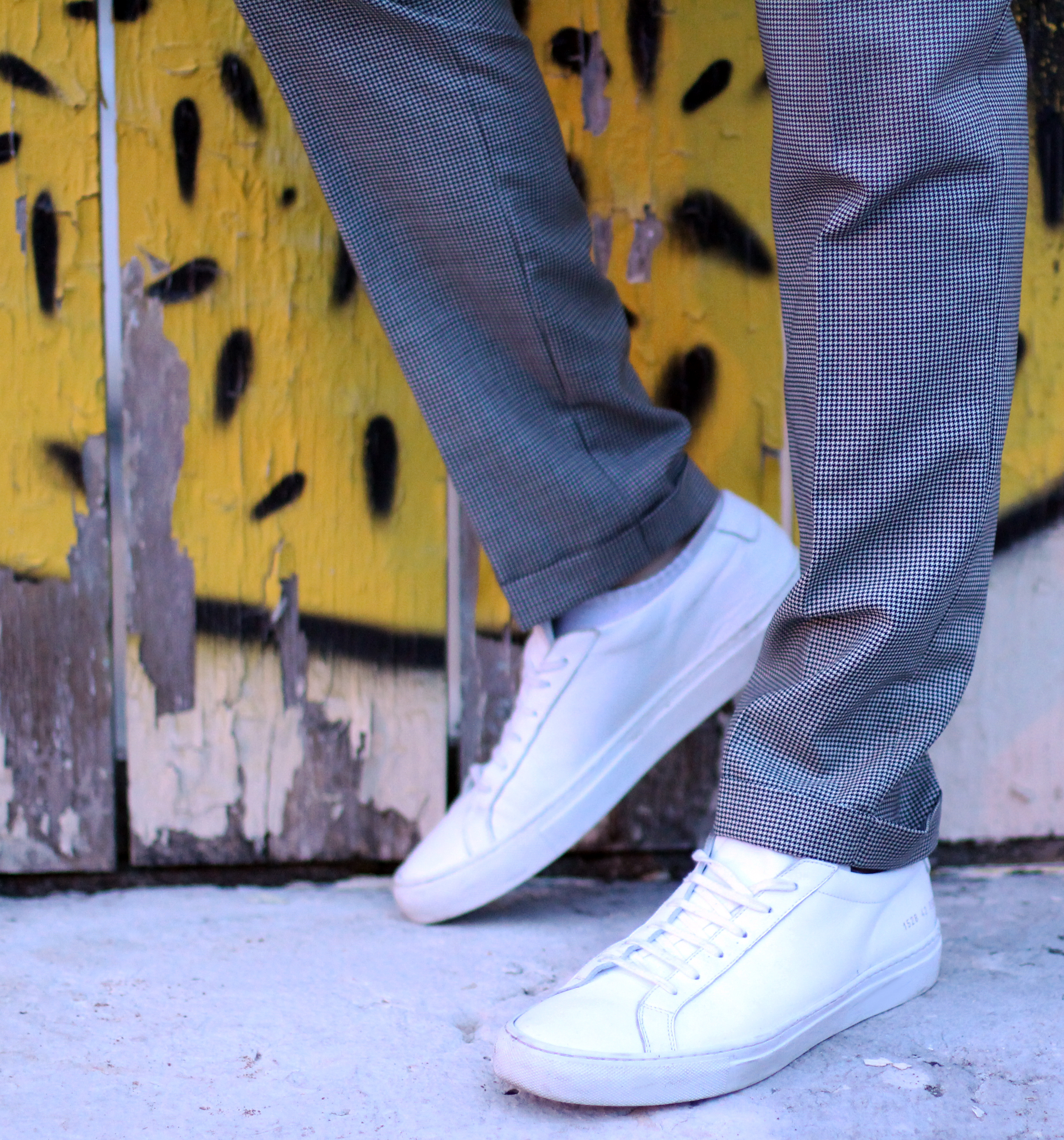 Therefore I decided to wear this The Kooples Micro Houndstooth suit (similar one here) that I wore for this look but this time in a more casual style. Indeed, I paired it with a patterned Gianfranco Ferre shirt, creating some kind of optical illusion. I also wore my favorite Common Projects sneakers (get them here), which were perfect for a clean chic but casual touch.