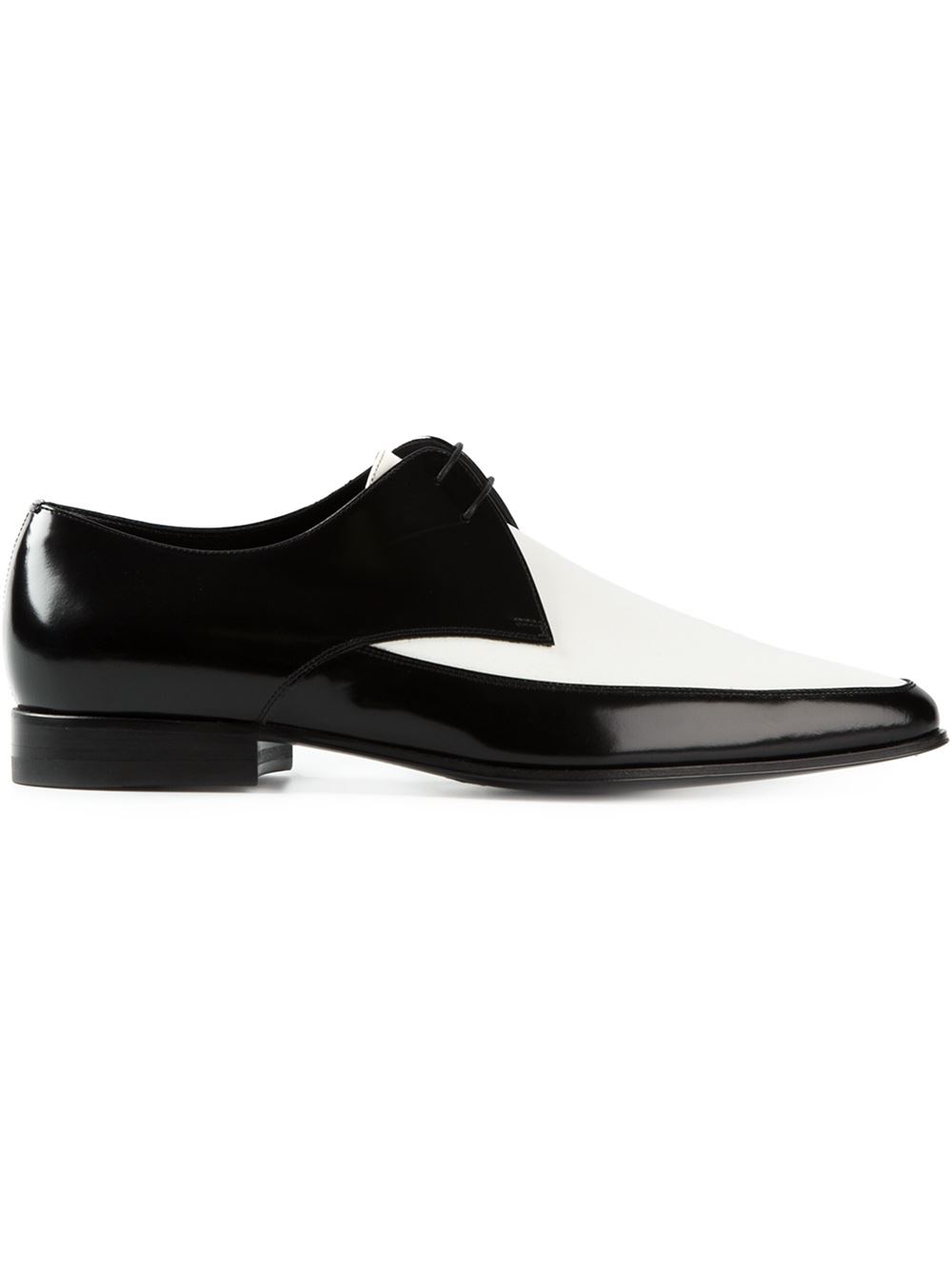 So so chic. These very elegant black and white colorblocking derbies by Saint Laurent are a must.