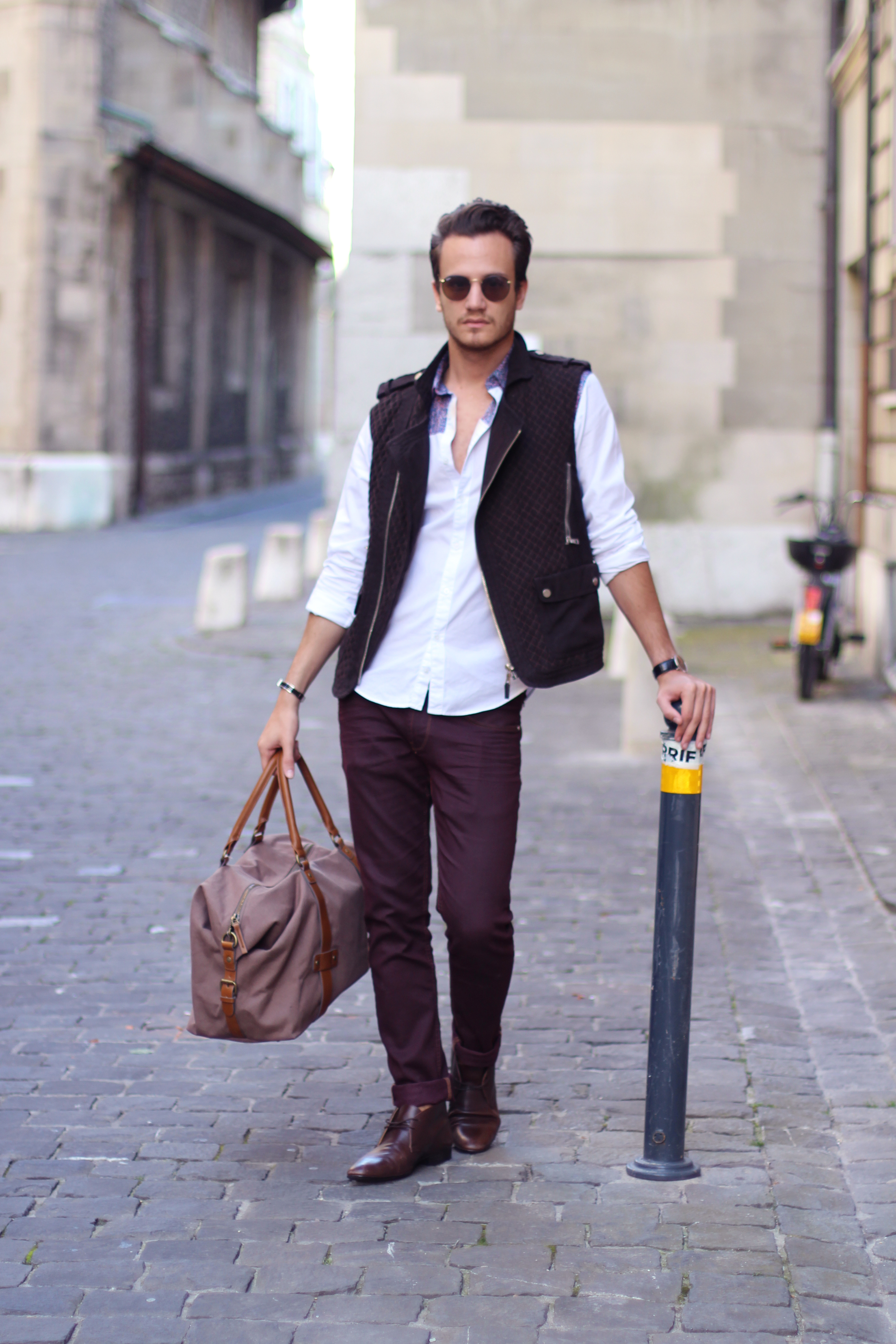 Traveling is always an adventure, even when it’s only for a few days. I find it very exciting to be able to leave your hometown just for a week end, wheter it’s to go the countryside, the mountain or to another city or country. One of the advantages is not having to pack much. Therefore all you need is a perfect week end bag, a key piece of today’s look.