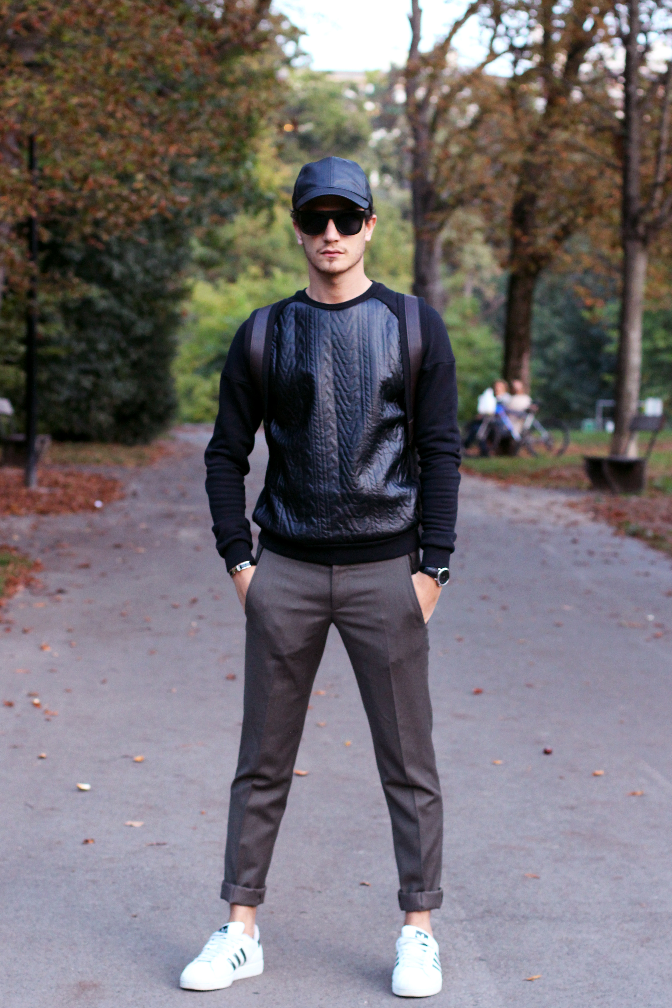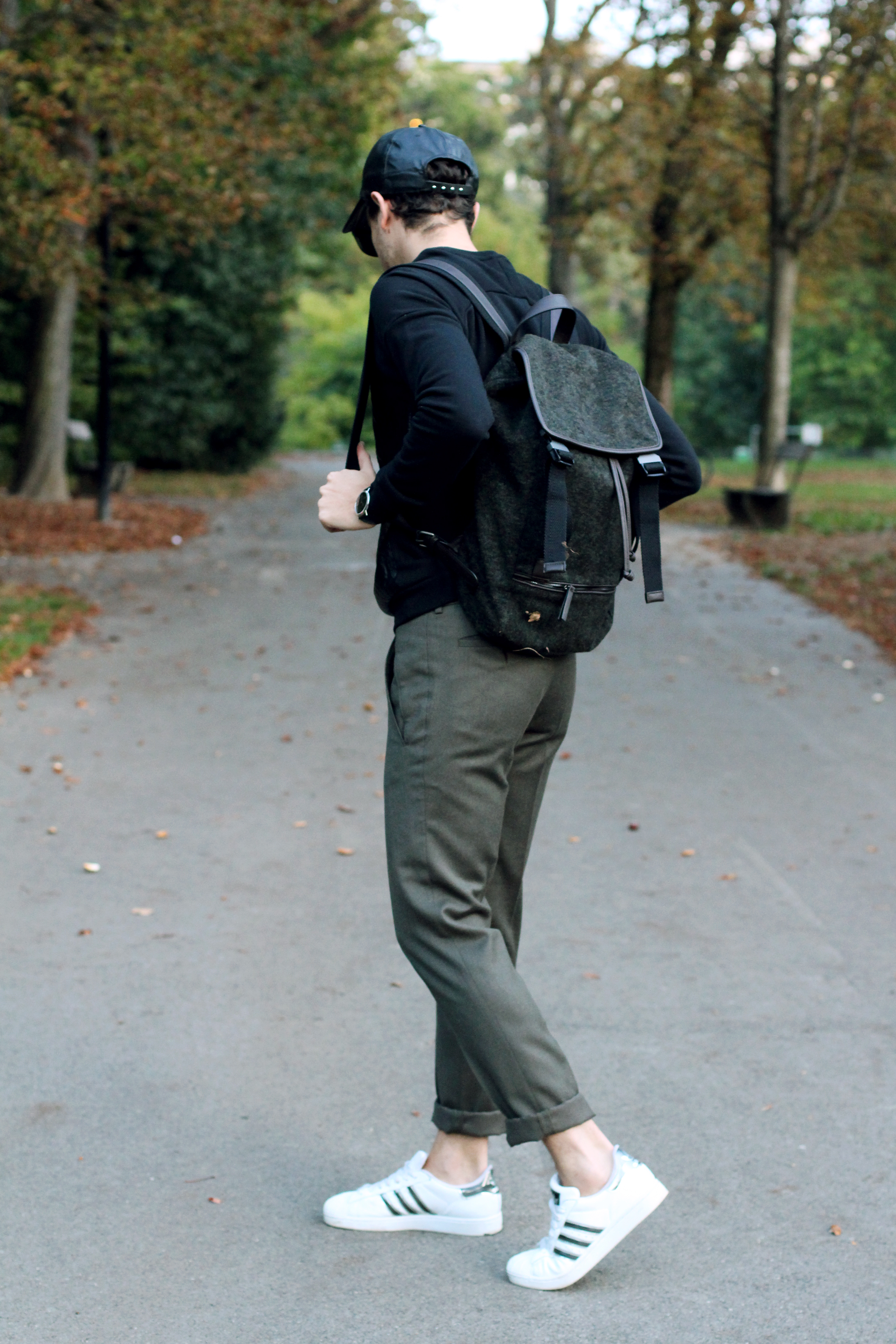 Finally, I wore the look with Adidas sneakers, a backpack, and a faux-leather cap both also from ZARA, giving out an out-of-school vibe.