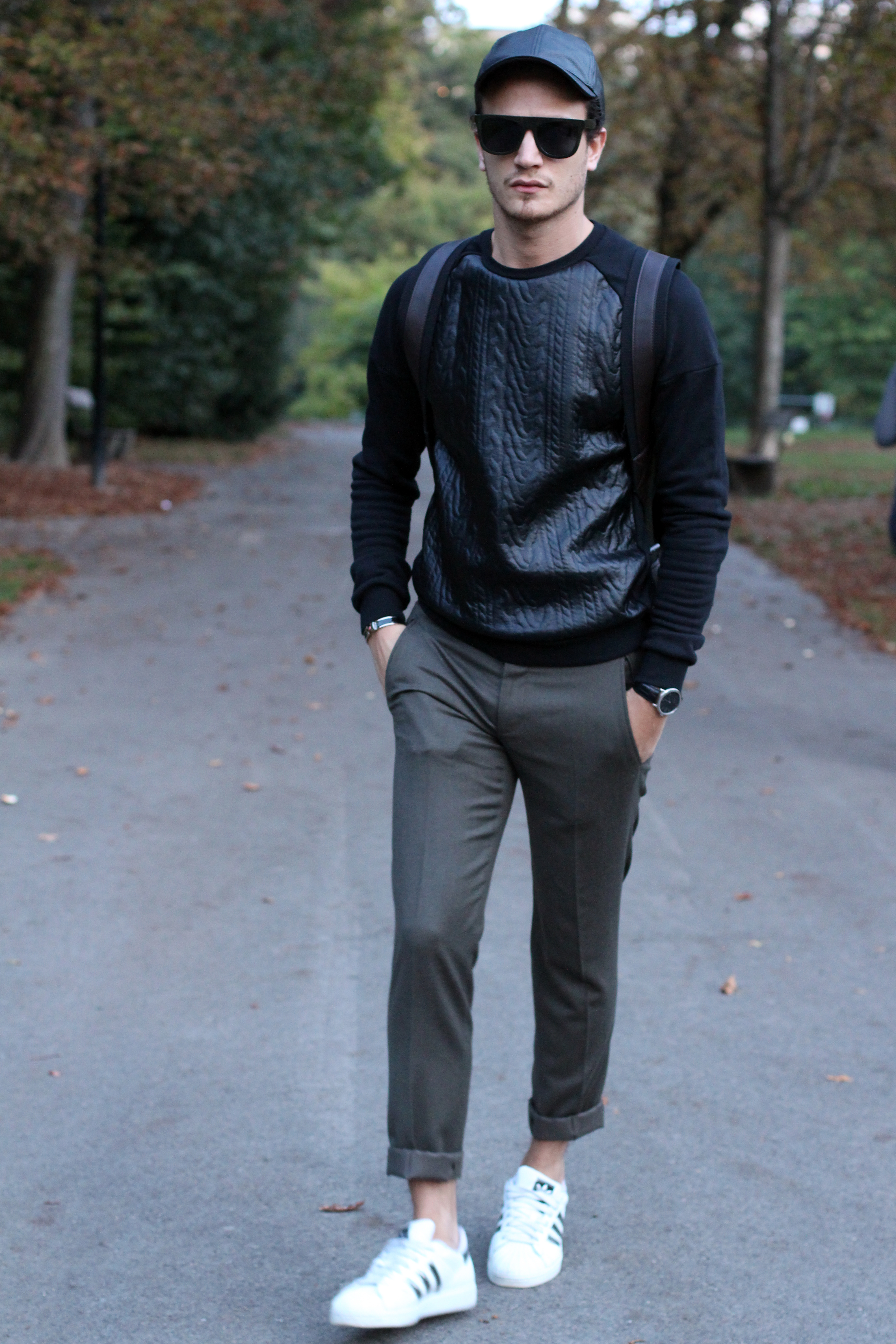 The CARDIFF model is very graphic, wich inspired me to wear this black faux leather ZARA sweatshirt. (which, by the way, looks VERY inspired by the Neil Barrett fall winter 13 sweater below… Hum…)
