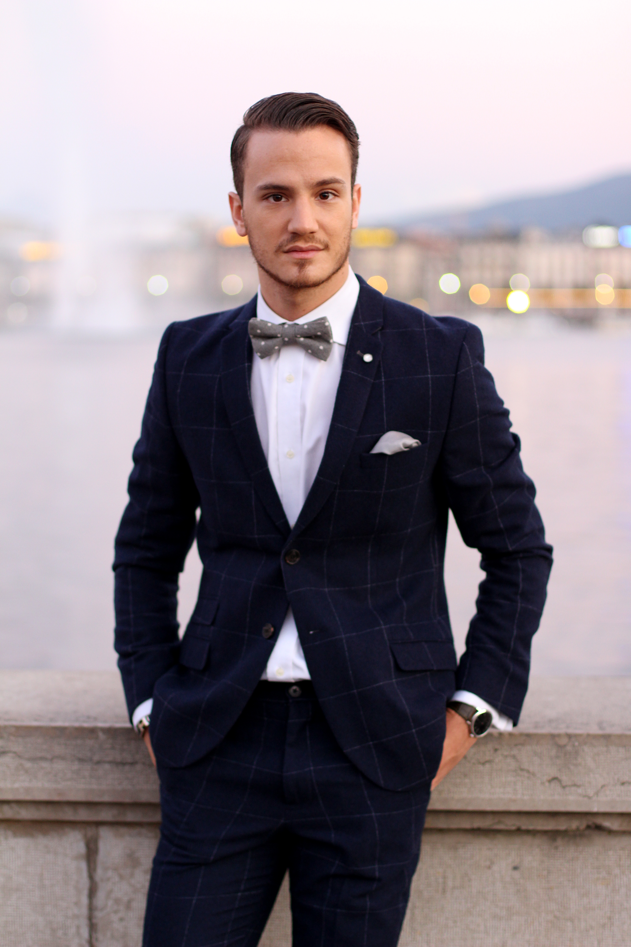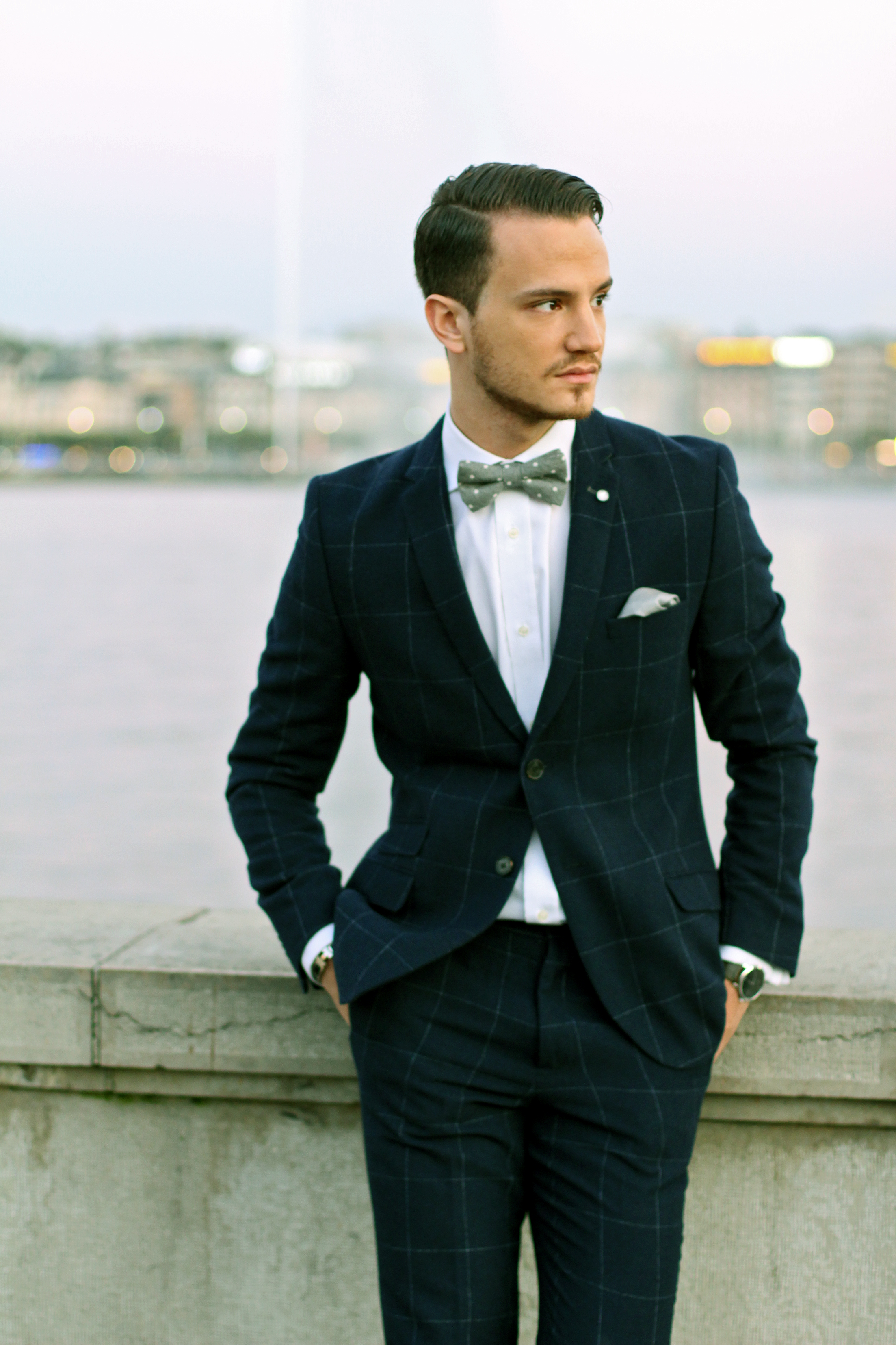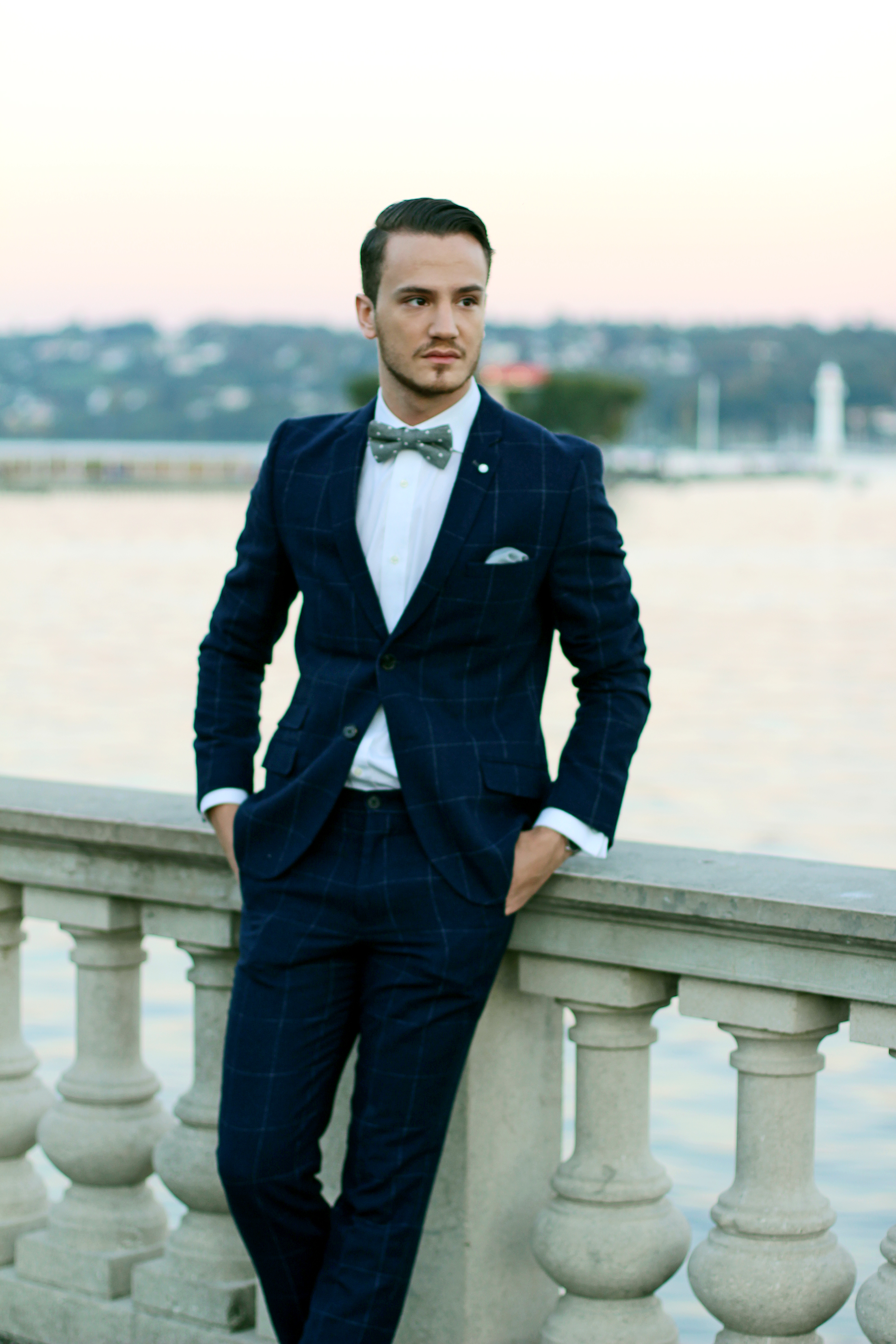 Polka dots on a bow tie and check print on a slim-fit suit. There’s nothing like dandy-ing up on a sunday afternoon to watch the sun come down on my city by the lake.