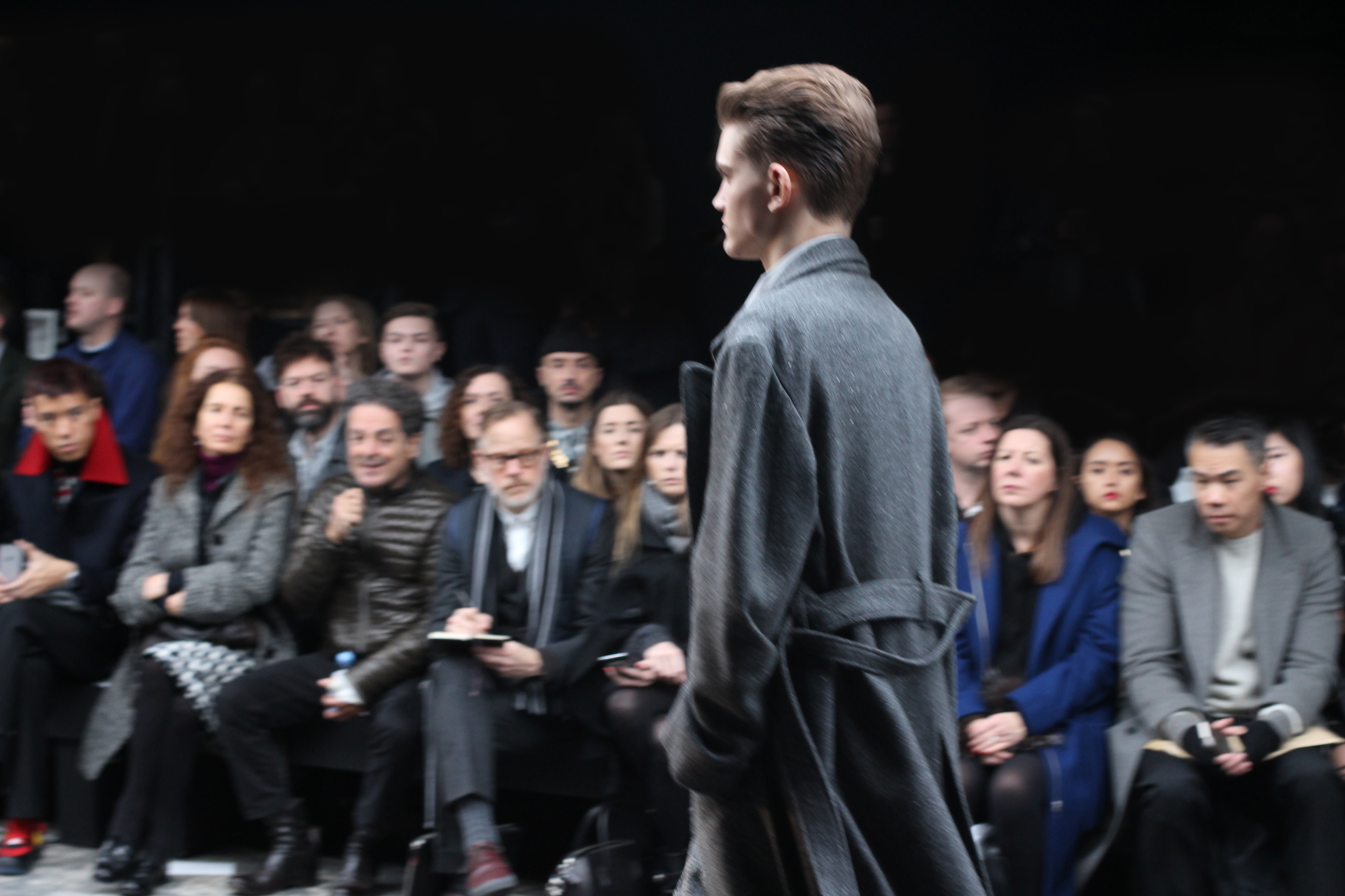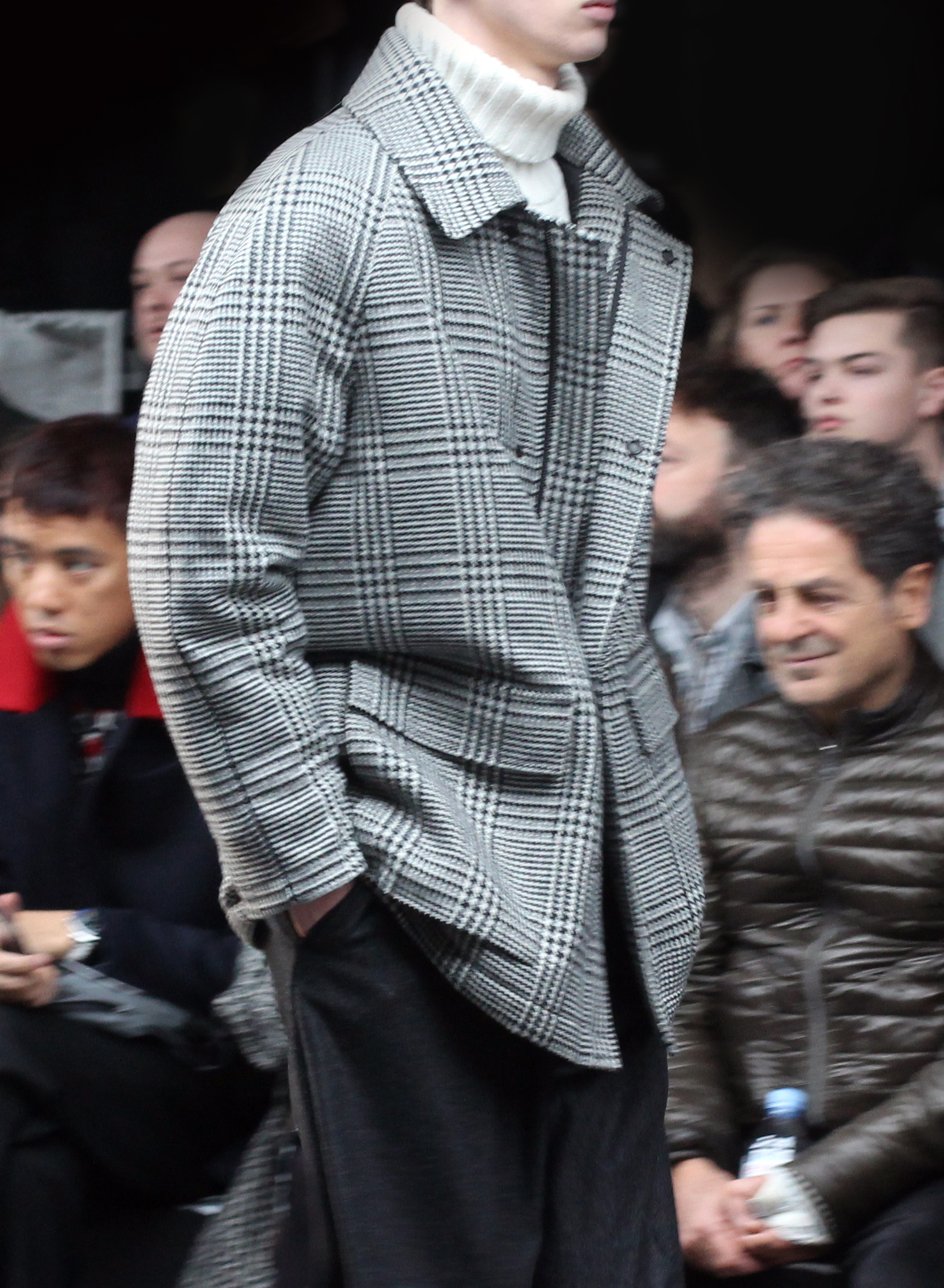 The colour palette had little diversity and could have been named “50 shades of grey”, but sophistication came from prints and patterns, such as check coats.