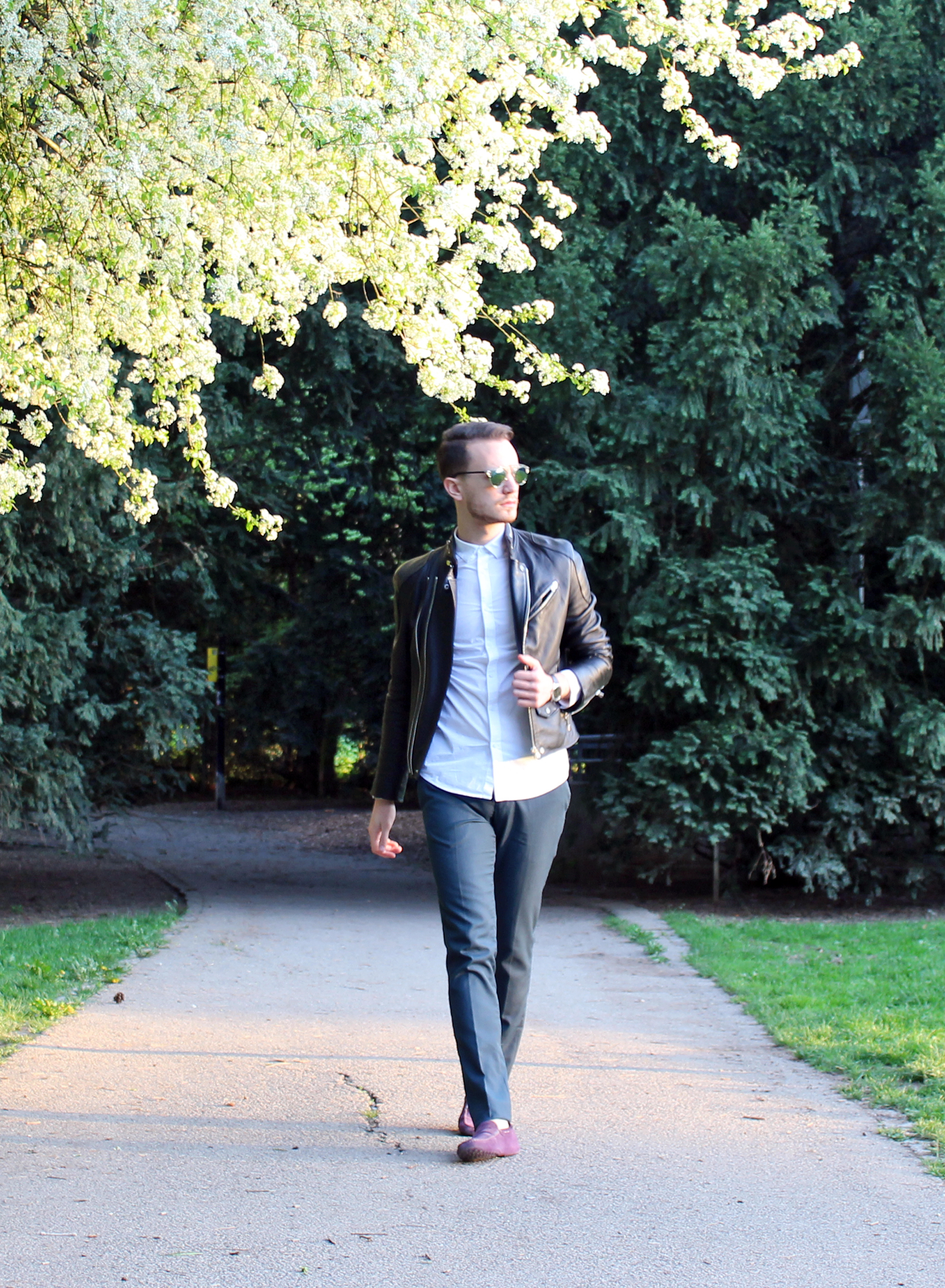 Spring is in full bloom and it is so nice to shoot in gardens which are full or blossoming trees and flowers. This explosion of color makes wanna add touches of life in my outifts, such as these purple Tod’s Loafers.