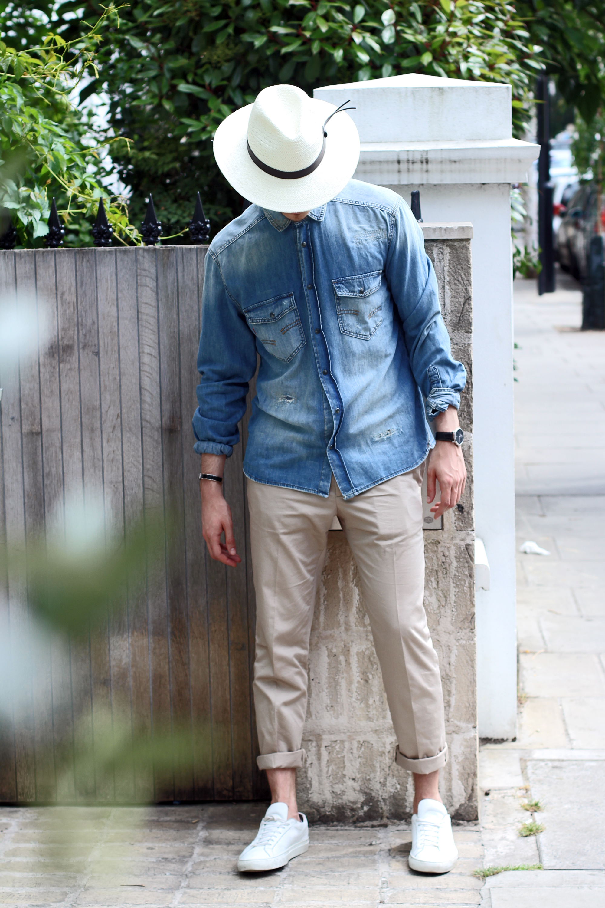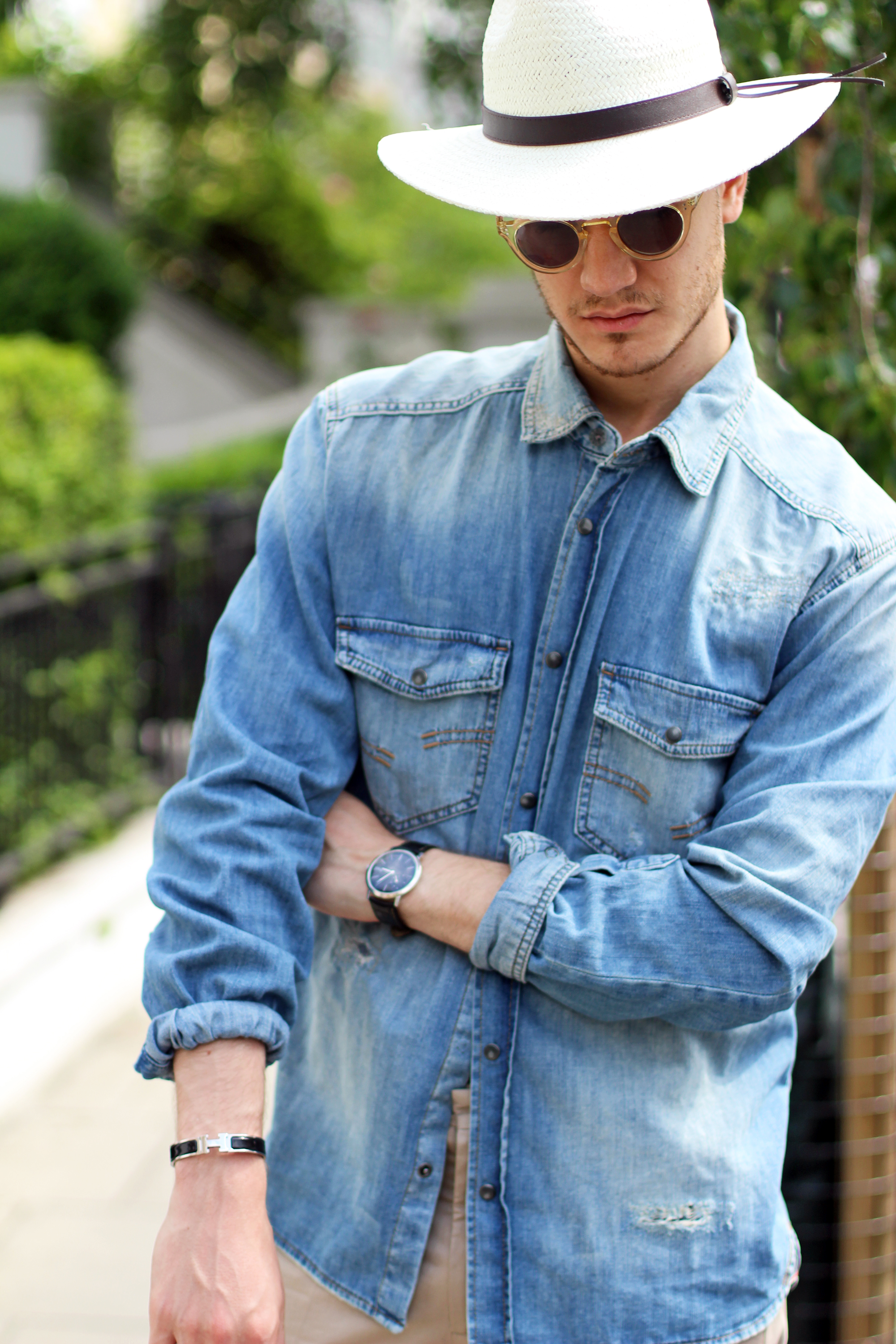 Never out of style, denim shirts are a men’s closet essential. I went for a very casual look, perfect to wander around the city on a sunny day. Relaxed but stylish, this Strellson shirt closes with pressure buttons. Its ripped details gives it an edgy touch.