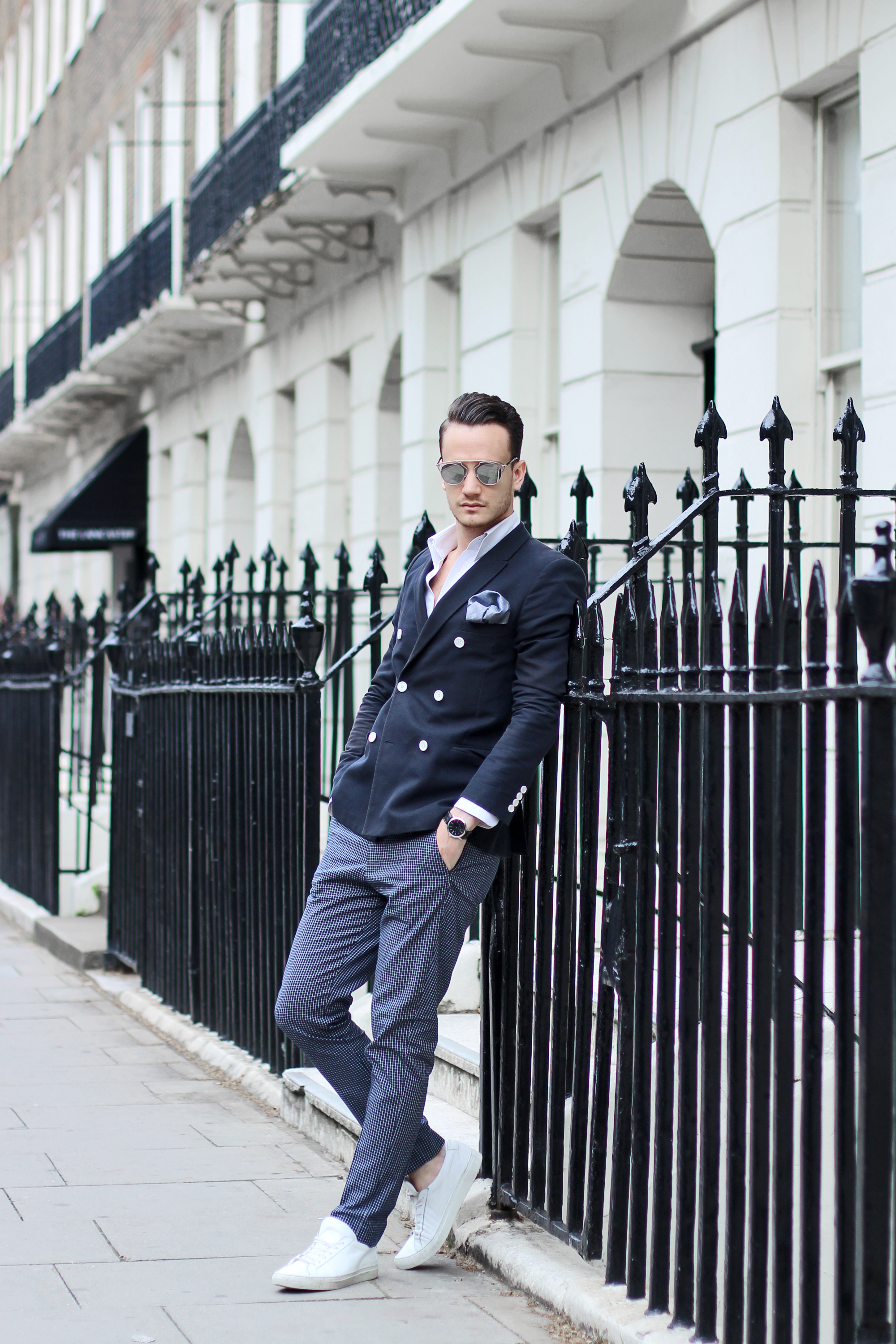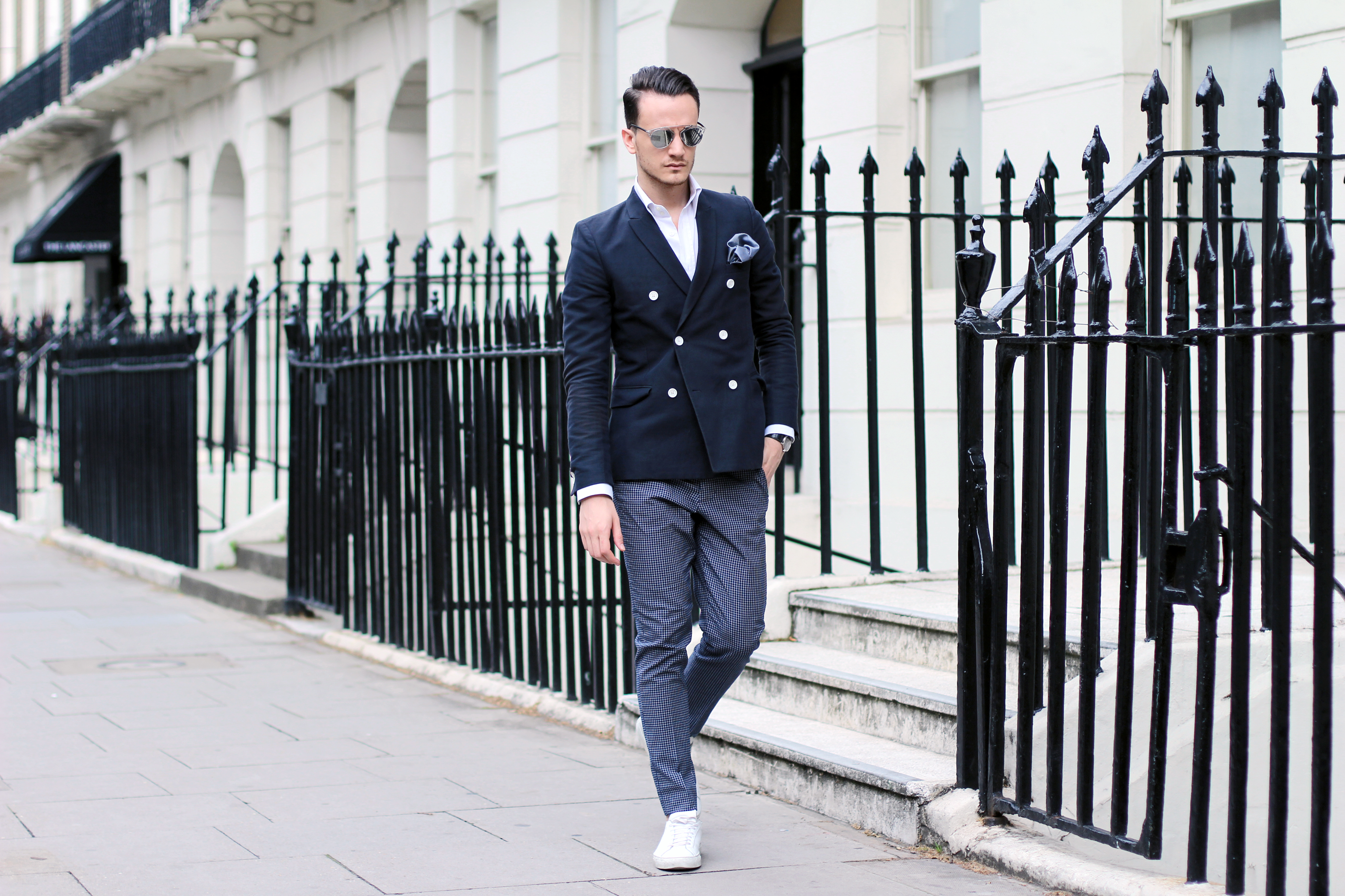 The british capital of fashion always inspire me to wear formal garments. However this time around I mixed this The Kooples double breasted blazer, white shirt and squared trousers with white sneakers. Casual-chicing at its best.