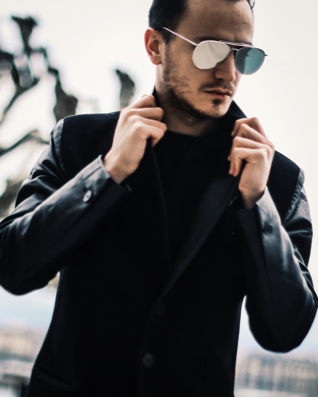 As done here with a (big) pair or mirrored Aviator metallic sunglasses by the sophisticated Thom Browne.